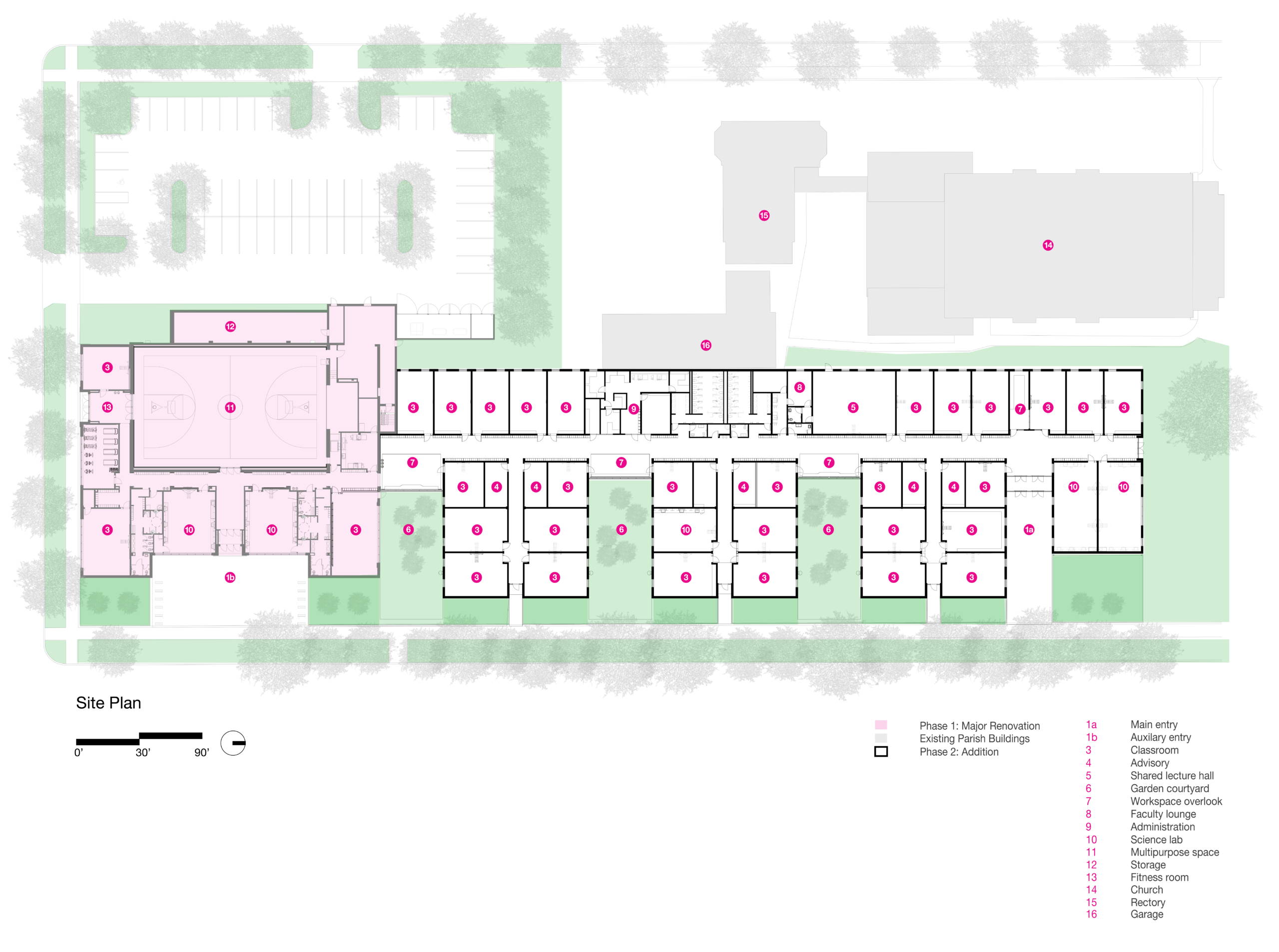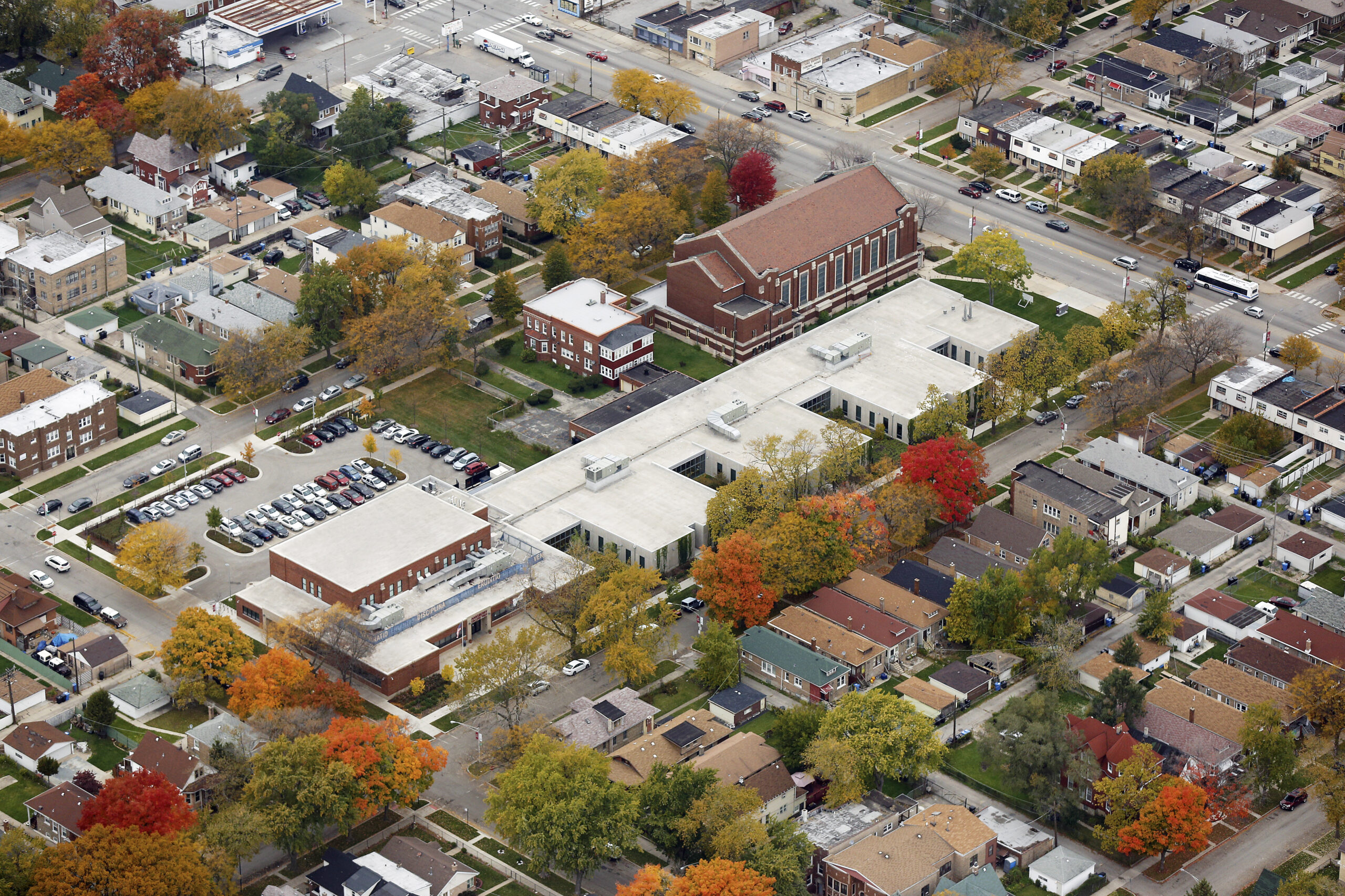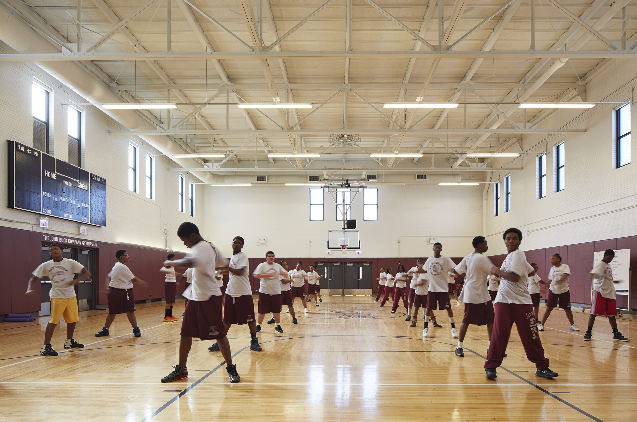 With grounds measuring a full city block, the parish of St Kilian and the Archdiocese of Chicago were faced with the escalating costs of maintaining a former parochial school that was decaying at the hands of a series of negligent tenants after the school closed in 1993. With a long term land lease and a philanthropic capital investment by Noble, the former school gymnasium building became the cornerstone of a new 1,100 student high-school.