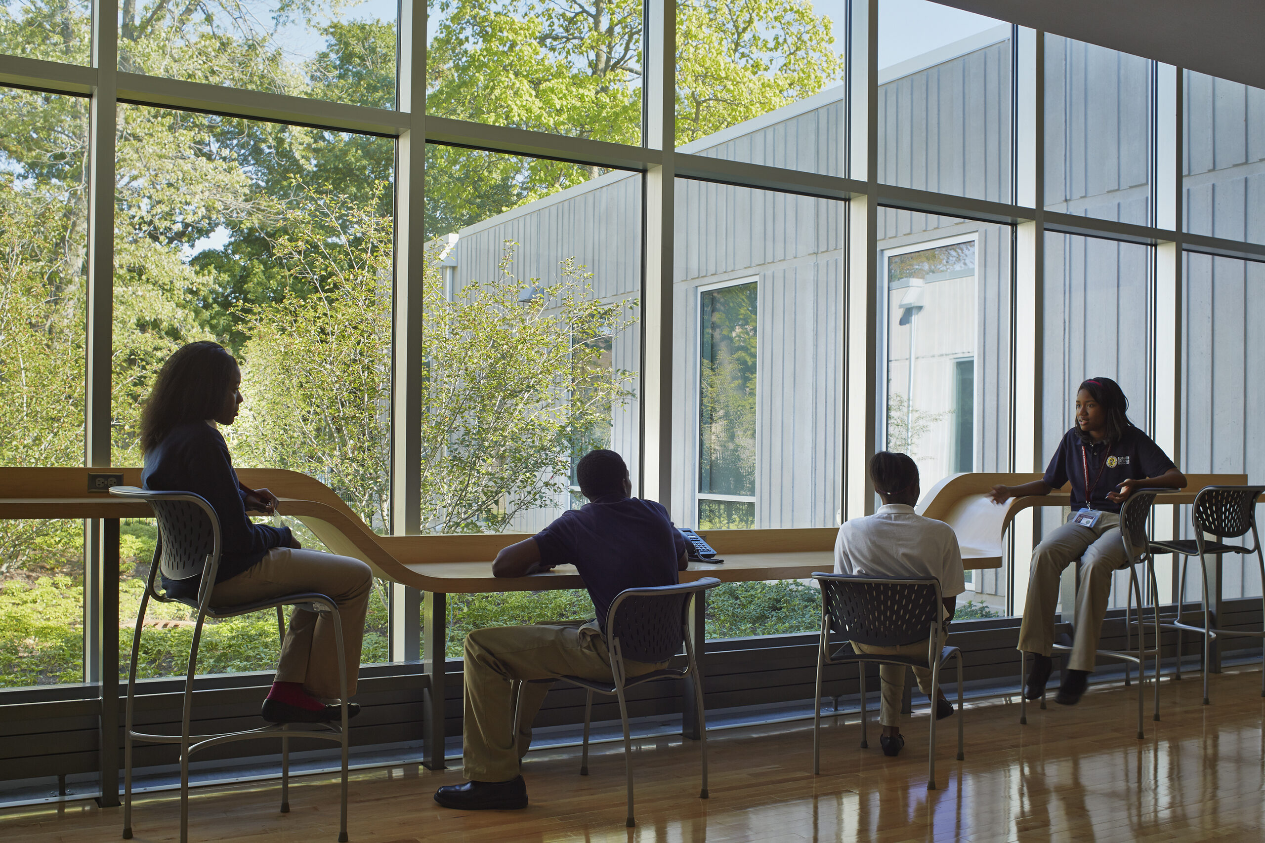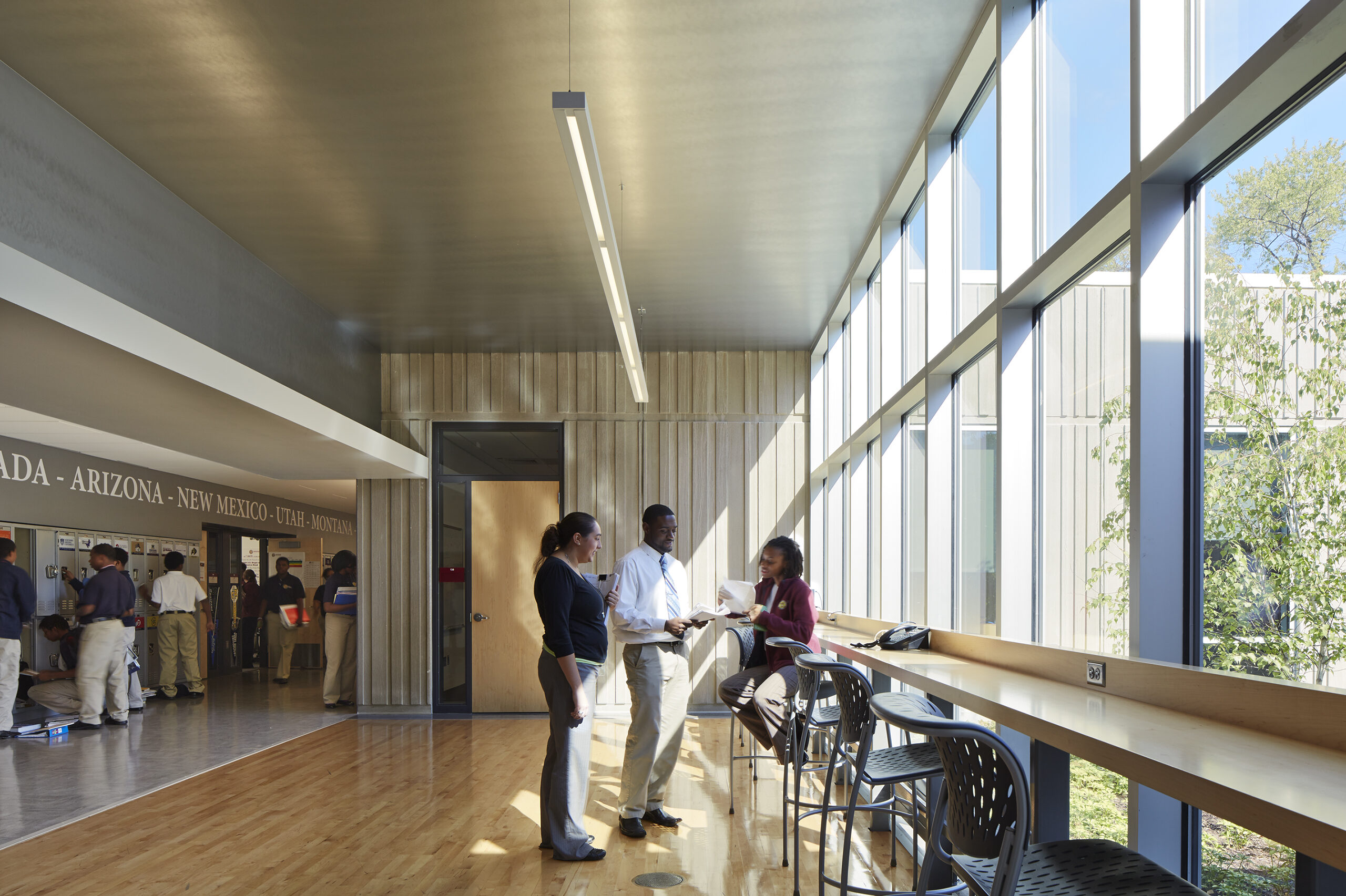 Many spaces were programmed for more than a single purpose to support diverse learning opportunities. Most important, enough spaces are provided so that students can meet with their four-year advisor twice a day, concurrently in groups no larger than 18.