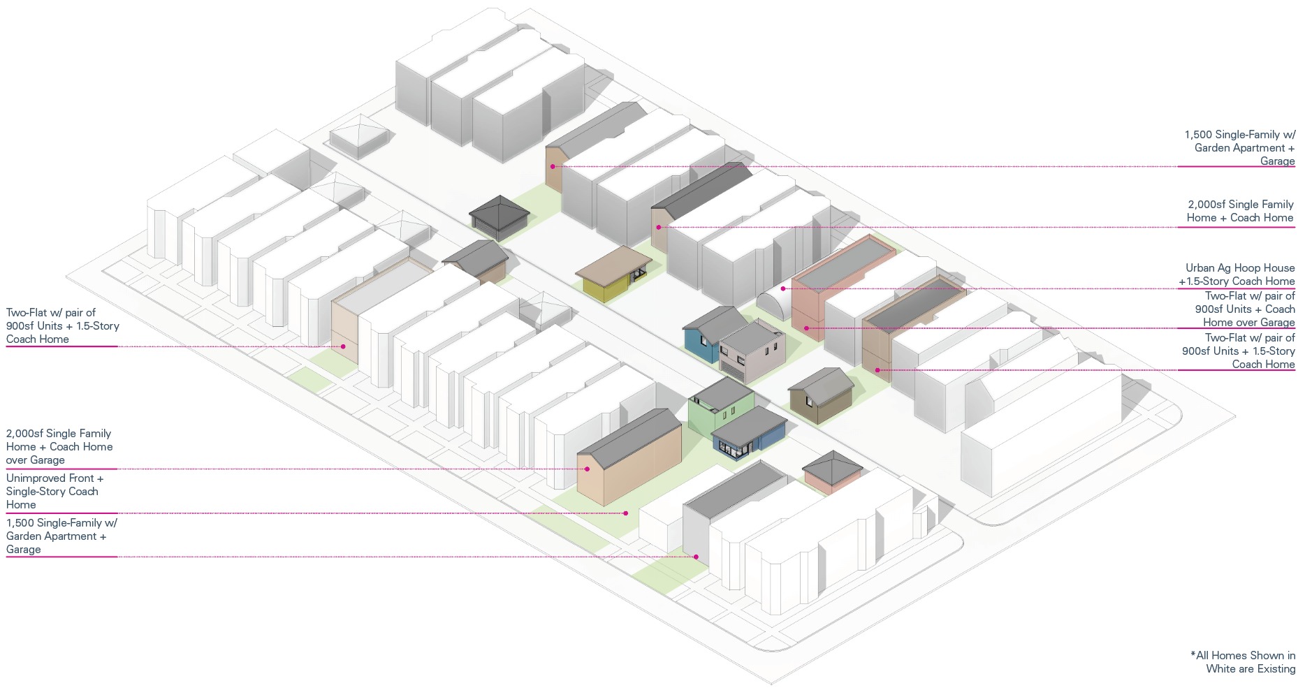 Chicago’s reborn neighborhoods can grow from their alleys outward, built around a core of affordable housing built for Chicago’s workforce. Unlike their predecessors, these coach houses will be accessible, single-story dwellings on-grade adjacent to green space. It could be the next riff on “Urbs en Horto.”