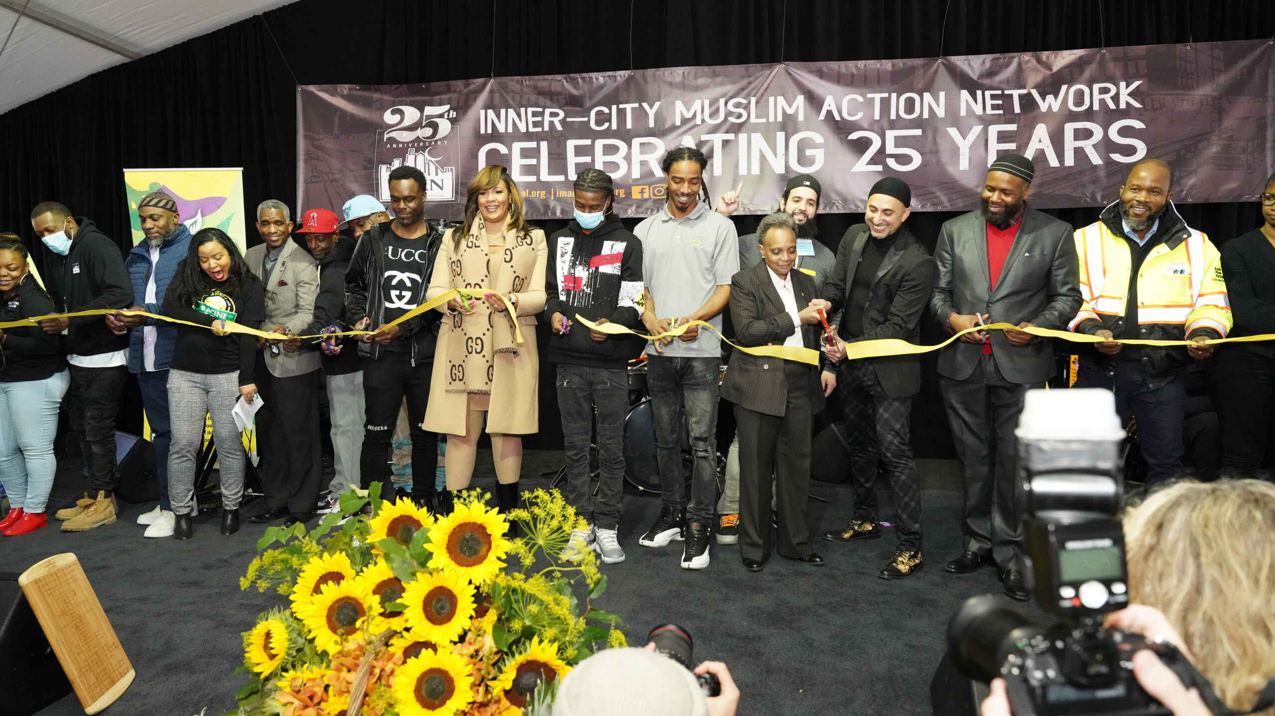 The Go Green Community Fresh Market officially opened today with a ceremony on-site. Located at 63rd Street and Racine Avenue in Englewood, this is the first phase of a masterplan driven by the Inner-City Muslim Action Network (IMAN), in collaboration with the Residents Association of Greater Englewood (RAGE), Teamwork Englewood, and E.G. Woode. As one of six finalists in the 2020 Chicago Prize, the Fresh Market has been recognized as a community resource that will revitalize a neighborhood severely challenged by long-term, systemic disinvestment.