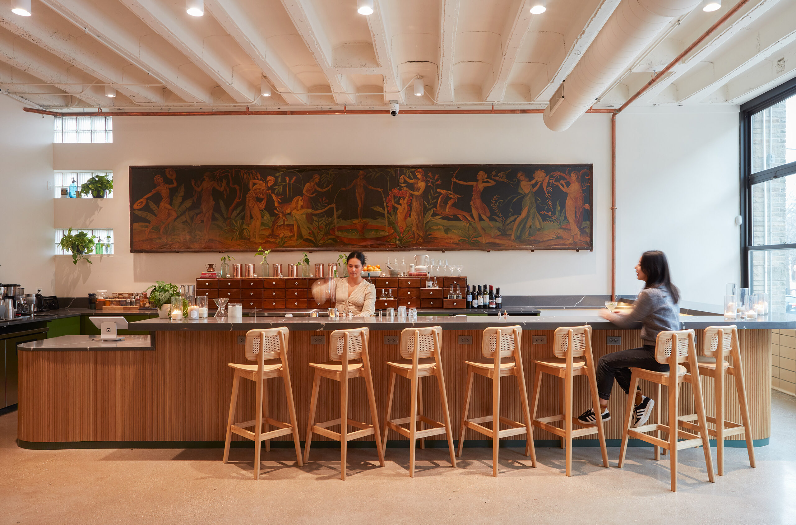 This restored 1947 midcentury-modern school has been reimagined into a vibrant social space for various activities. Balancing historic charm with contemporary design, the venue now offers pickleball, events, antique galleries, and dining. Check out all of the project photos here: wkarch.com/catalog/the-school-house