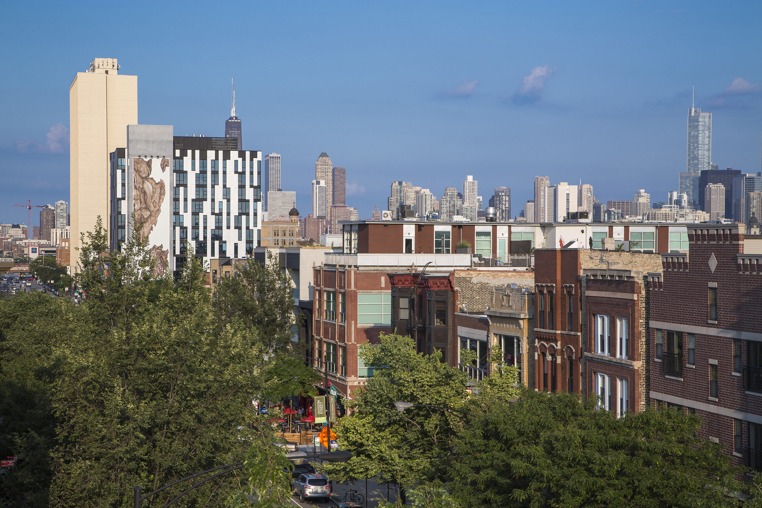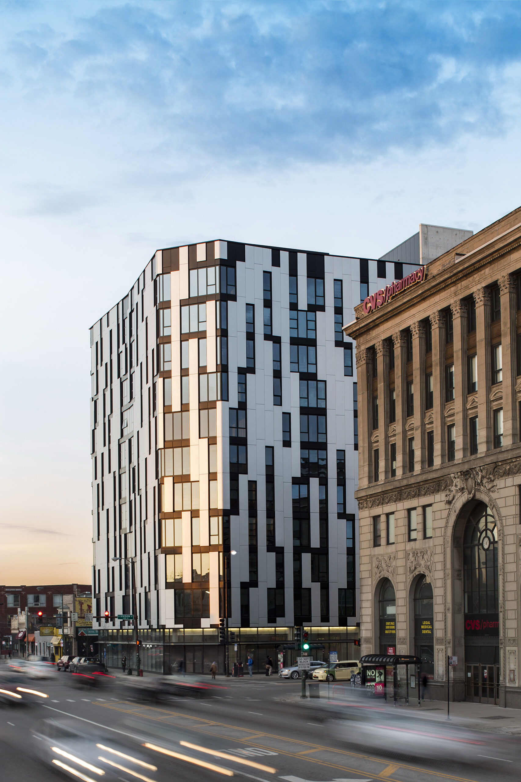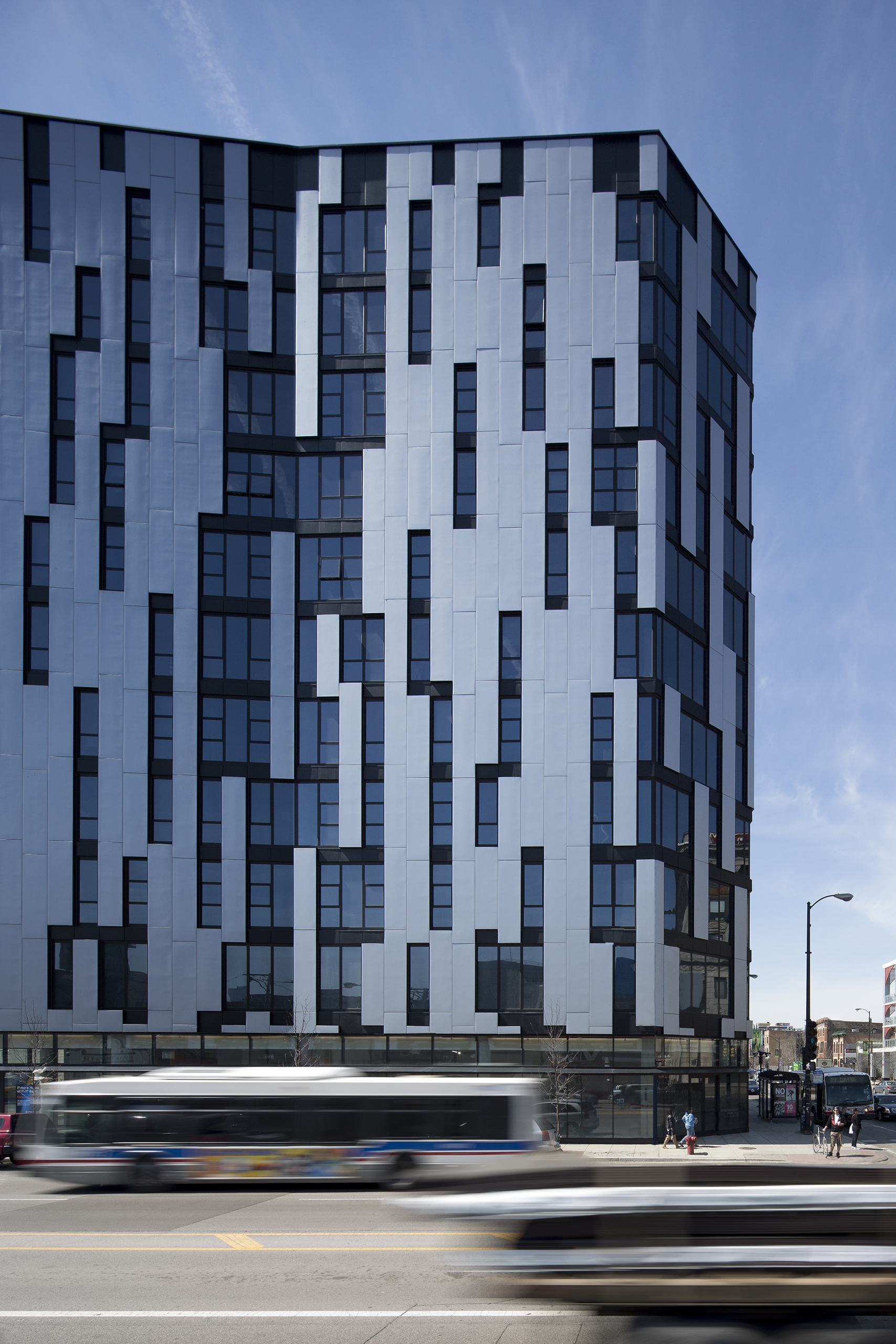 As part of the commitment of the arts to this neighborhood, the project incorporates a 92’ tall art installation on the west facade, curated by the design team to initiate a dialogue between the architecture, the art and its community. Together, the building and the installation further the development of a vibrant cultural corridor along Division and Milwaukee.