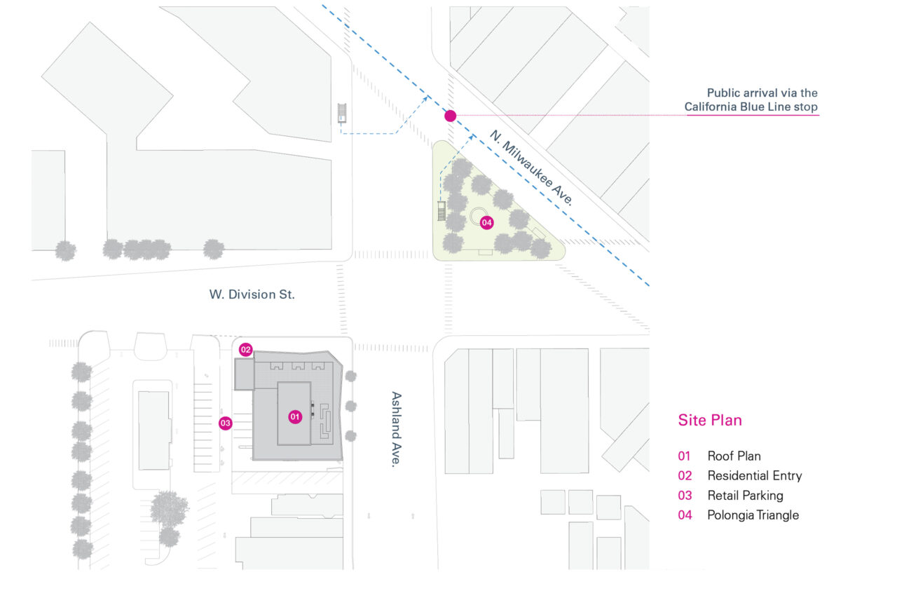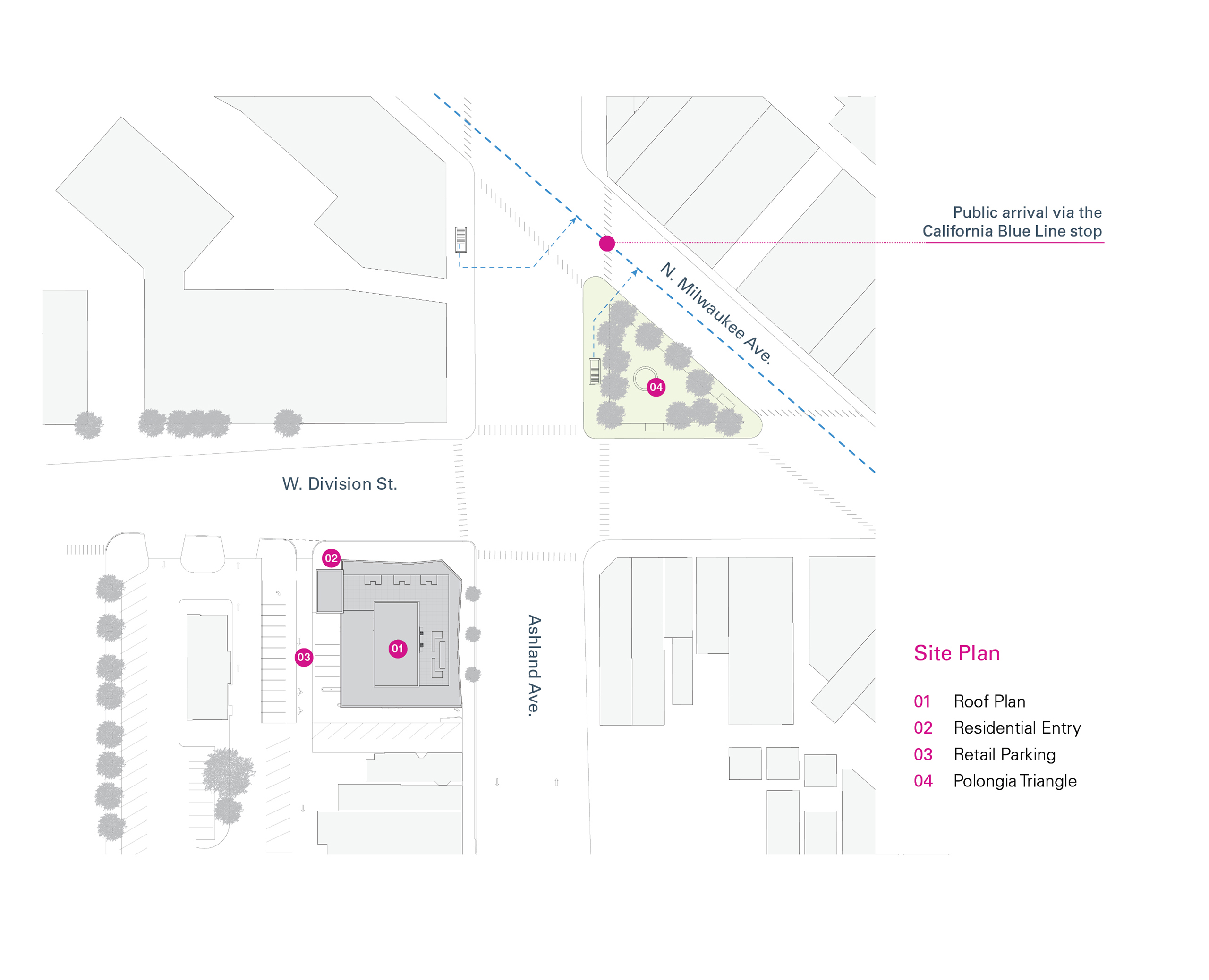 Situated 300 feet from the Blue Line train entrance and Polonia triangle, 1611 West Division—Chicago’s First Transit Oriented Development (TOD)—is dedicated to reducing traffic congestion and air pollution in its outreach to mass transit users, bicyclists and pedestrians.