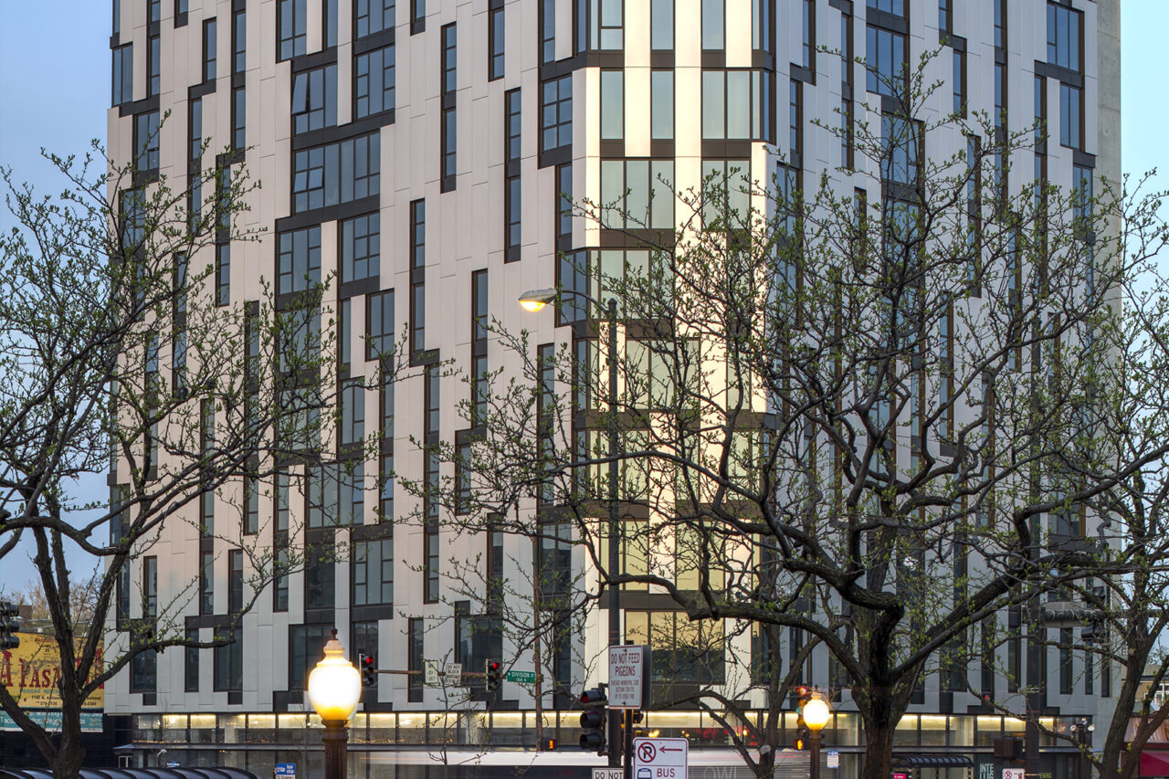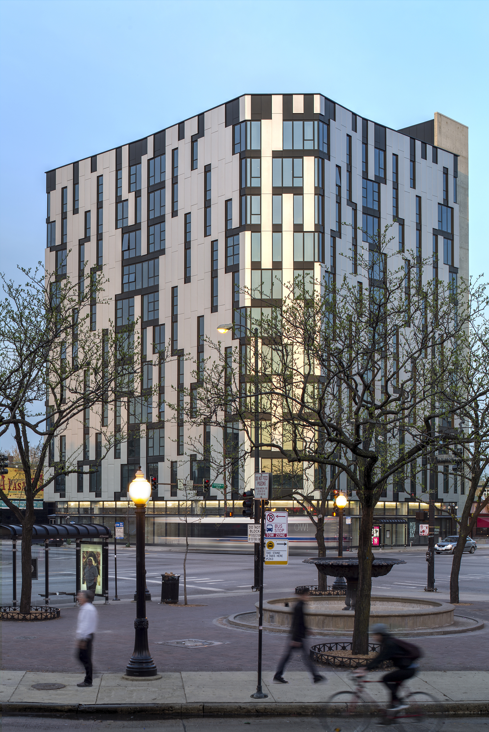 The 125,000sf, 11-story building includes 99 mixed-income apartments, second-floor offices, ground-floor retail and zero parking for building residents.