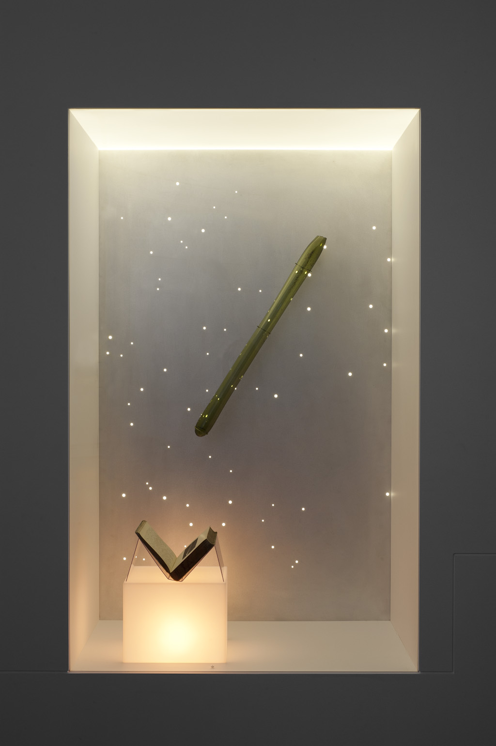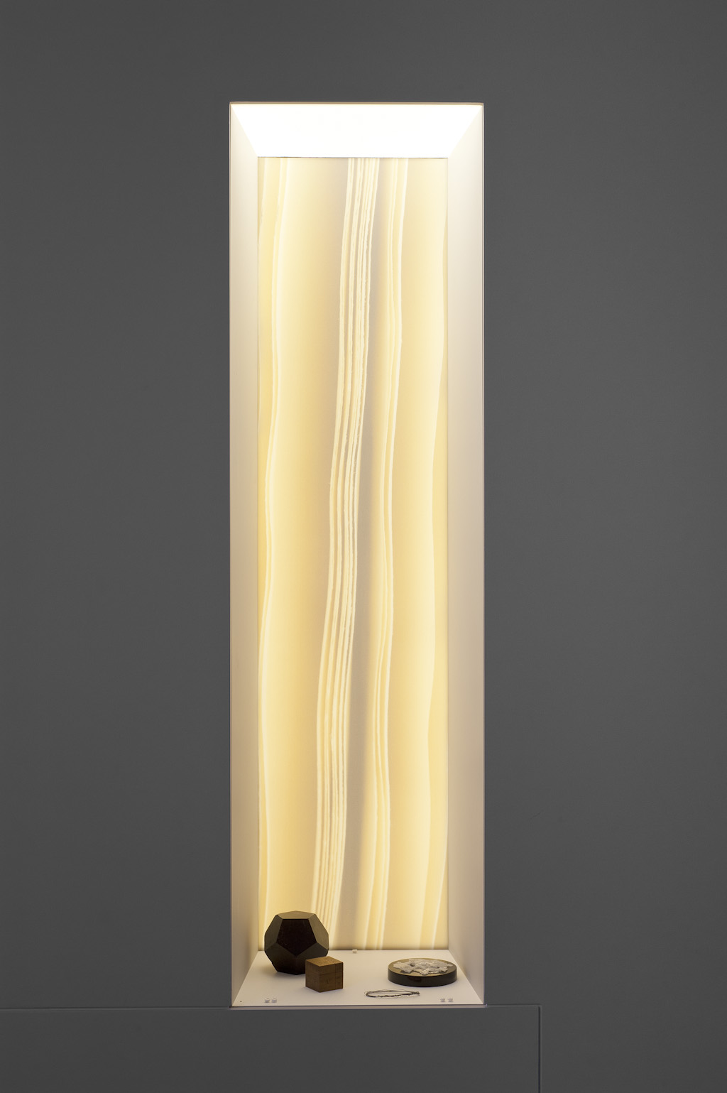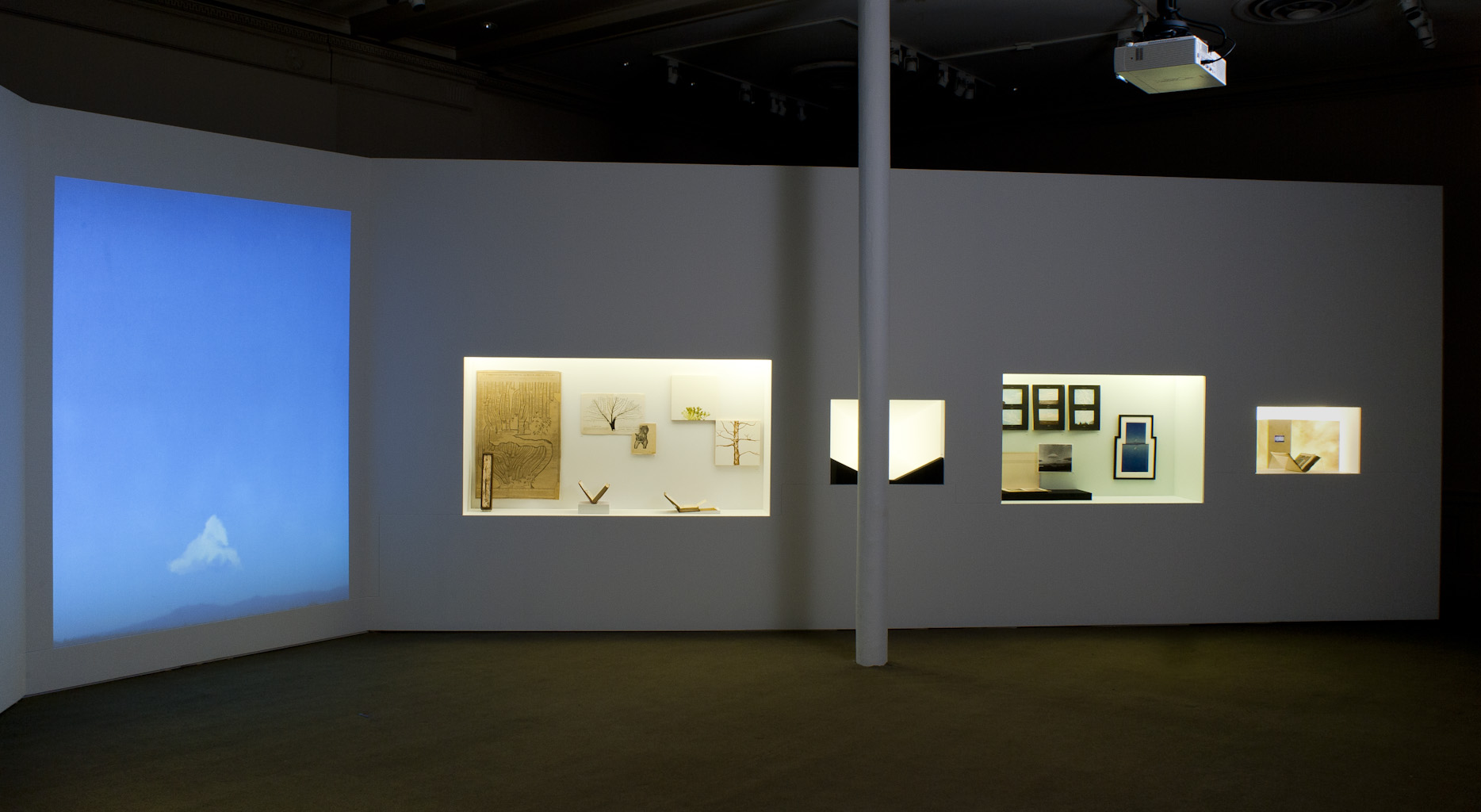 WKA collaborated with the artist, Antonia Contro, on the design and construction of the installation of her show Tempus Fugit (Time Flies) at the American Philosophical Society, founded by Benjamin Franklin. Ms. Contro selected pieces of the Society’s collection of books and artifacts pairing them with personal interactive responses. The APS’s primary, highly articulated, gallery was painted a flat grey and lit as minimally as code allowed. The analogy of an opened book was used, with a 10 foot high folded plane floating free from the walls/ceilings of the space. A discreet timeline was inscribed into the painted MDF skin via CNC routing, onto/above a series of recessed illuminated cases were placed. A projected video loop anchors the exhibition.