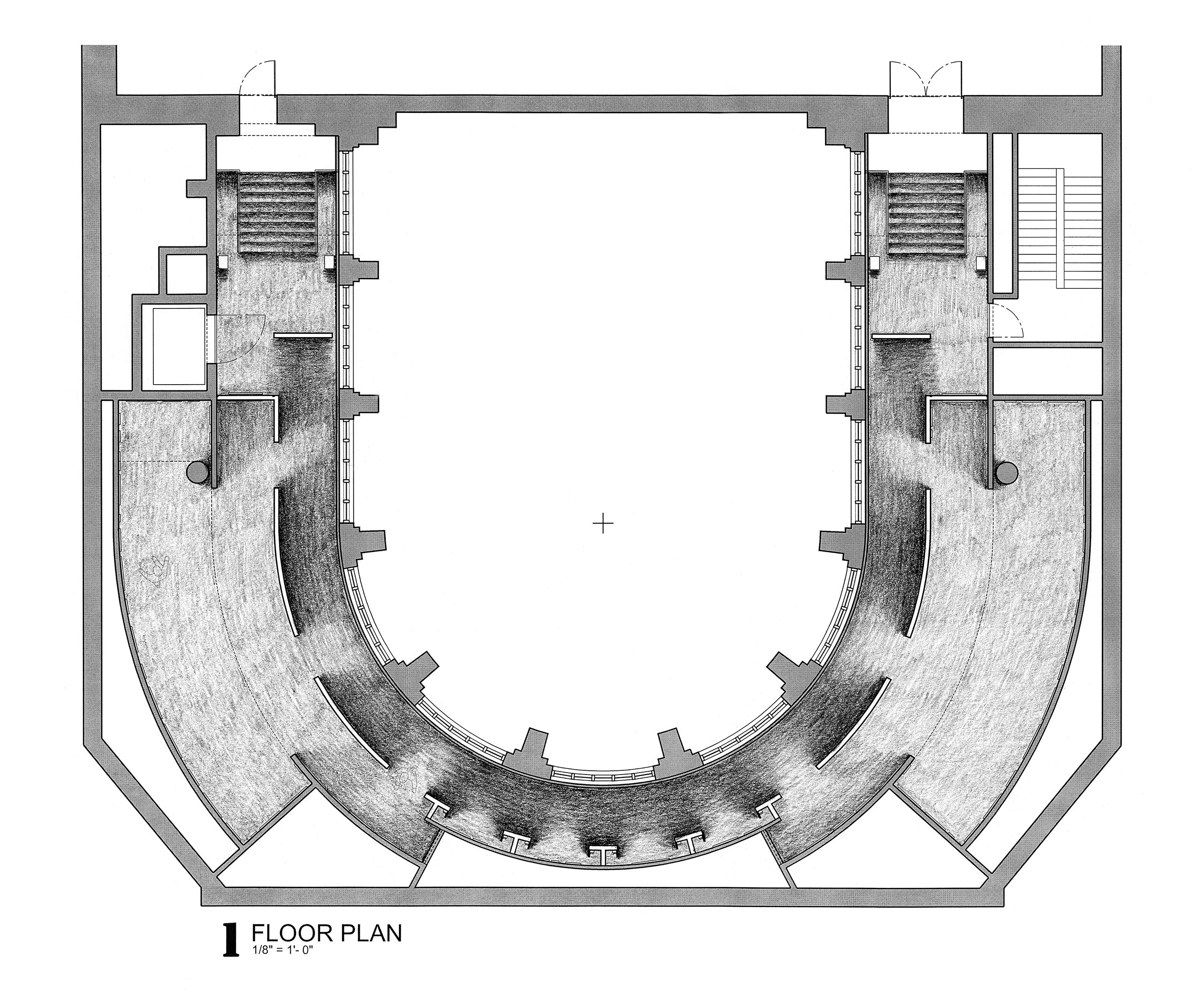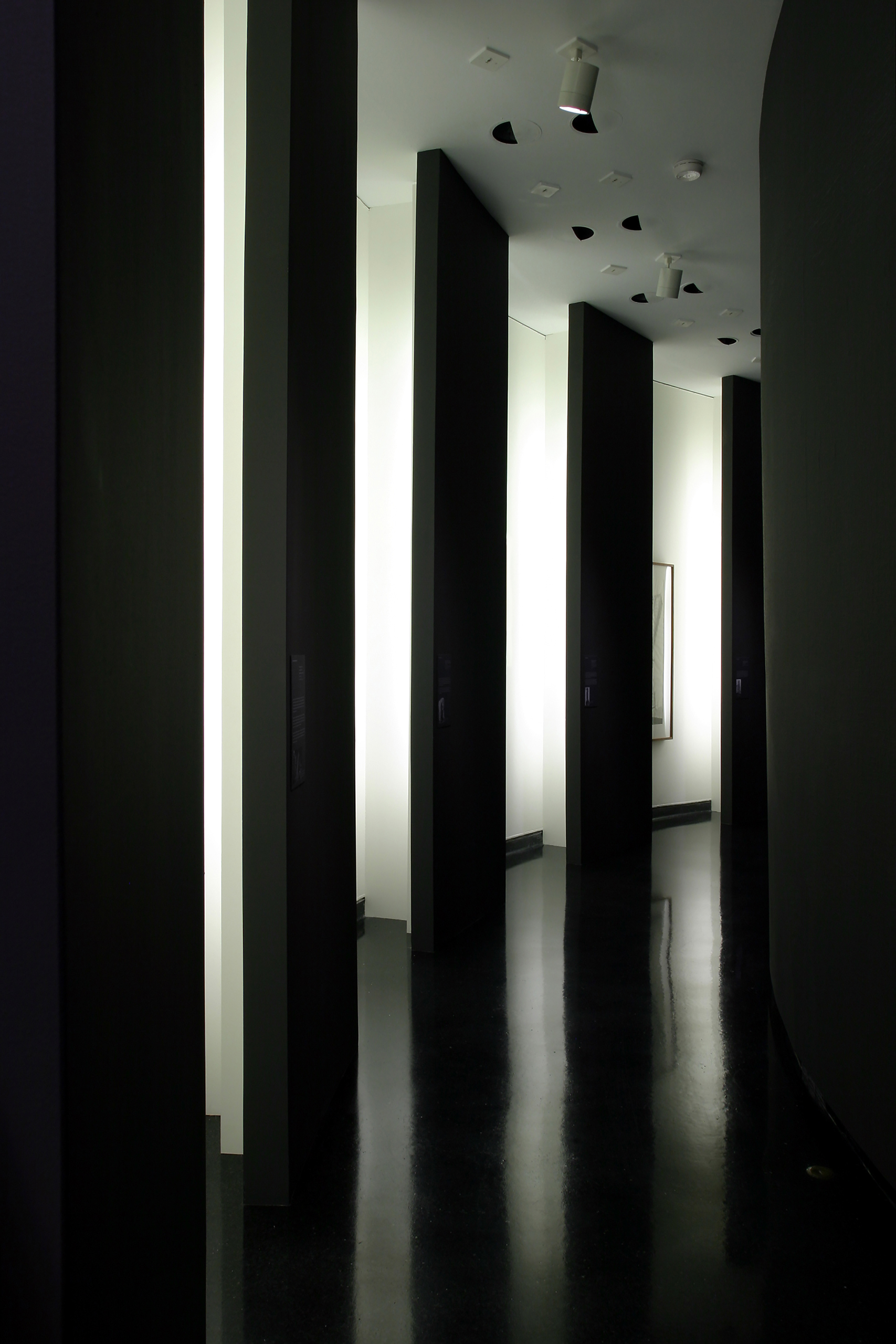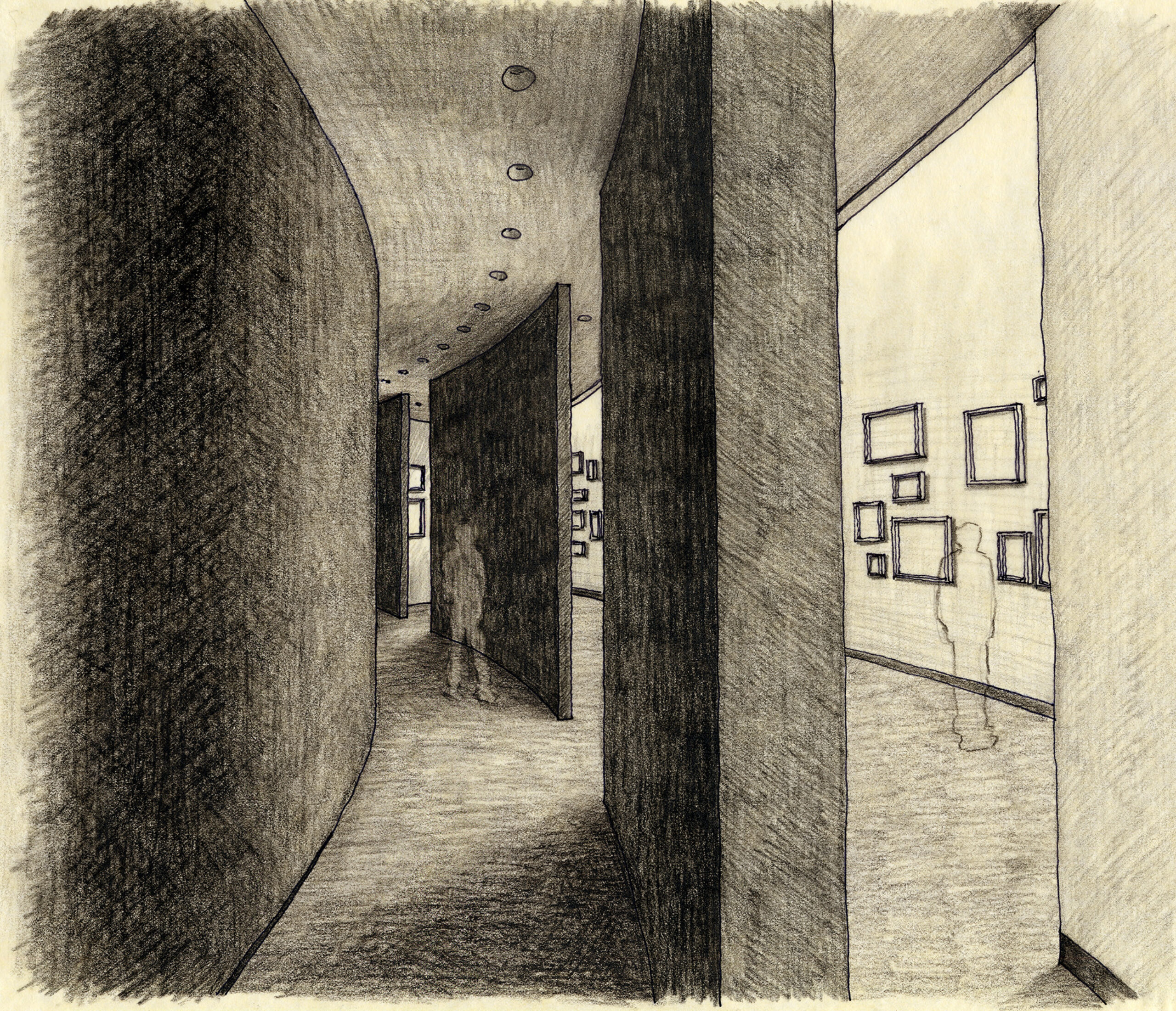 The long, narrow, curved gallery space was sliced into two areas – a dark continuous walkway contrasted with inner brightly lit gallery spaces. The visitor will explore the space from the compressed and darkened entrance to the galleries as if to find the hidden treasures of lost Chicago.