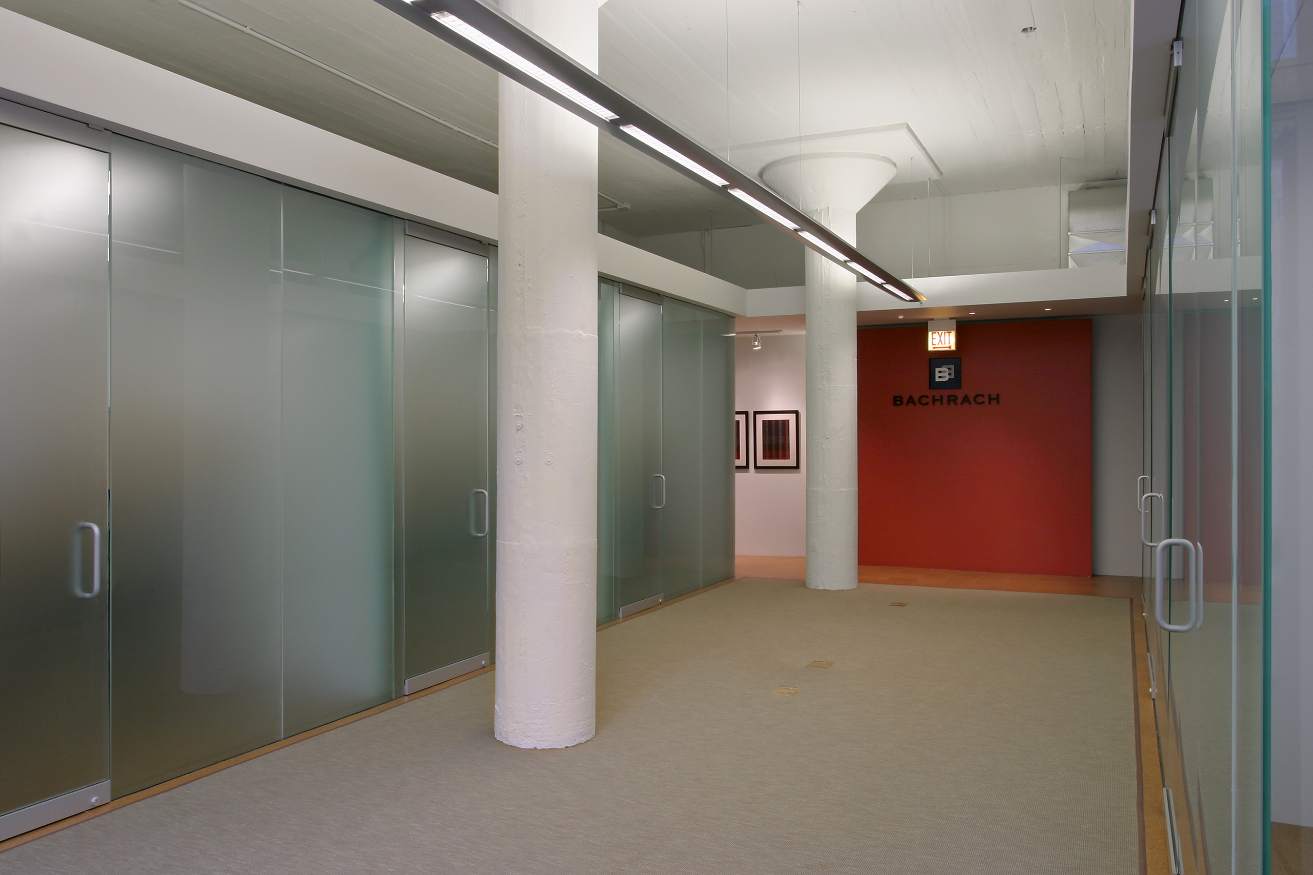 This 2000 sf office annex for a prominent local men’s clothing store, Bachrach, is located in a concrete loft building in Chicago’s Gold Coast neighborhood. This annex increases space to an adjacent space completed by WKA in 2001.