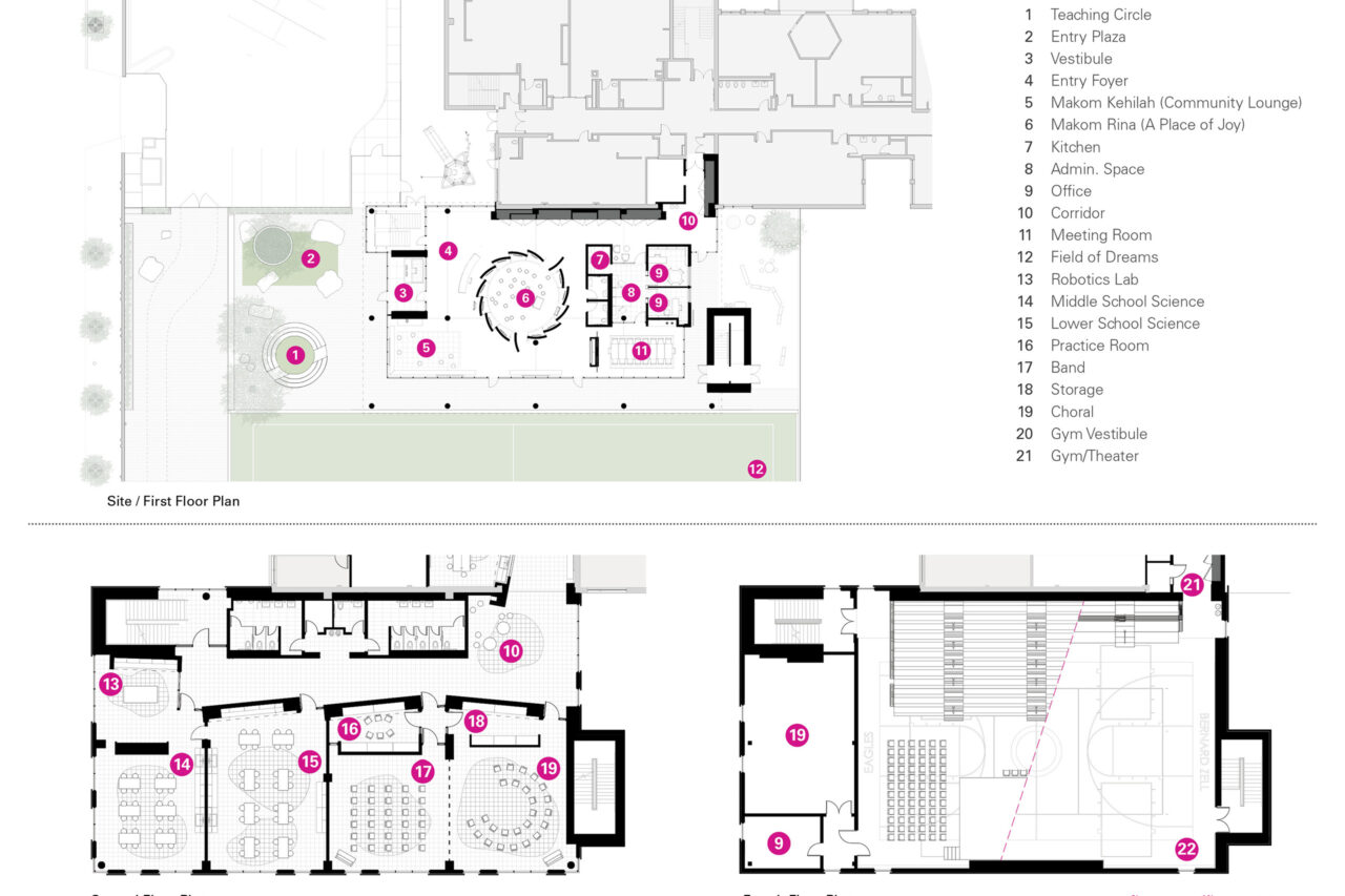 The project establishes a new head and heart for an existing Jewish Day School that for decades lacked a dedicated entrance, community space, and identity of its own.