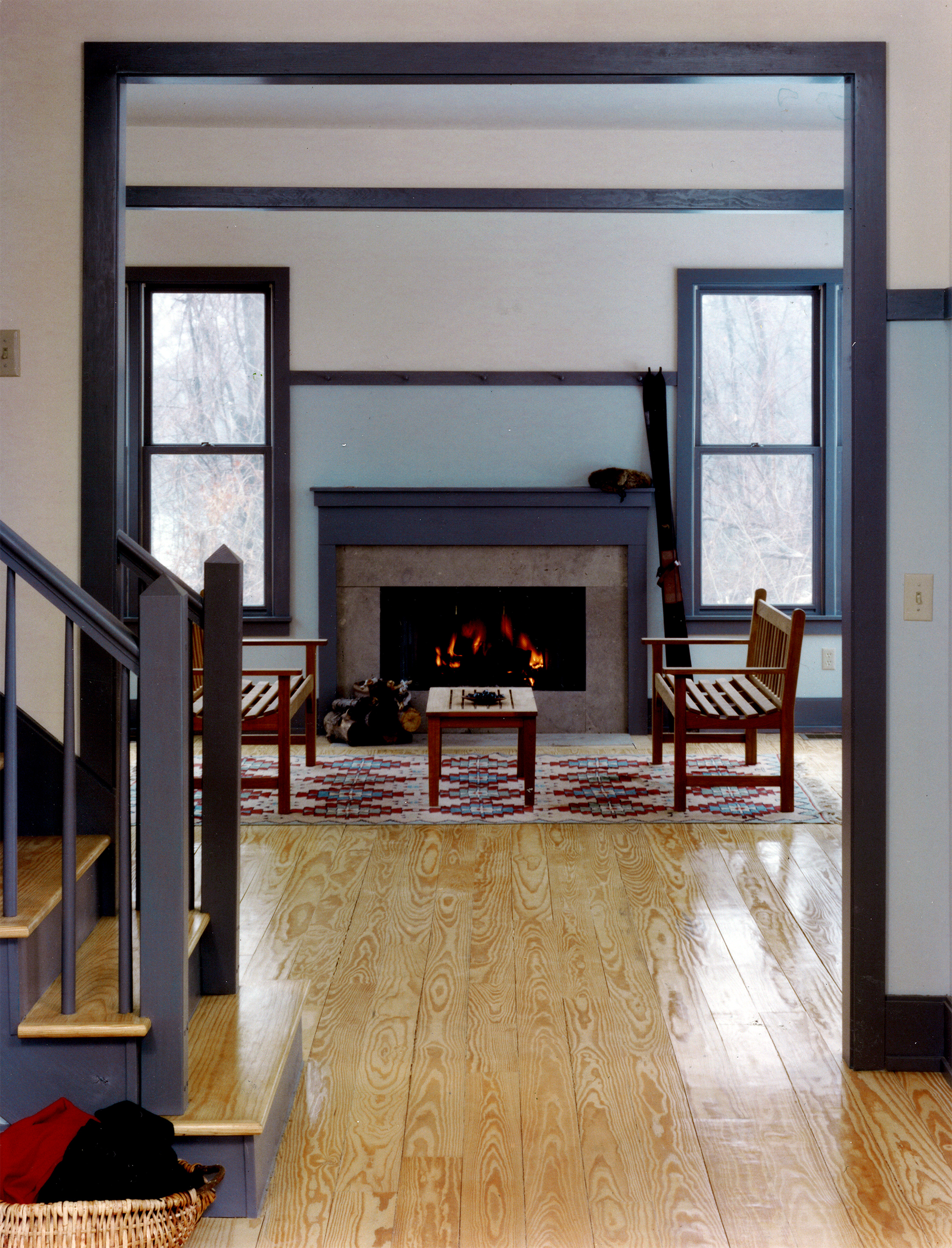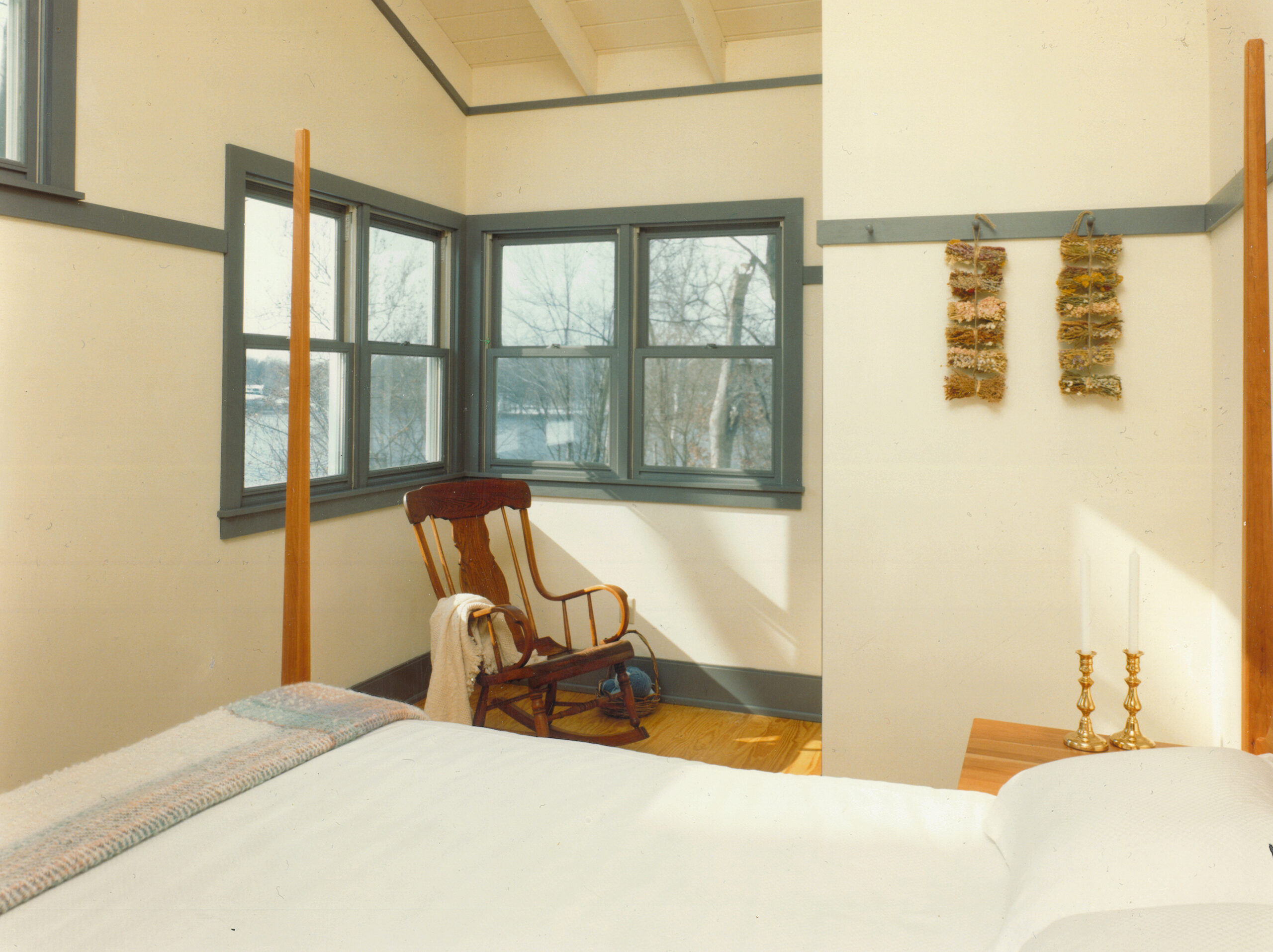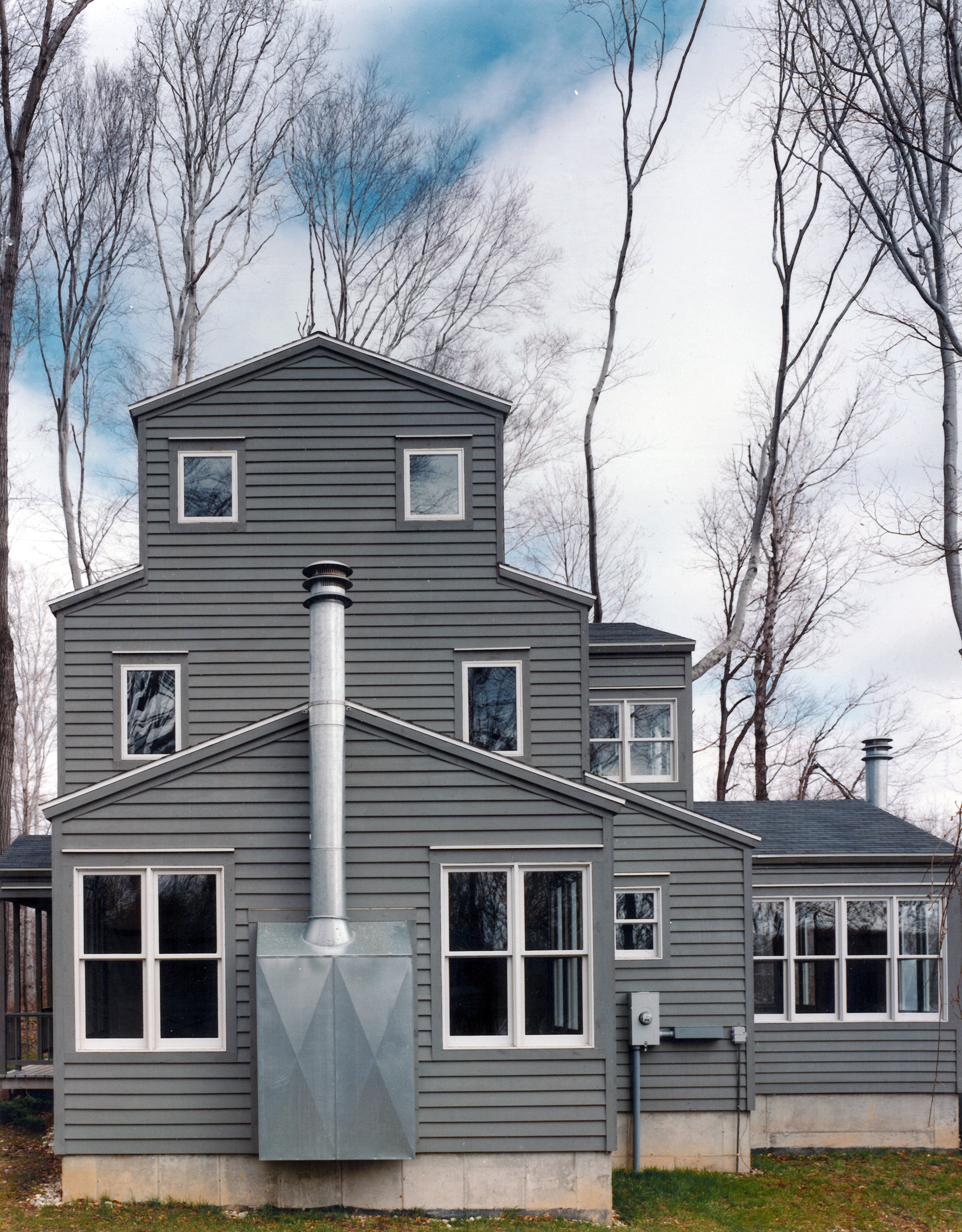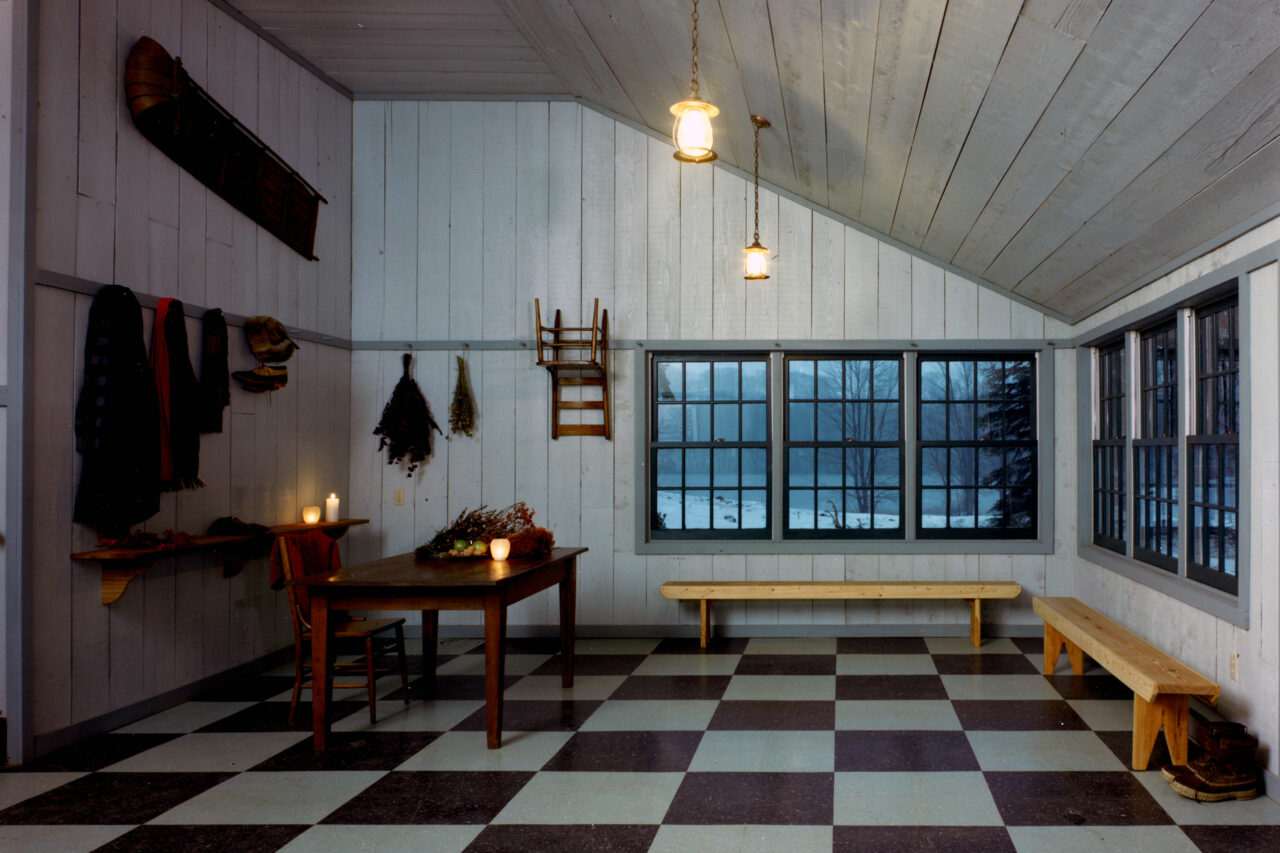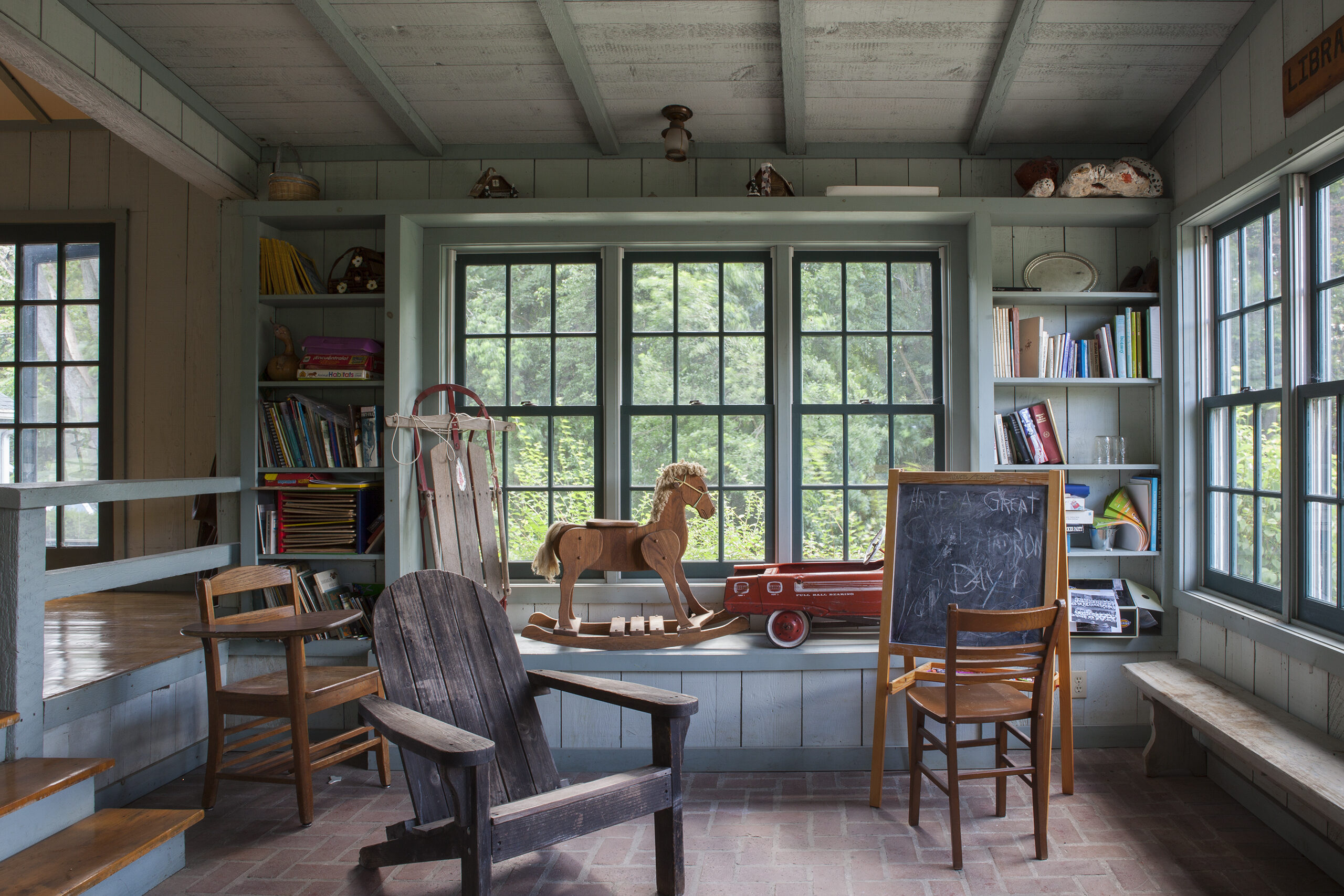 Simple rural and vernacular typologies were studied and reinterpreted for the three prototypical houses: the one-room schoolhouse, the cruciform house, and the telescoping house.