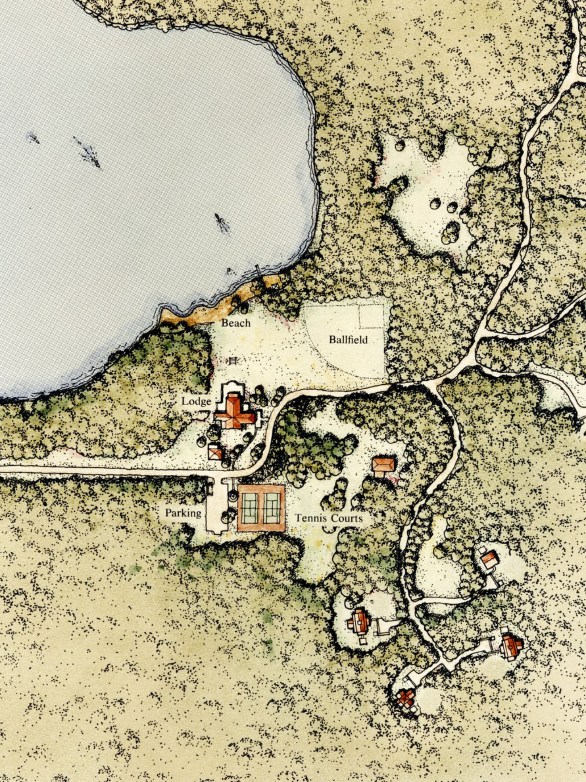 Formerly a Boy Scout campground, Camp Madron was transformed into a second-home community with 50 home sites across 360 acres. Centered on a 60-acre spring-fed lake, the community features shared amenities including a lodge, beach, and fruit orchards.