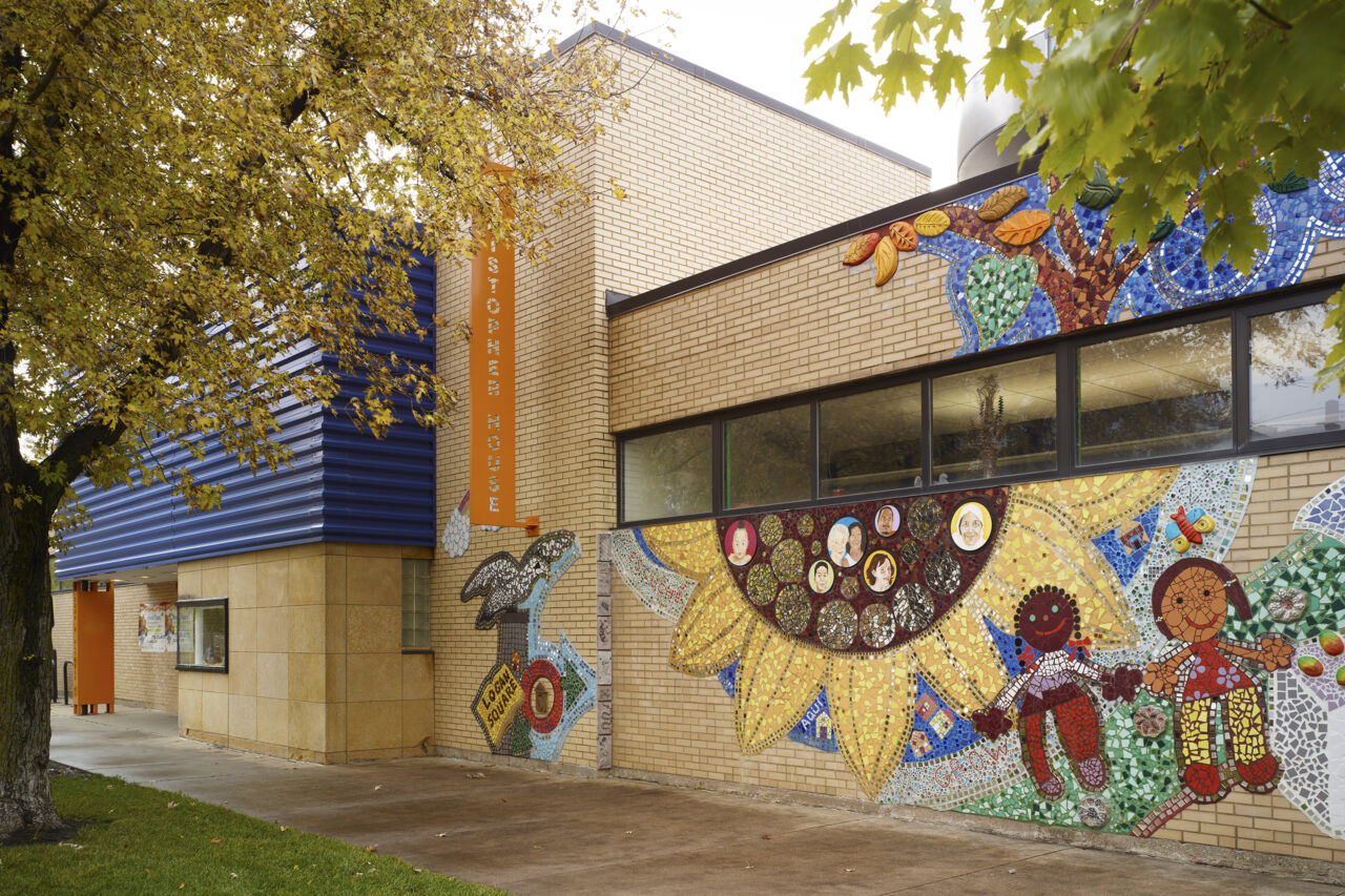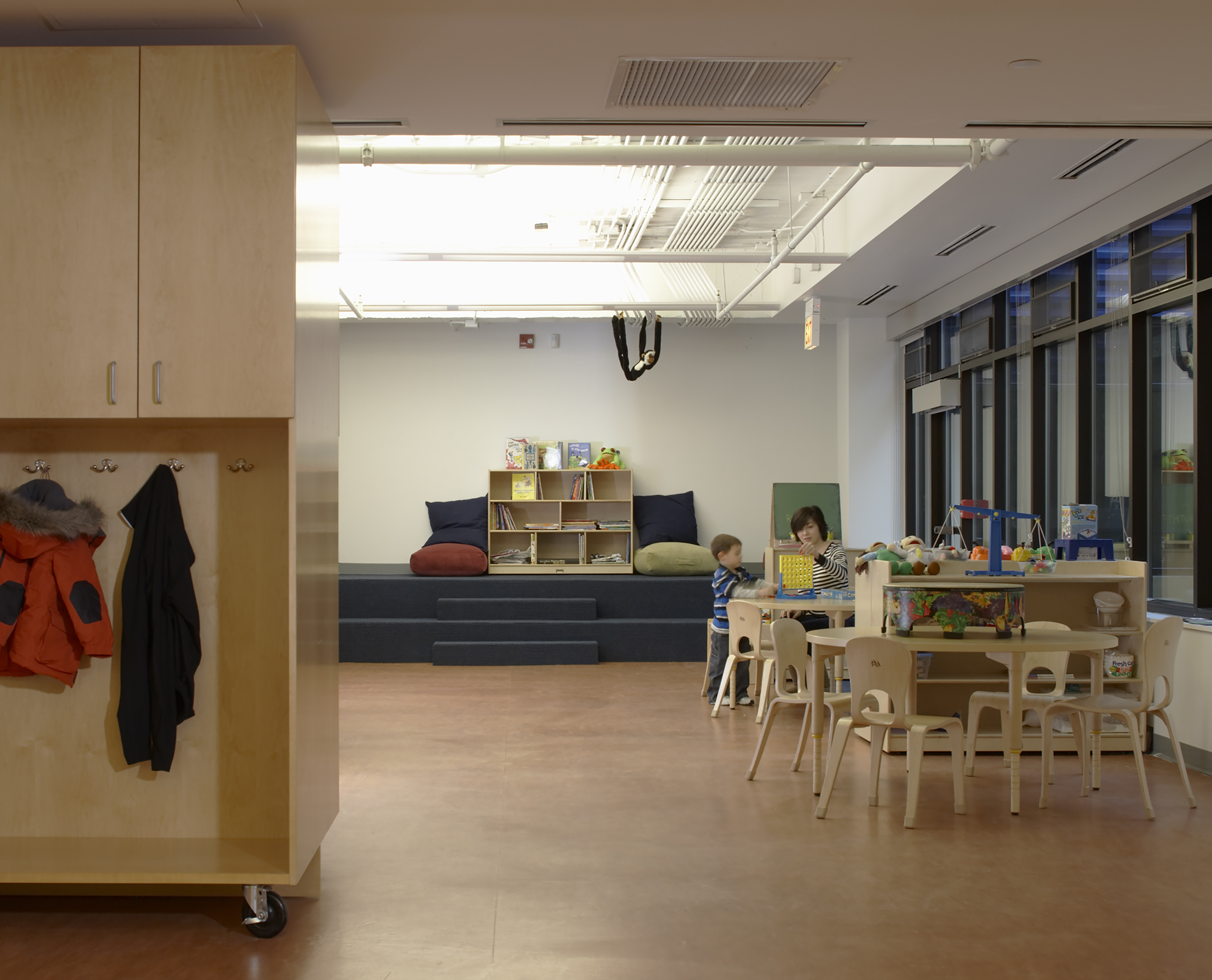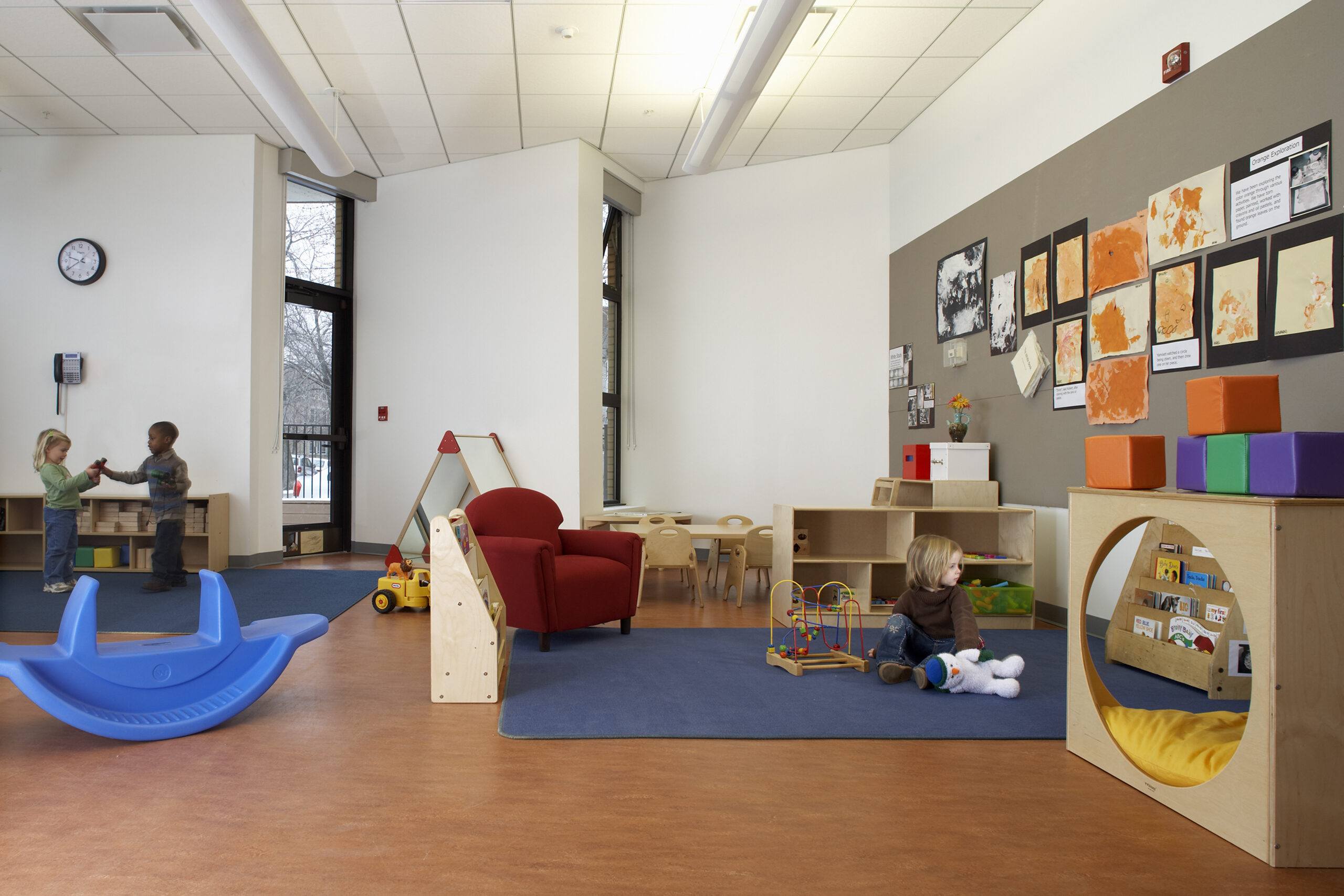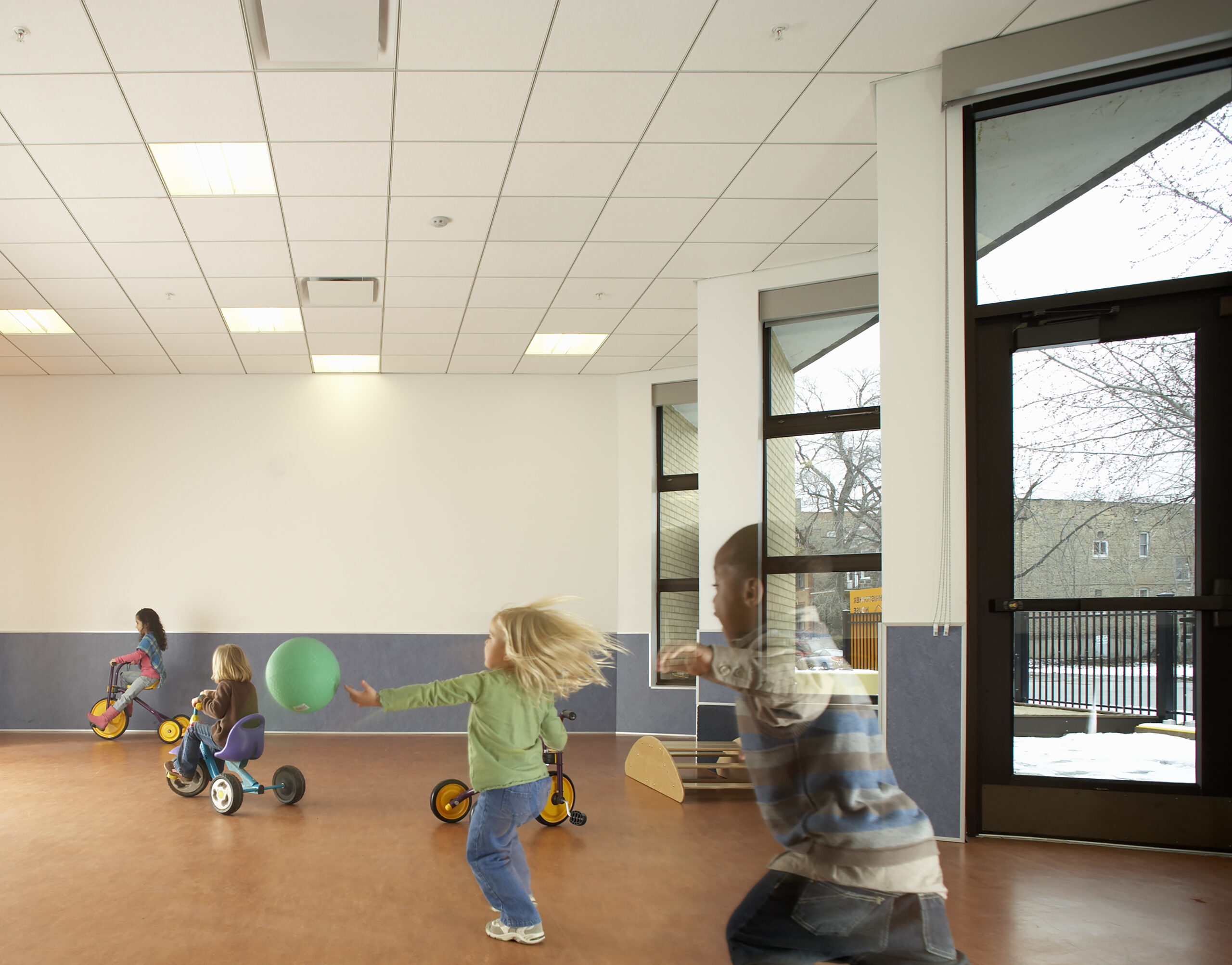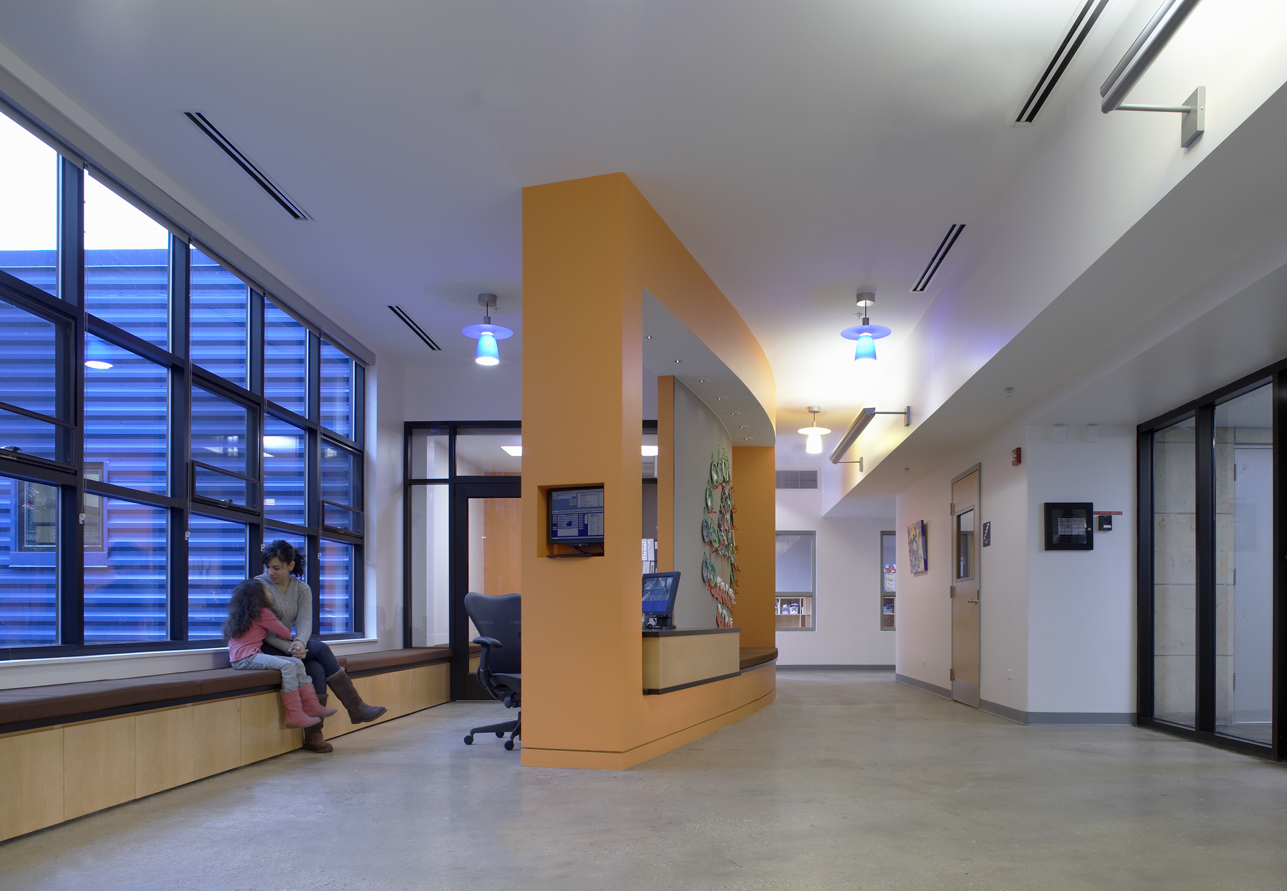 The project includes child daycare and afterschool classrooms, a gross motor playroom, offices, conference rooms, and a computer lab supporting Christopher House’s adult education, computer literacy, and family counseling programs.
