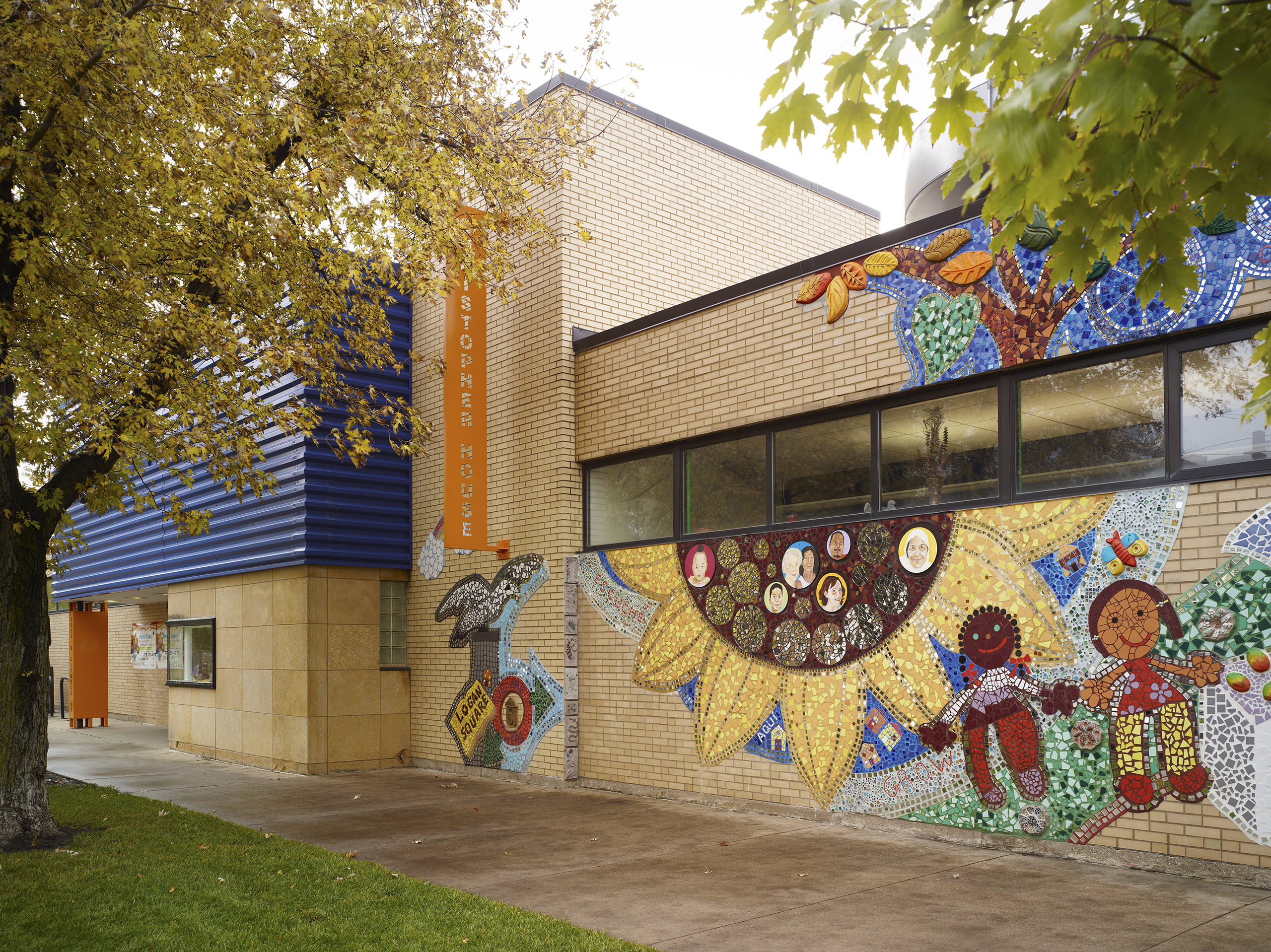 The project includes child daycare and afterschool classrooms, a gross motor playroom, offices, conference rooms, and a computer lab supporting Christopher House’s adult education, computer literacy, and family counseling programs.