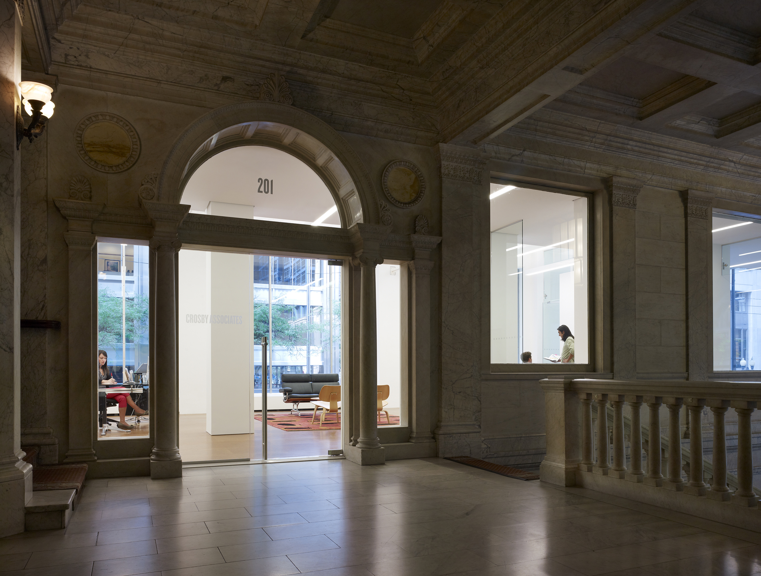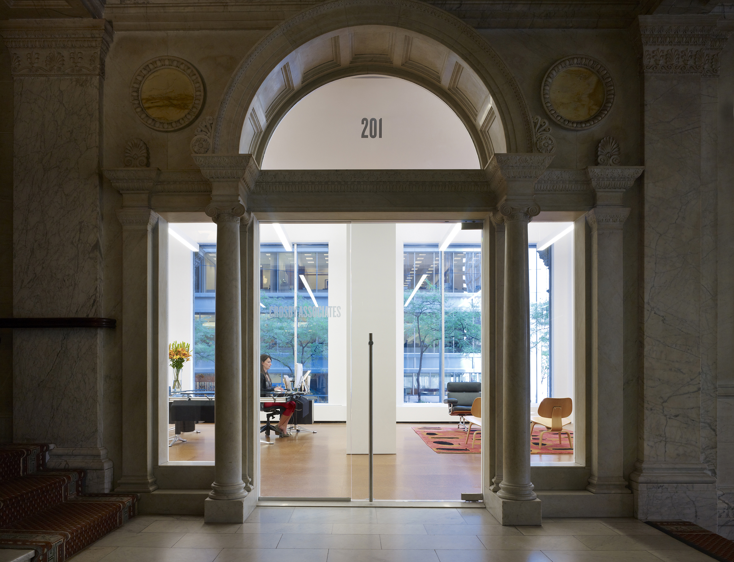 Located on the second floor of a 15-story office tower designed by legendary architect William LeBarron Jenney, this classically designed steel frame structure provided the perfect shell for an office/studio for a graphic design firm.