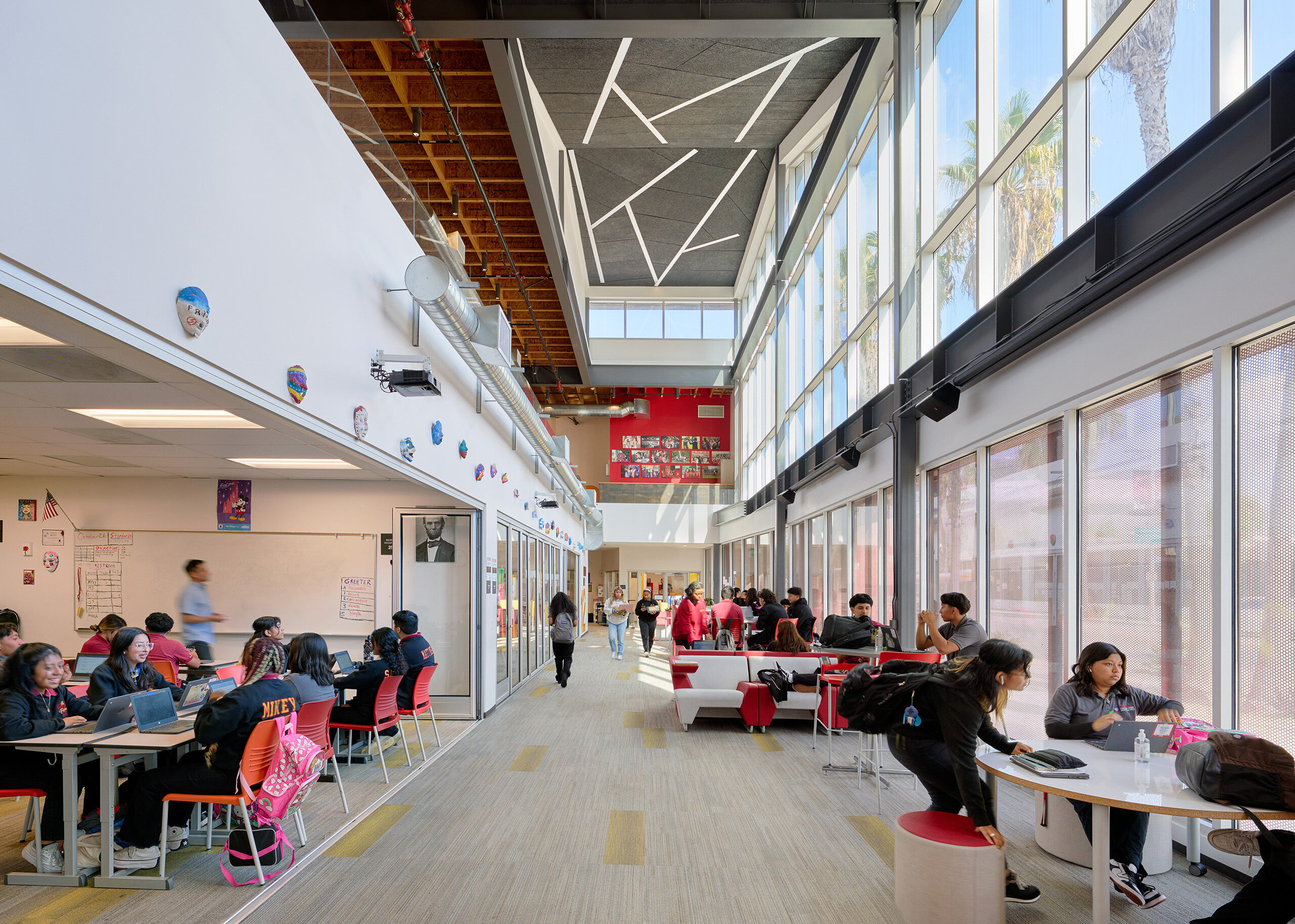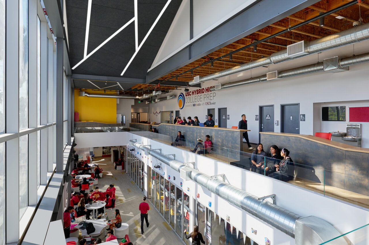 “Despite the challenges posed by the competitive real estate market in Los Angeles, WKA skillfully navigated cost and space constraints to deliver scalable and replicable designs. Their innovative quad-pod configurations and learning studios provide both visual connection and acoustic separation, fostering an ideal learning environment. The community steps they designed for our all-school town halls have become central to our school culture, embodying our pillars of personalization, purpose, and community.”