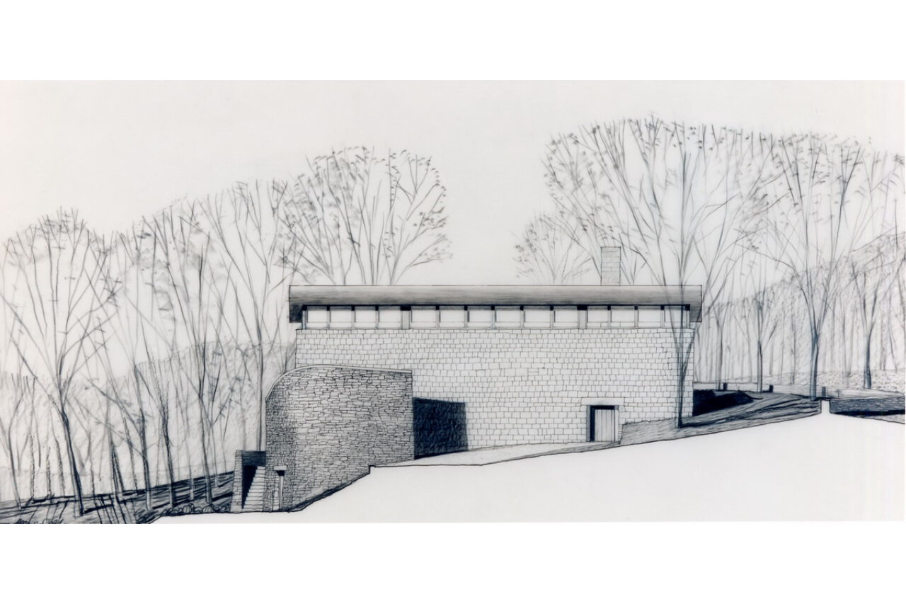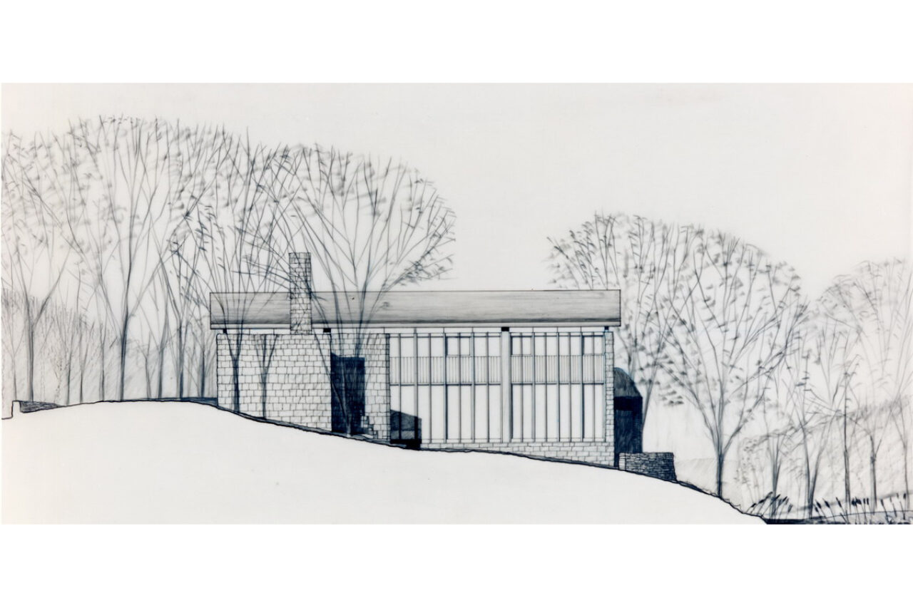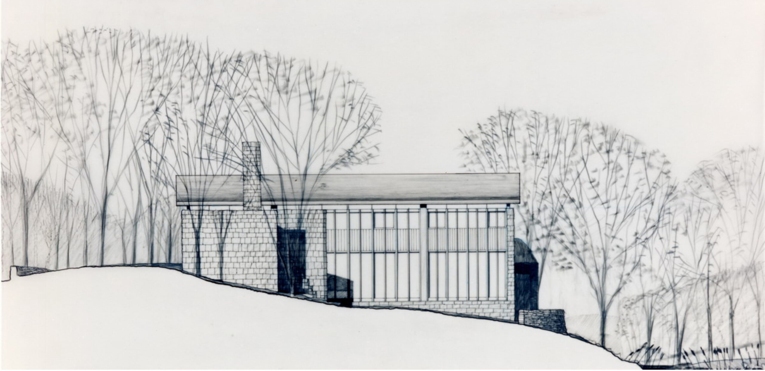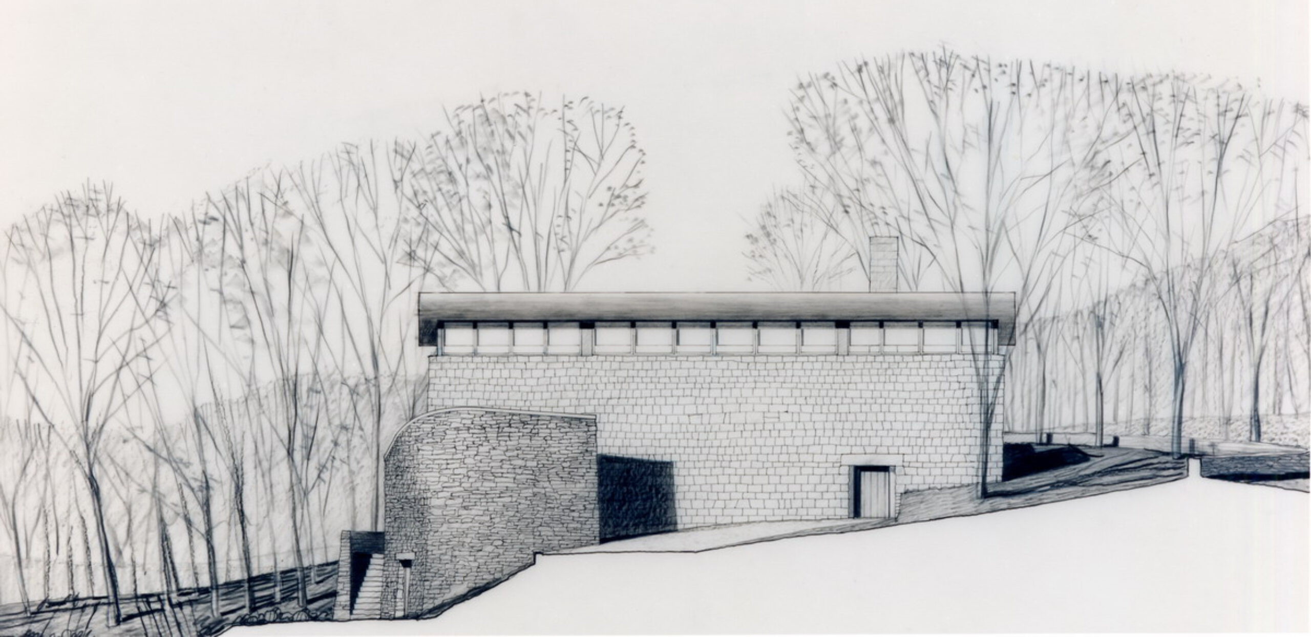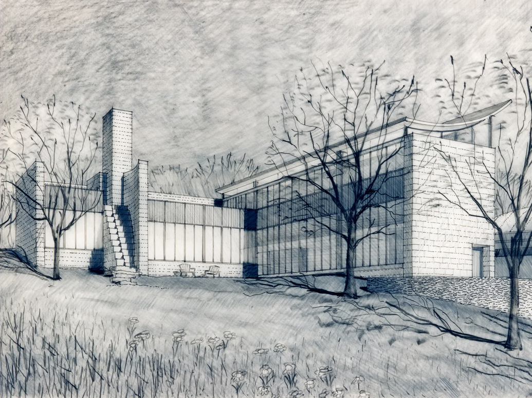 A Japanese developer invited eight architectural firms to design a speculative residence for a rare rolling tract of land southwest of Chicago, which was surrounded by the typical suburban overbuilt Tudors. Each firm agreed to limit the size of each house to four thousand square feet. A stone wall was to be built and shared by each site, to create a common link from site to site.