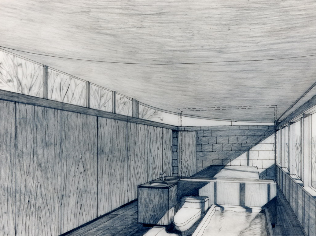 Wheeler Kearns’ el-shaped parti grew from the site: solid walls to the north and west shielding traffic and winter winds, and generous glazing to south and east facing the sun and the creek below. The two wings step following the ground plane, holding the house comfortably to the land. The building’s informal agrarian character is carried within, where food preparation and dining are in full view upon entry; while the living space is open to the same. Each bedroom is provided an open bathing area, which is recognized as an integral part of the inhabitant’s daily experience.