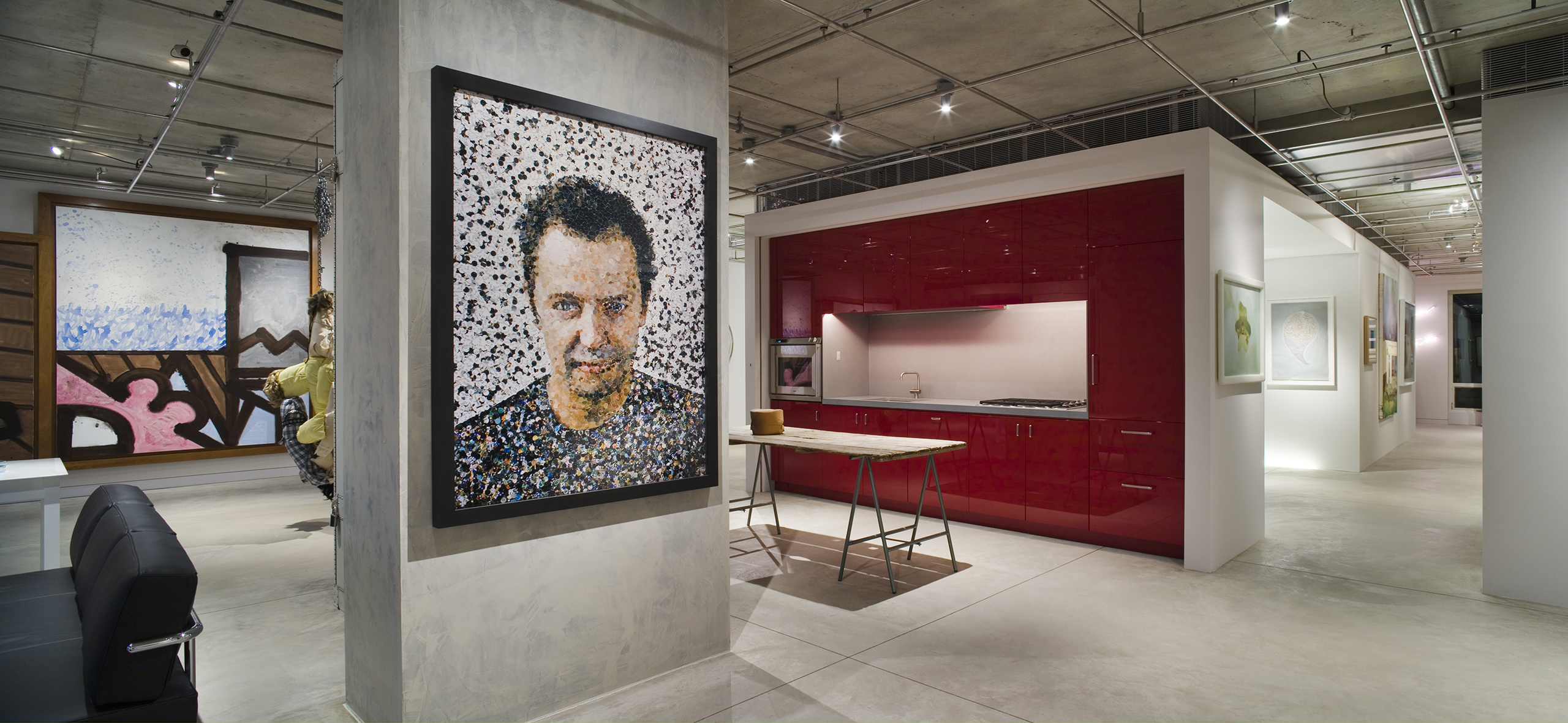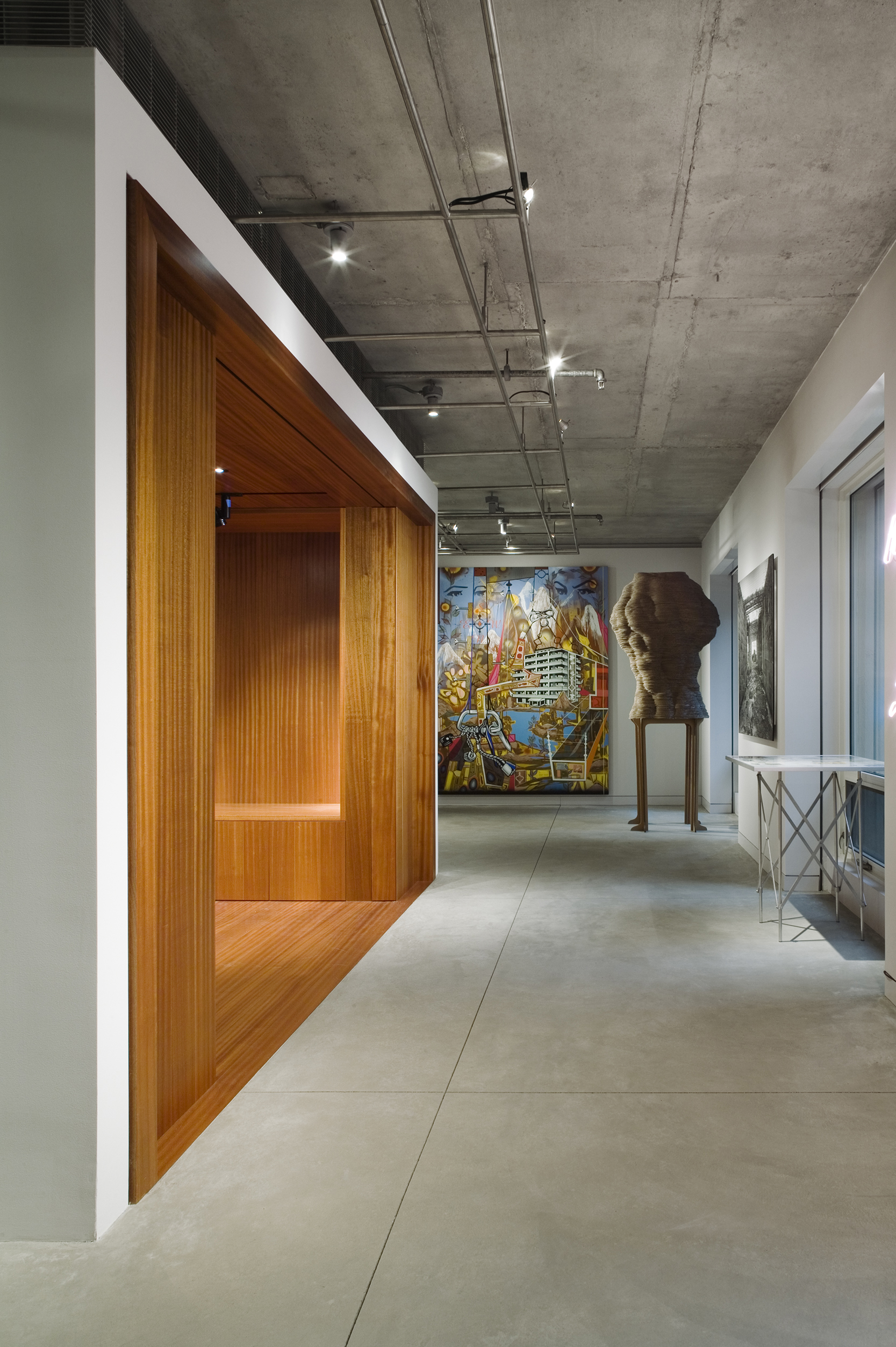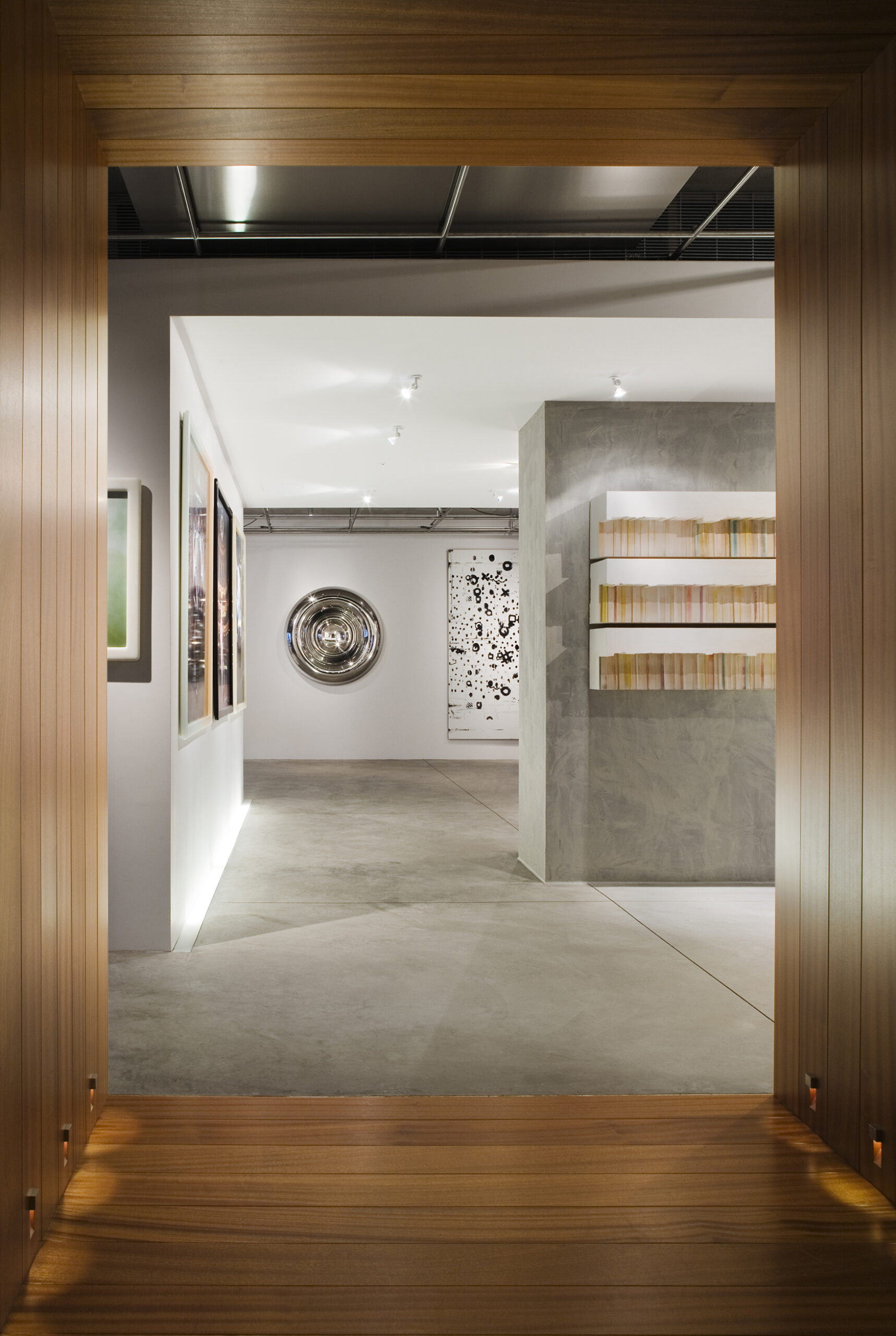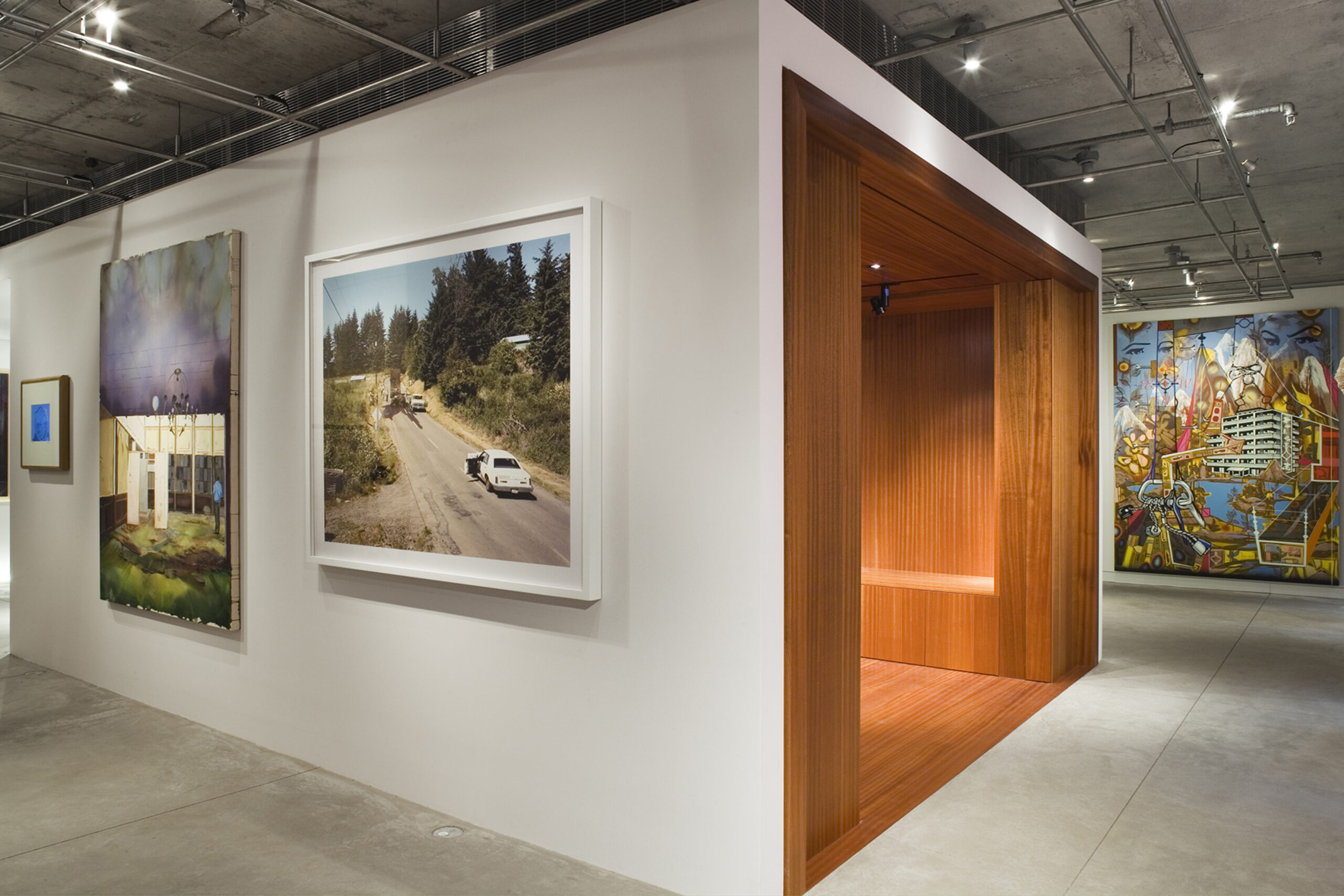 The space is one large sparely finished container with a richly finished service core. The space between the container’s shell and the service core becomes an open and continuous gallery for various works of art where the spare architectural finishes provide a mute background. The placement of the core within the container creates display spaces of varying scales, proportion, intimacy and flexibility.