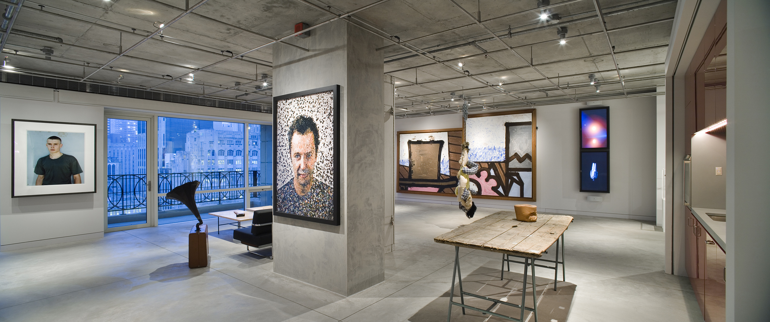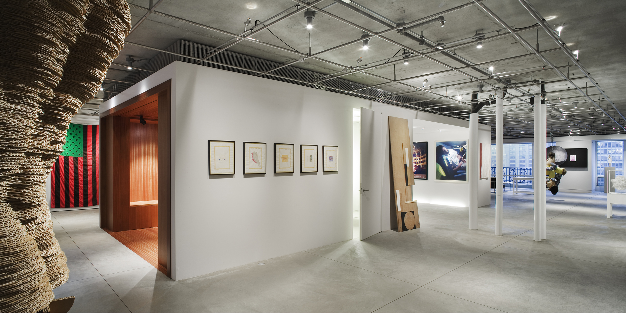 The space is one large sparely finished container with a richly finished service core. The space between the container’s shell and the service core becomes an open and continuous gallery for various works of art where the spare architectural finishes provide a mute background. The placement of the core within the container creates display spaces of varying scales, proportion, intimacy and flexibility.