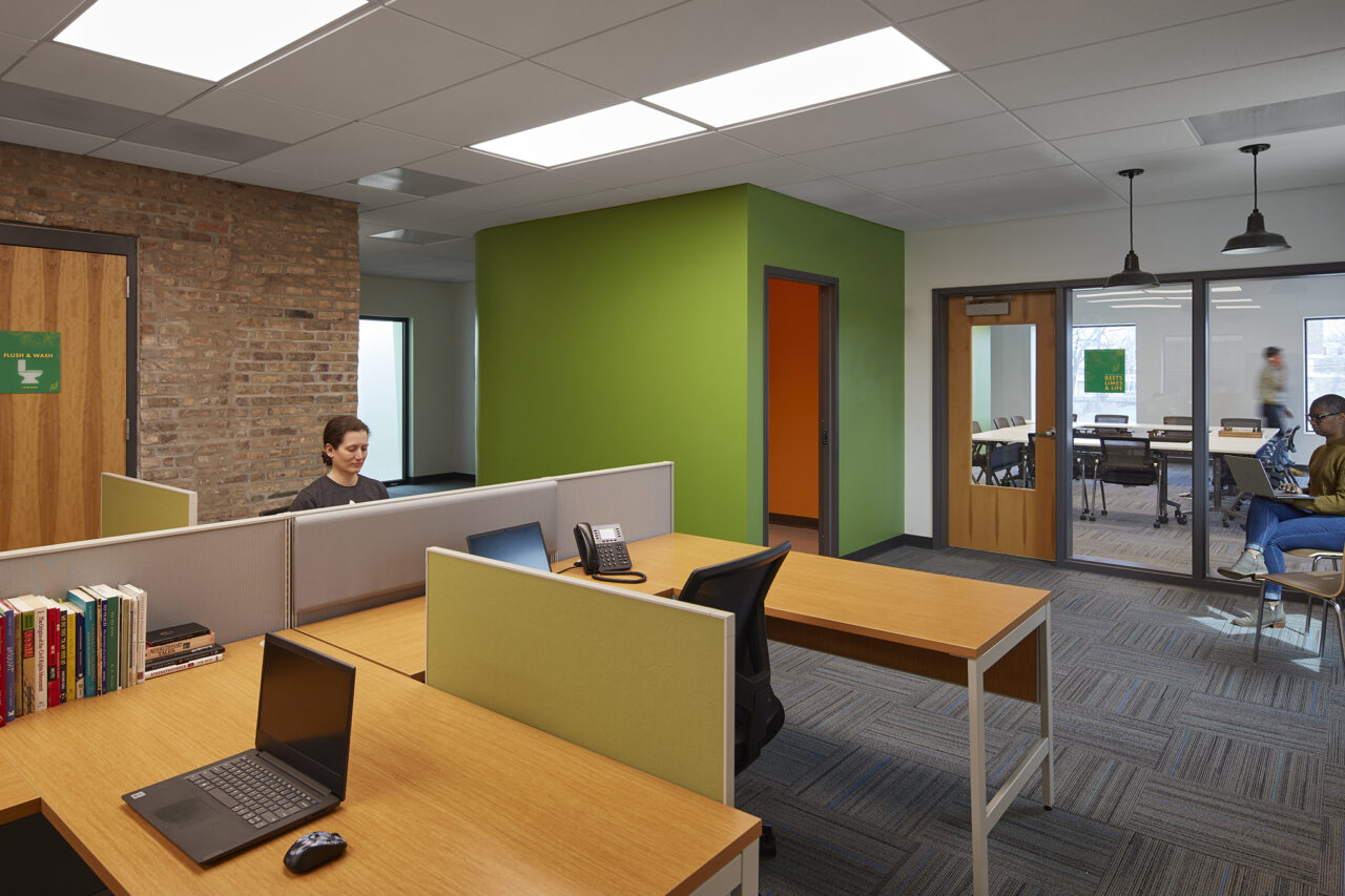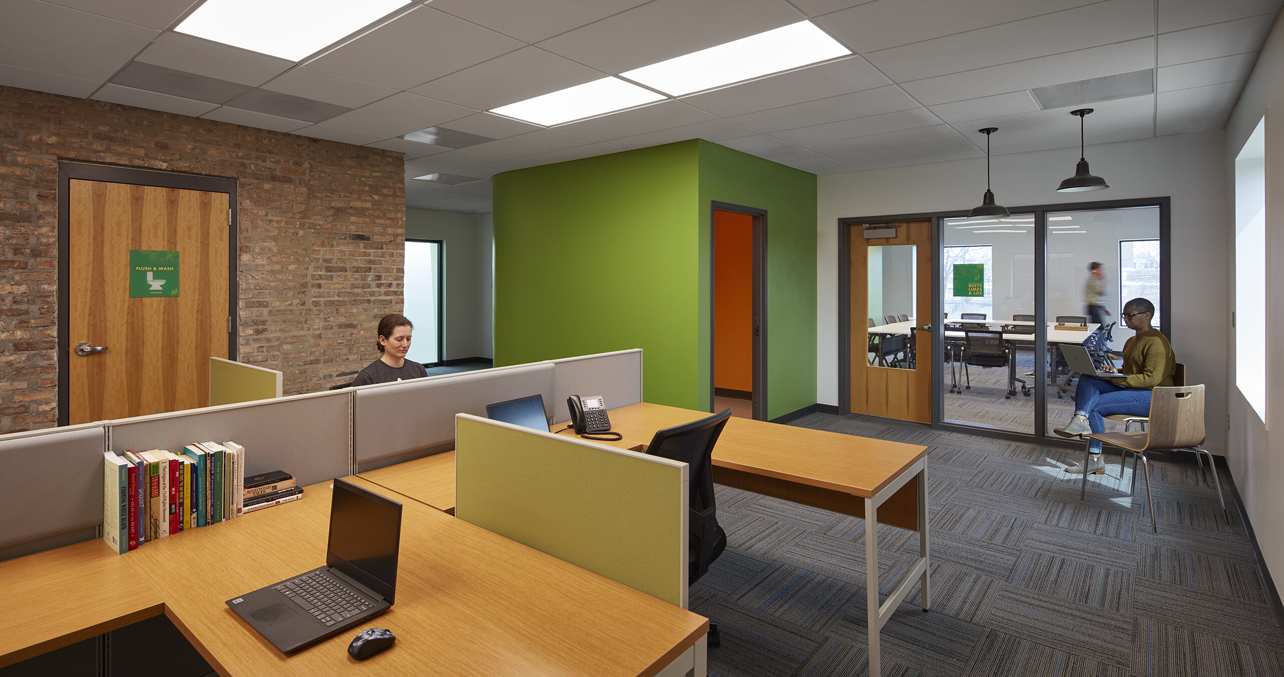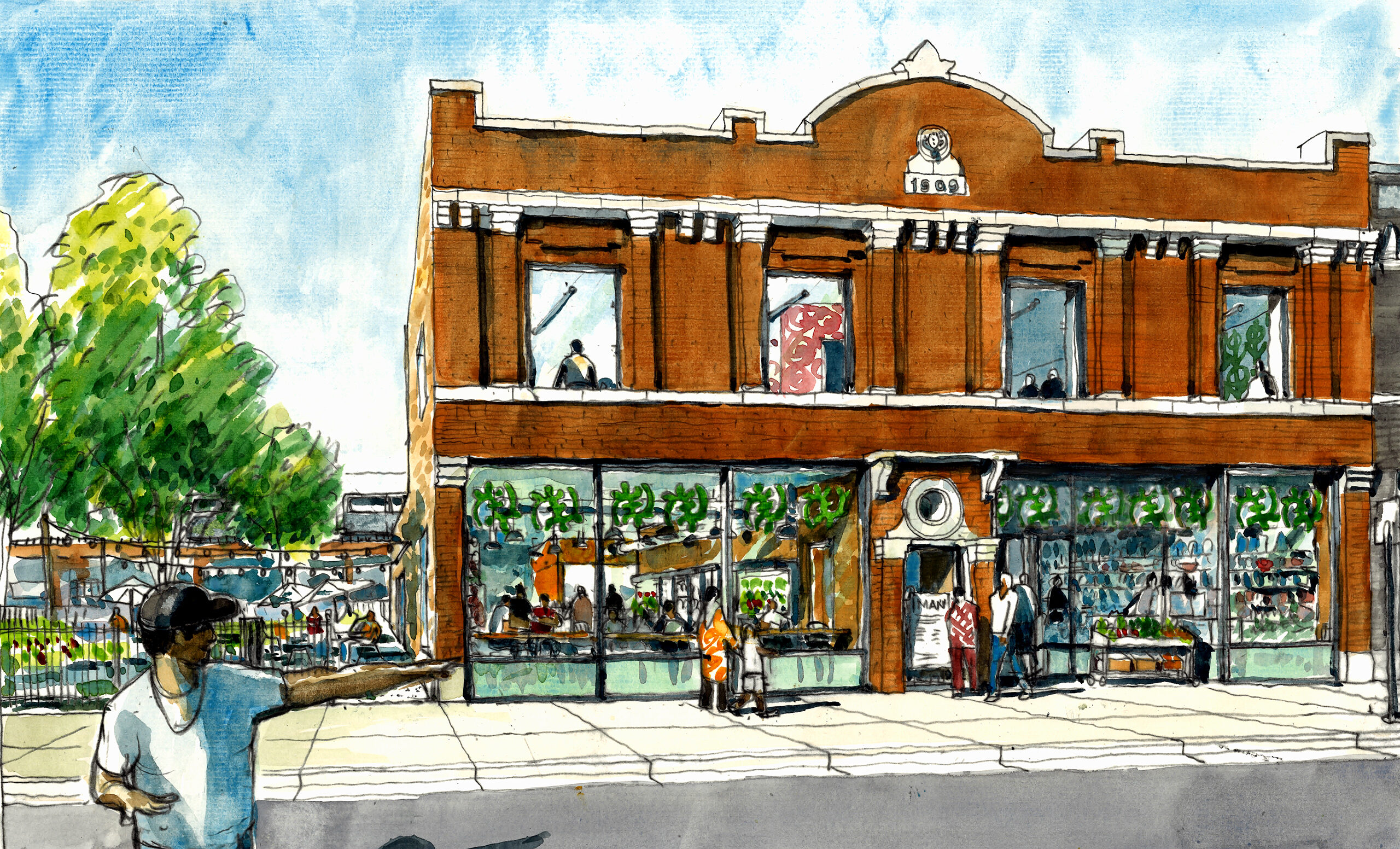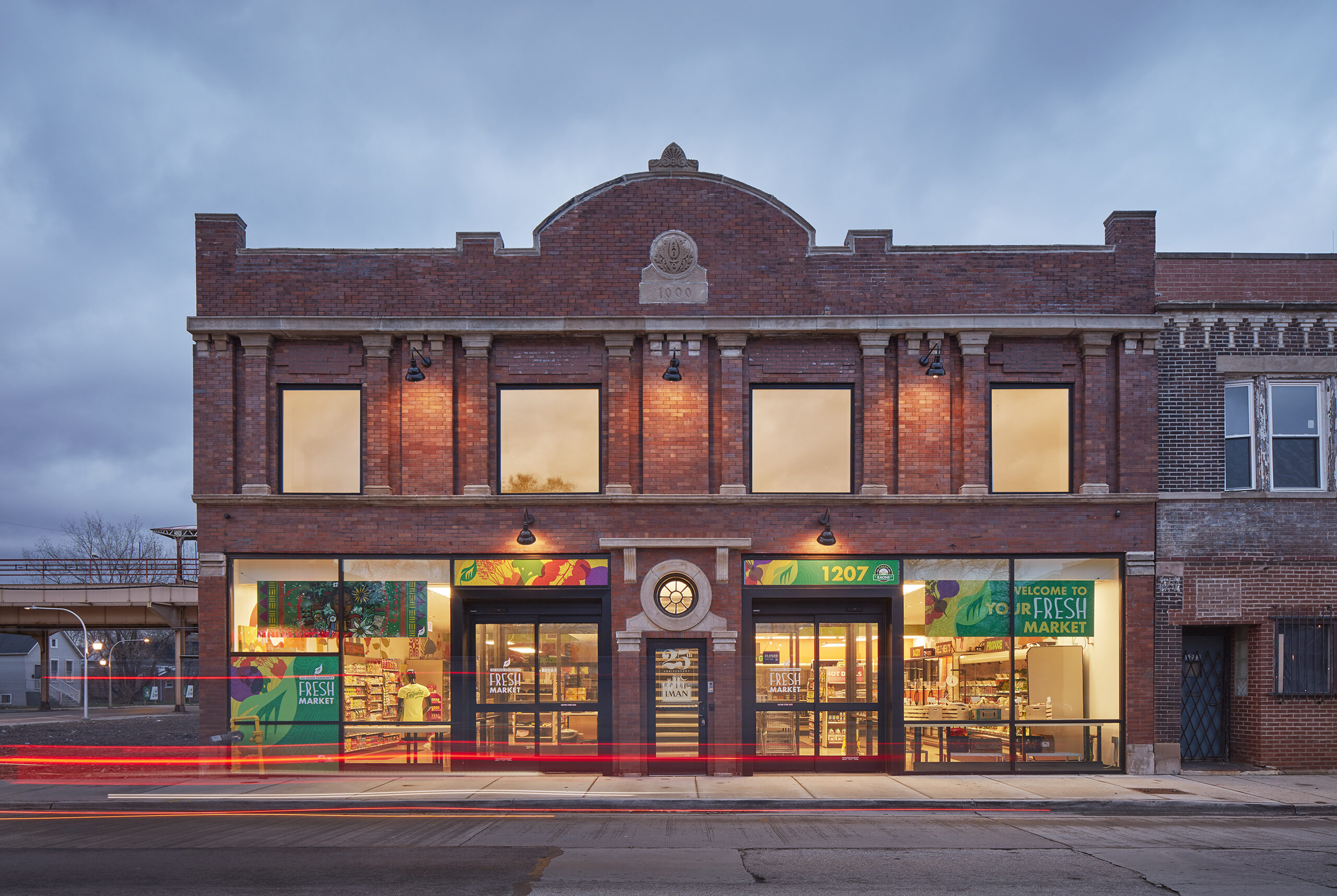 Located at 63rd and Racine Ave. in Englewood, the project marks the first phase of the ‘Go Green on Racine’ master plan to revitalize a neighborhood severely challenged by long-term systemic disinvestment. This adaptive reuse of a 1906 two-story masonry building, despite its structural issues and fire damage, serves as a symbol of resilience amidst neighborhood decline.