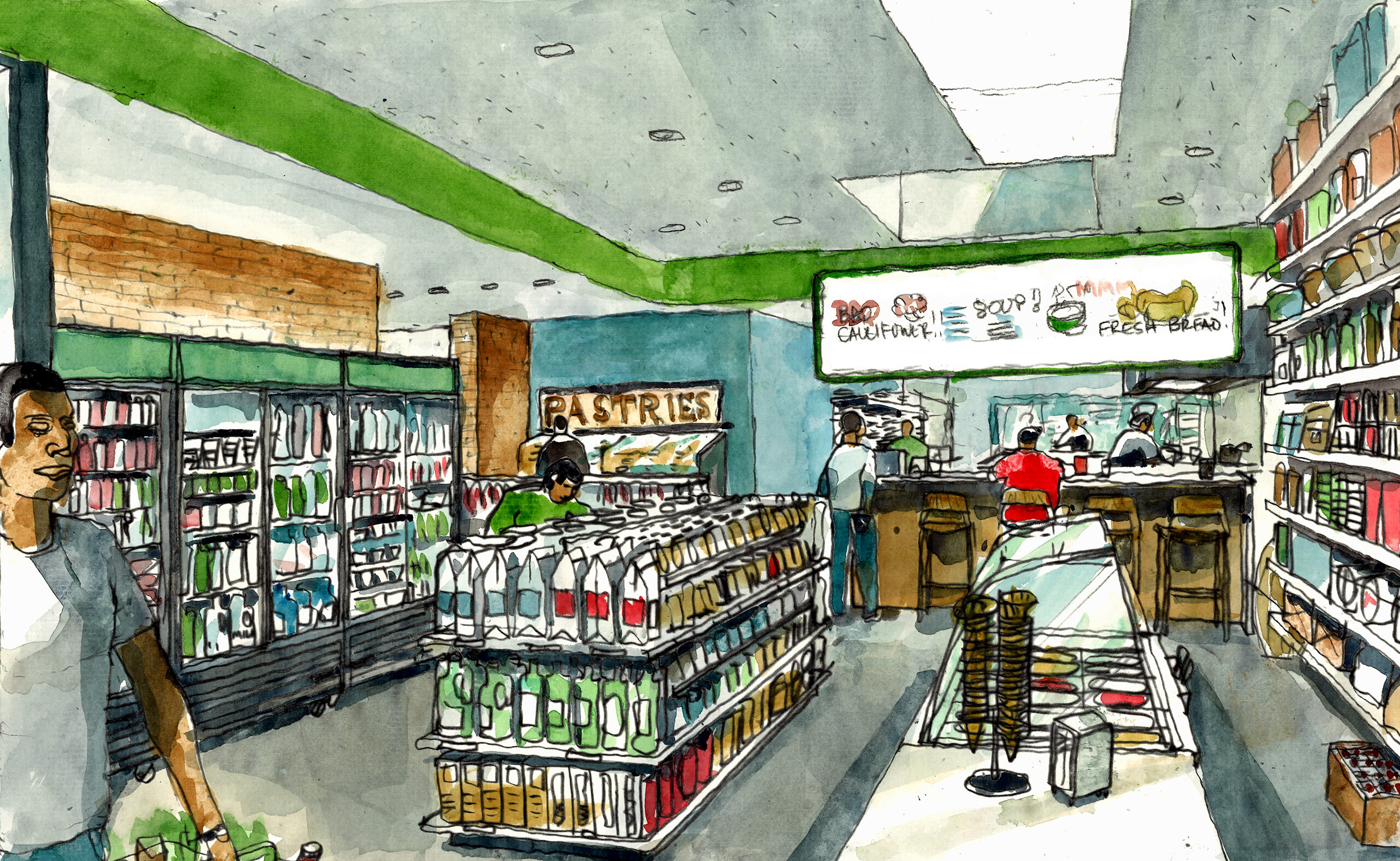 Many low-income neighborhoods lack access to healthy groceries, often relying on corner stores with limited fresh food options. The Fresh Market rethinks the traditional urban corner store, offering locally sourced produce and chef-prepared meals.
