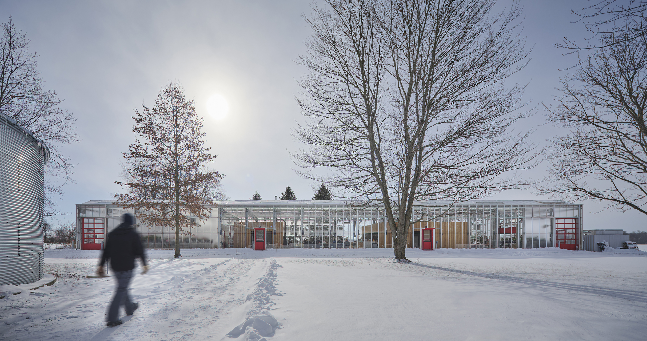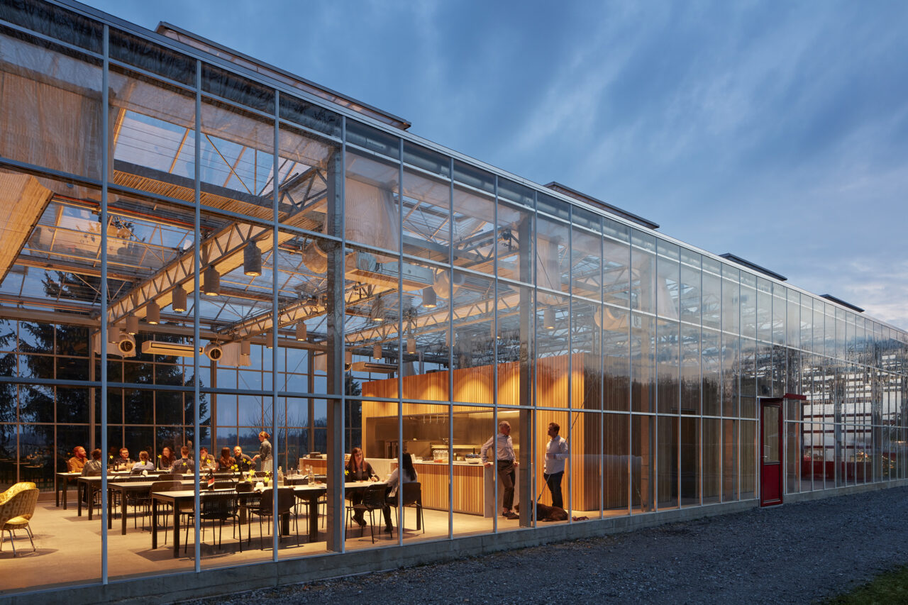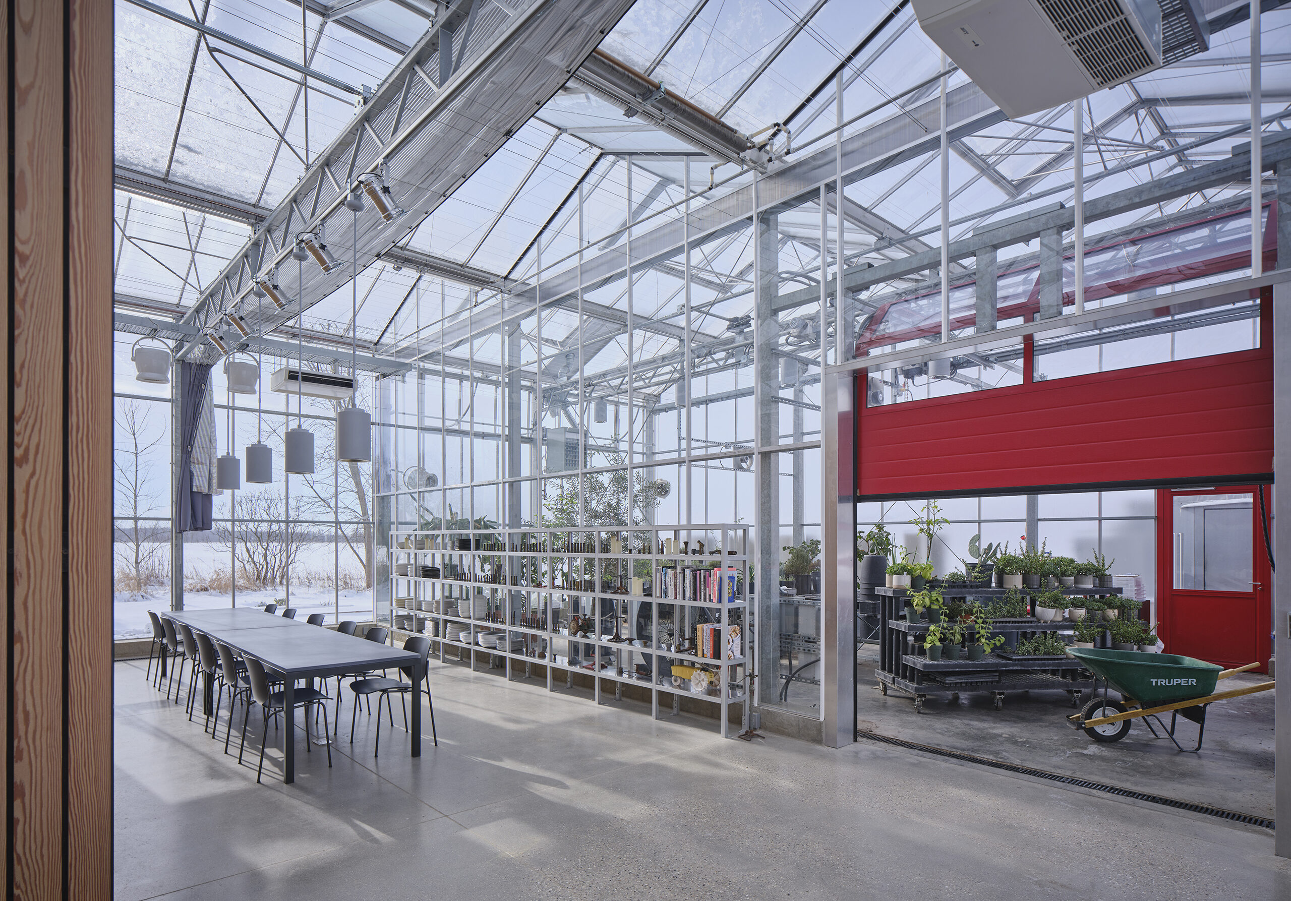 Harvesting the sun with its broadside facing south, the building utilizes the Dutch Venlo greenhouse kit-of-parts system, organizing its diverse program into three zones with associated glazing strategies.