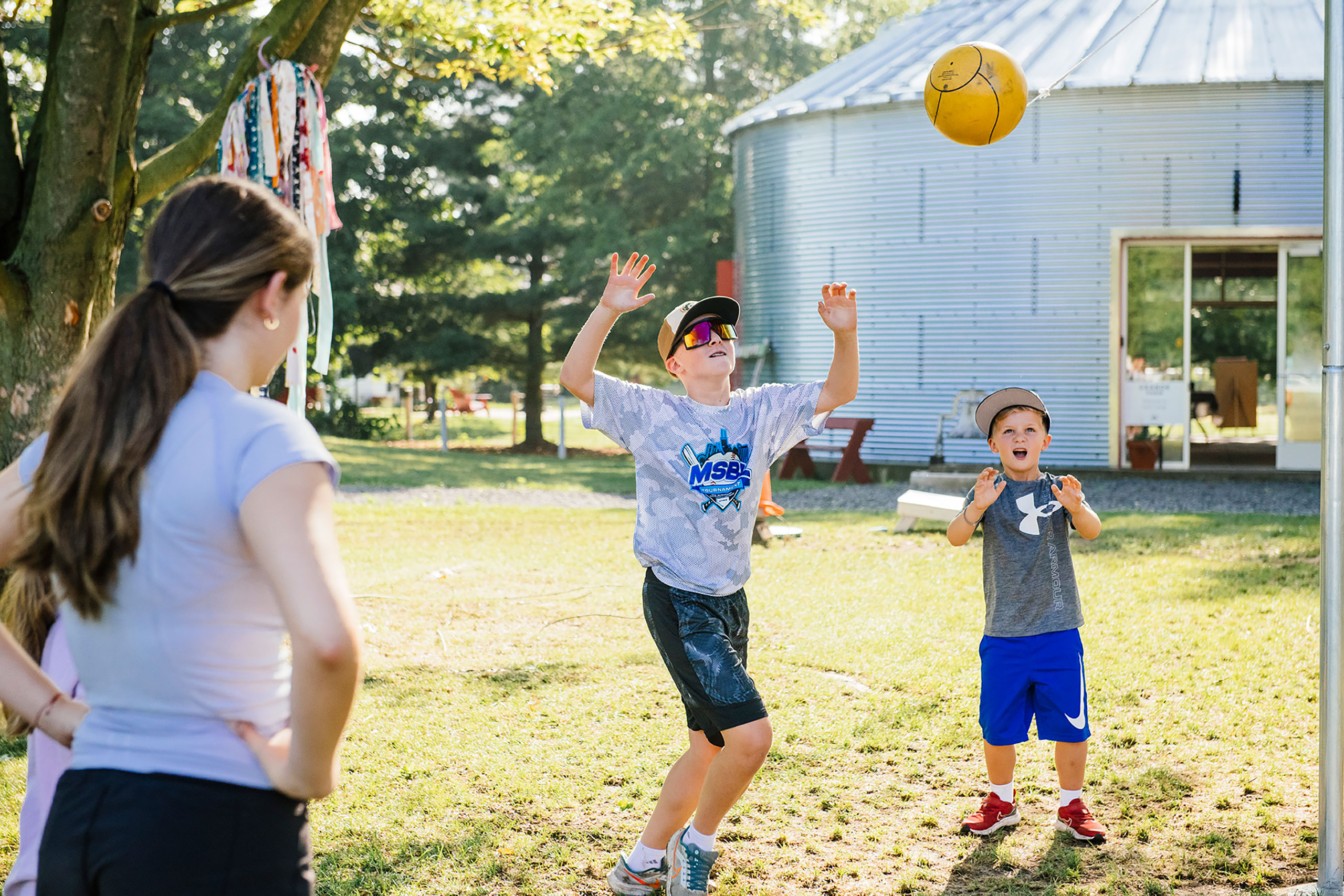 Large glass overhead doors punctuate the round exterior, creating points of connection to the farm from each cardinal point, and with the help of a skylight (substituted for the typical feed port/cap above) fill the space with natural light. The fully insulated interior walls are clad in Douglas Fir plywood to bring material warmth, residing under the double skinned, gleaming metal ceiling. The large, open plan provides the perfect environment for art projects, skits, games, and additional gathering space for farm events.