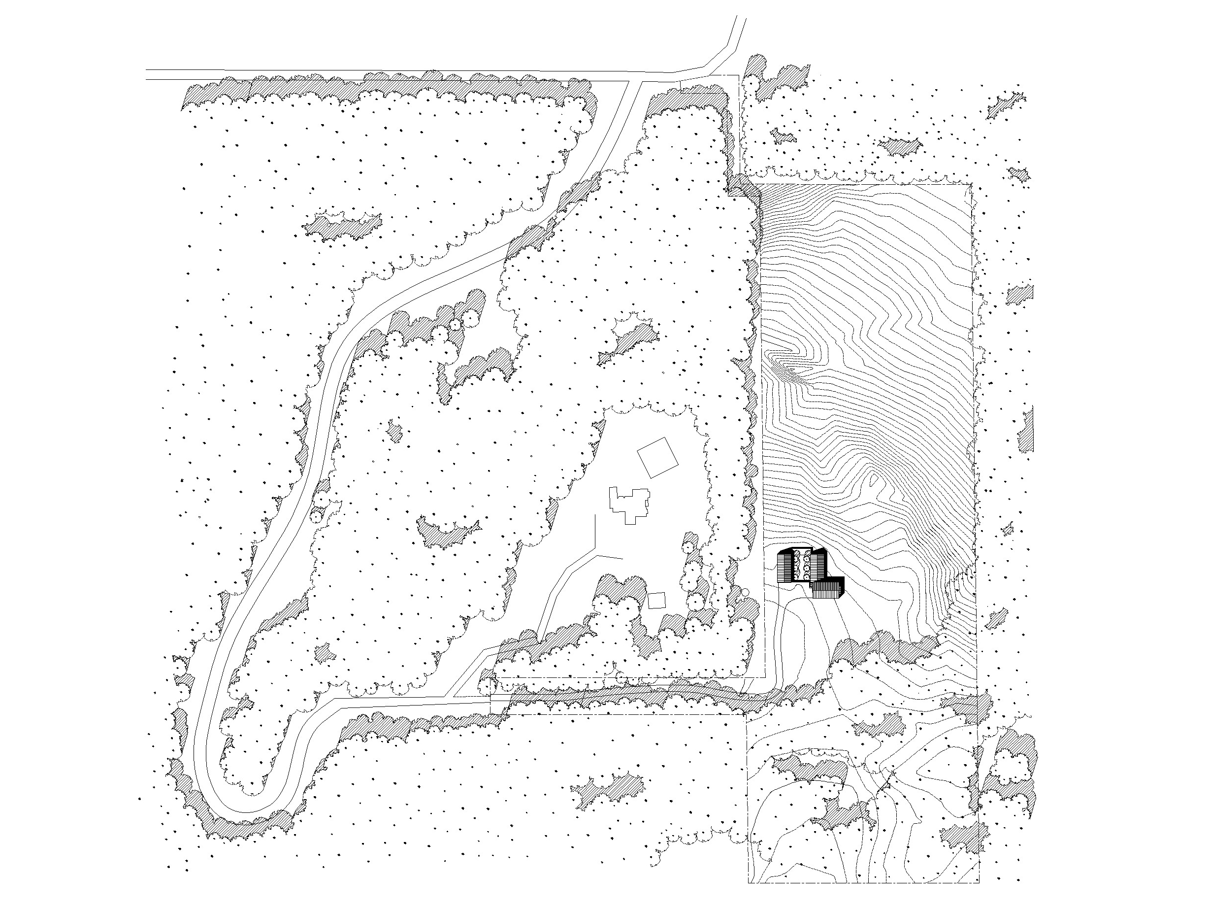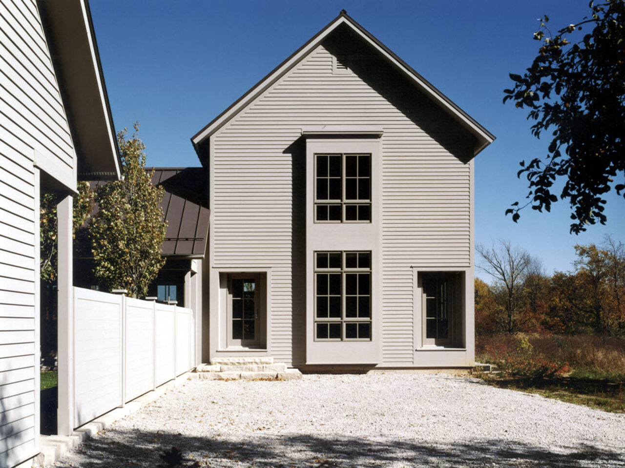 After searching for several years, a semi-retired couple purchased a ten acre tract of land in northwest Indiana that was formerly remote farm fields. Conceived of as two elements, the project places a principle house adjacent to two service wings that create a protected courtyard between them.