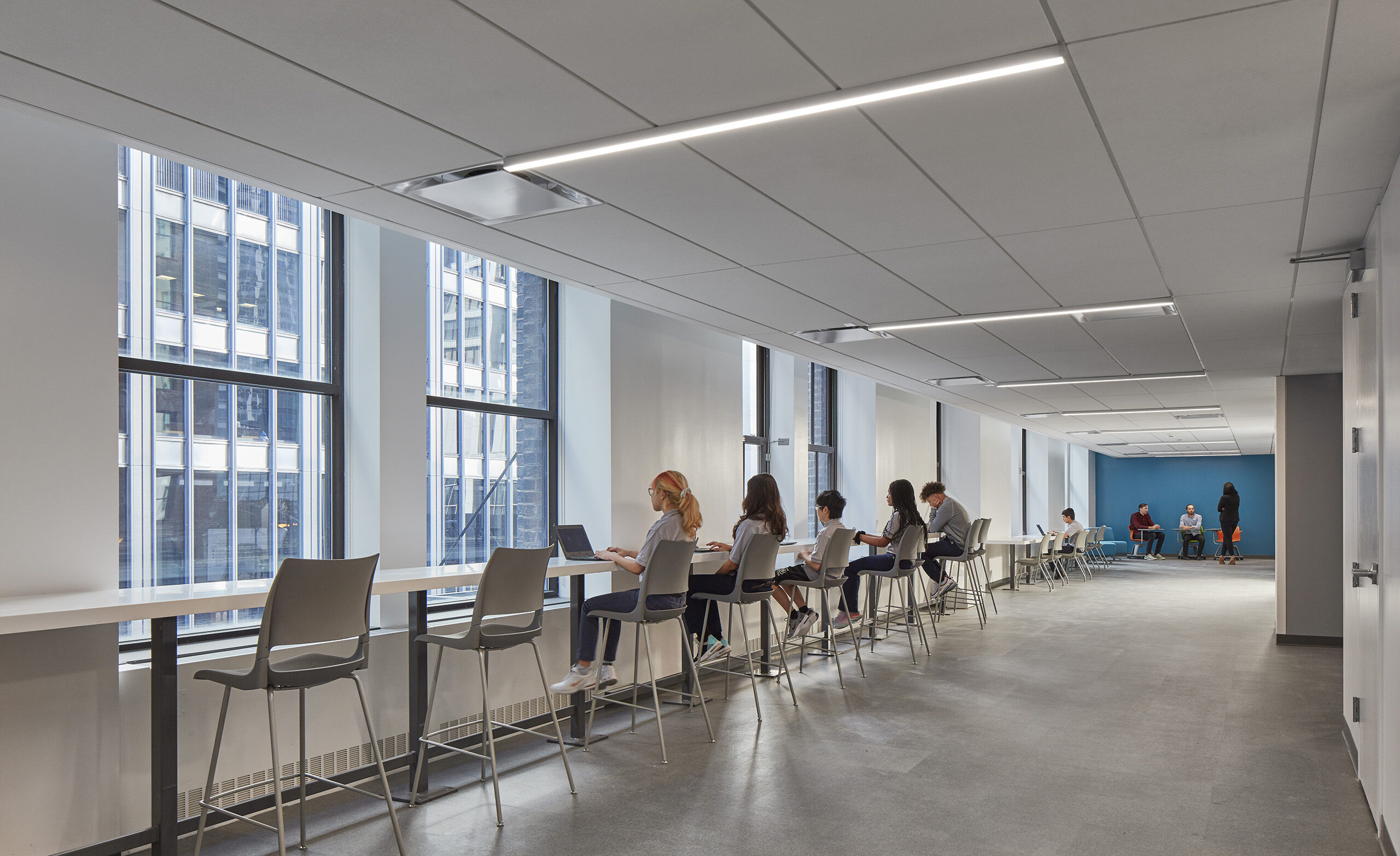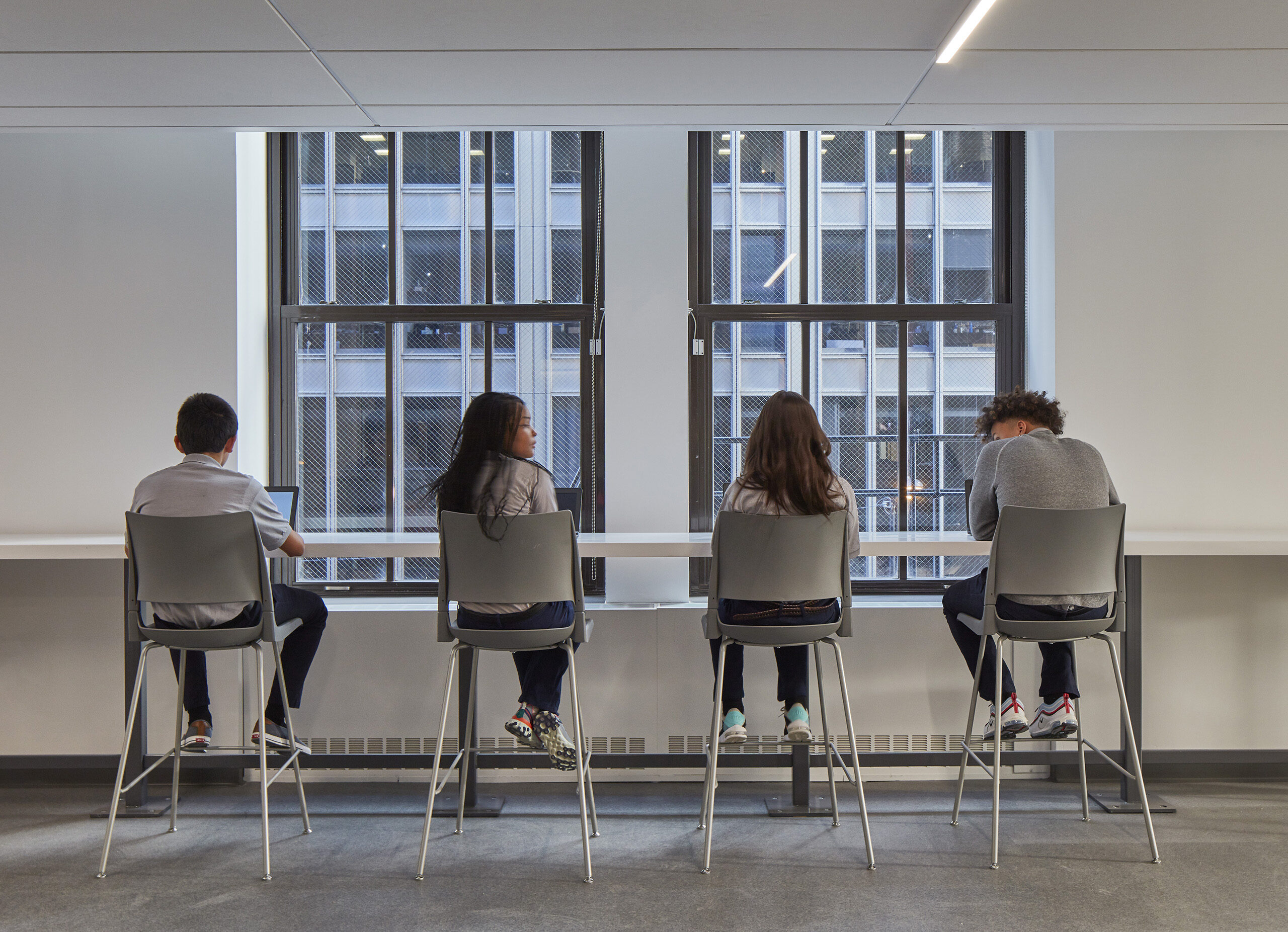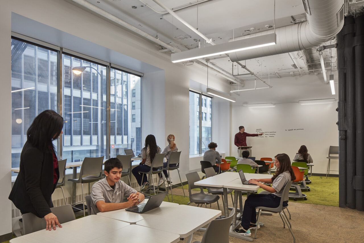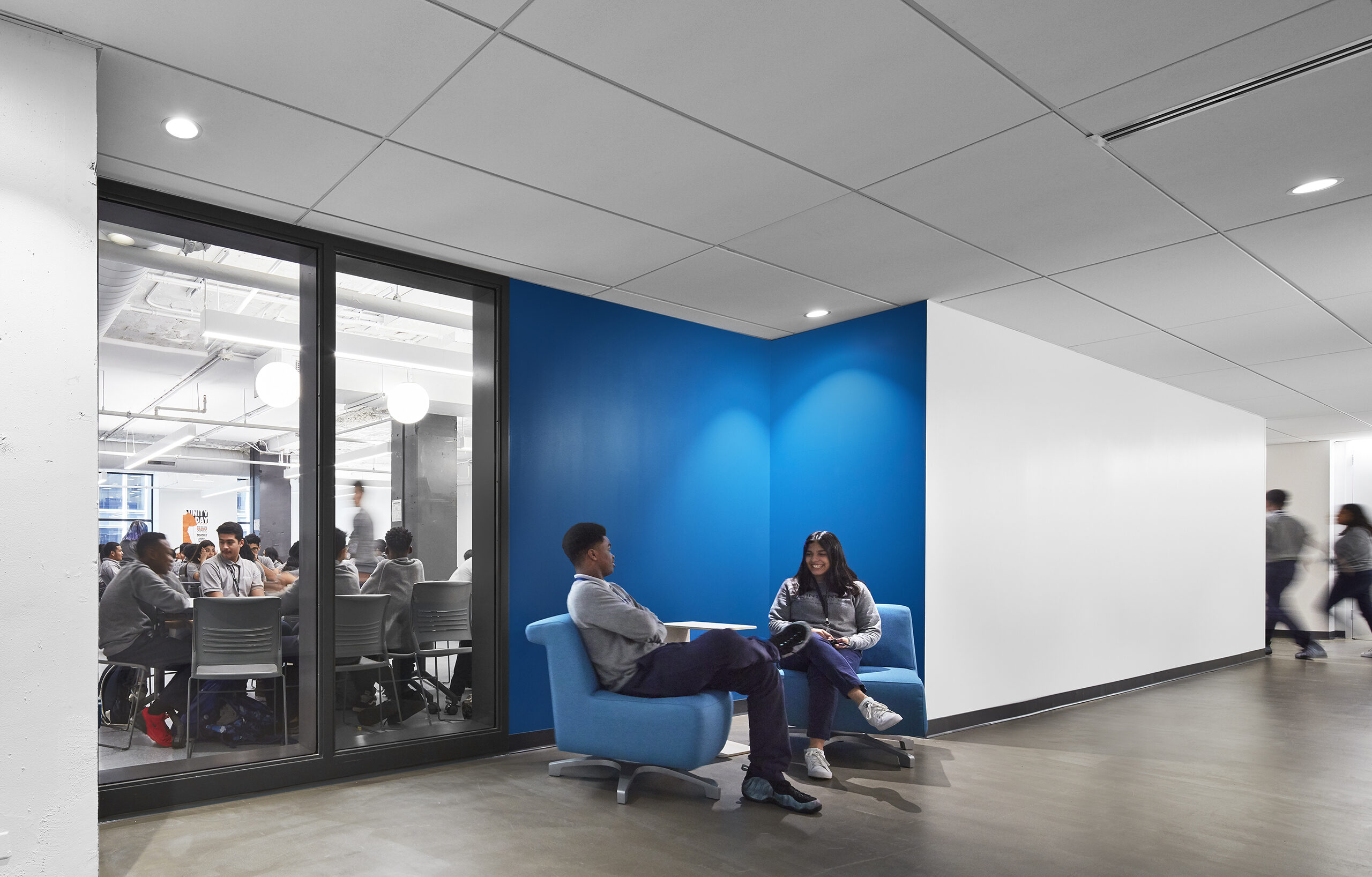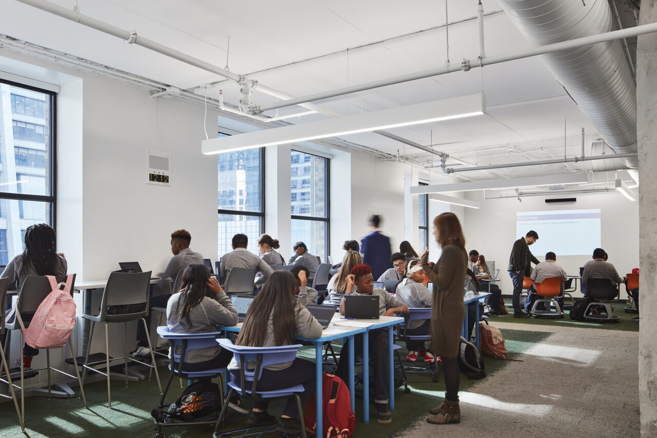 Building upon the successes of Intrinsic’s flagship Blended Learning campus on Chicago’s Northwest side, the Downtown Campus design reinforces the school’s unique 21st-century learning styles and adapts them to fit a completely different context in a downtown high-rise structure.