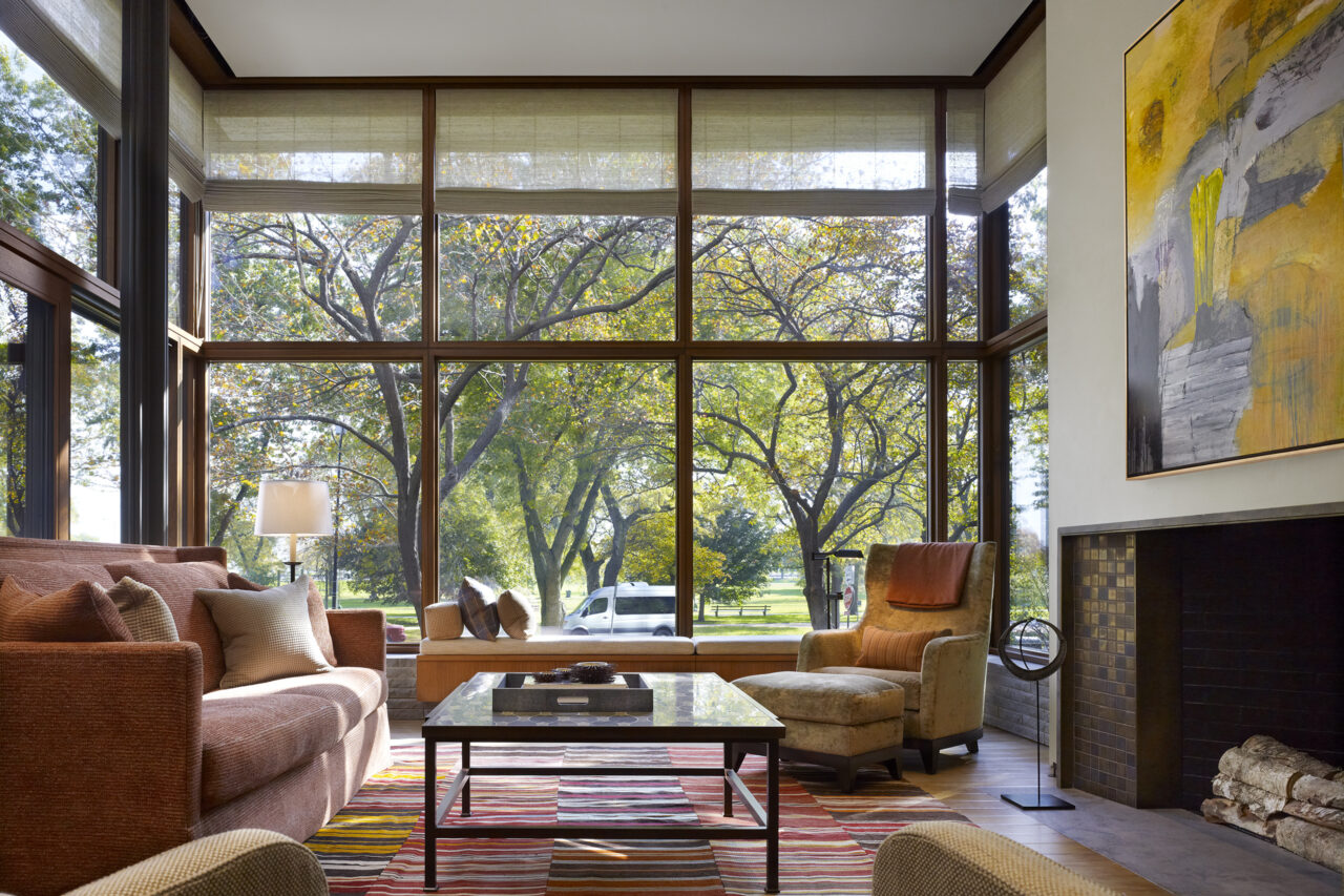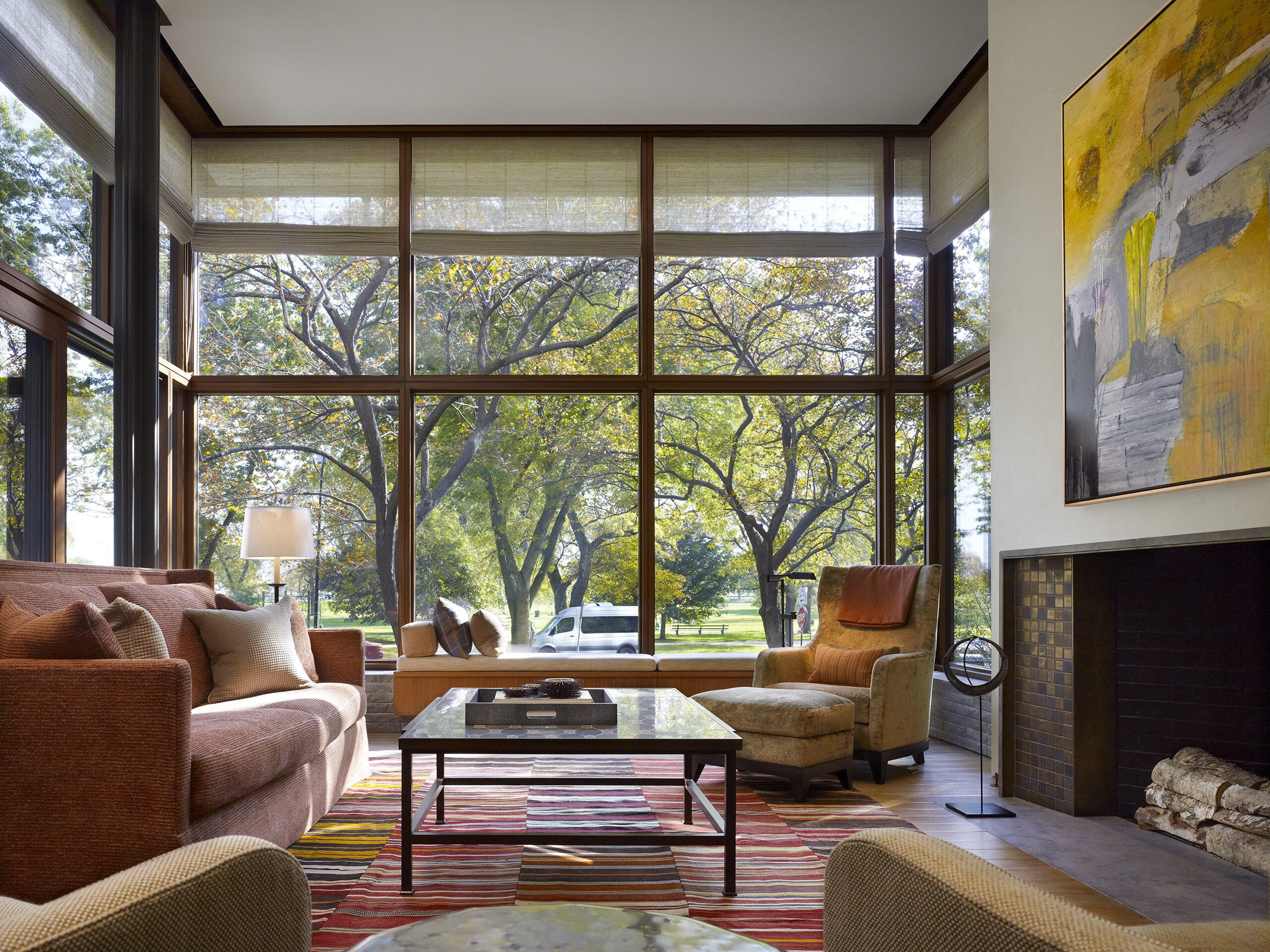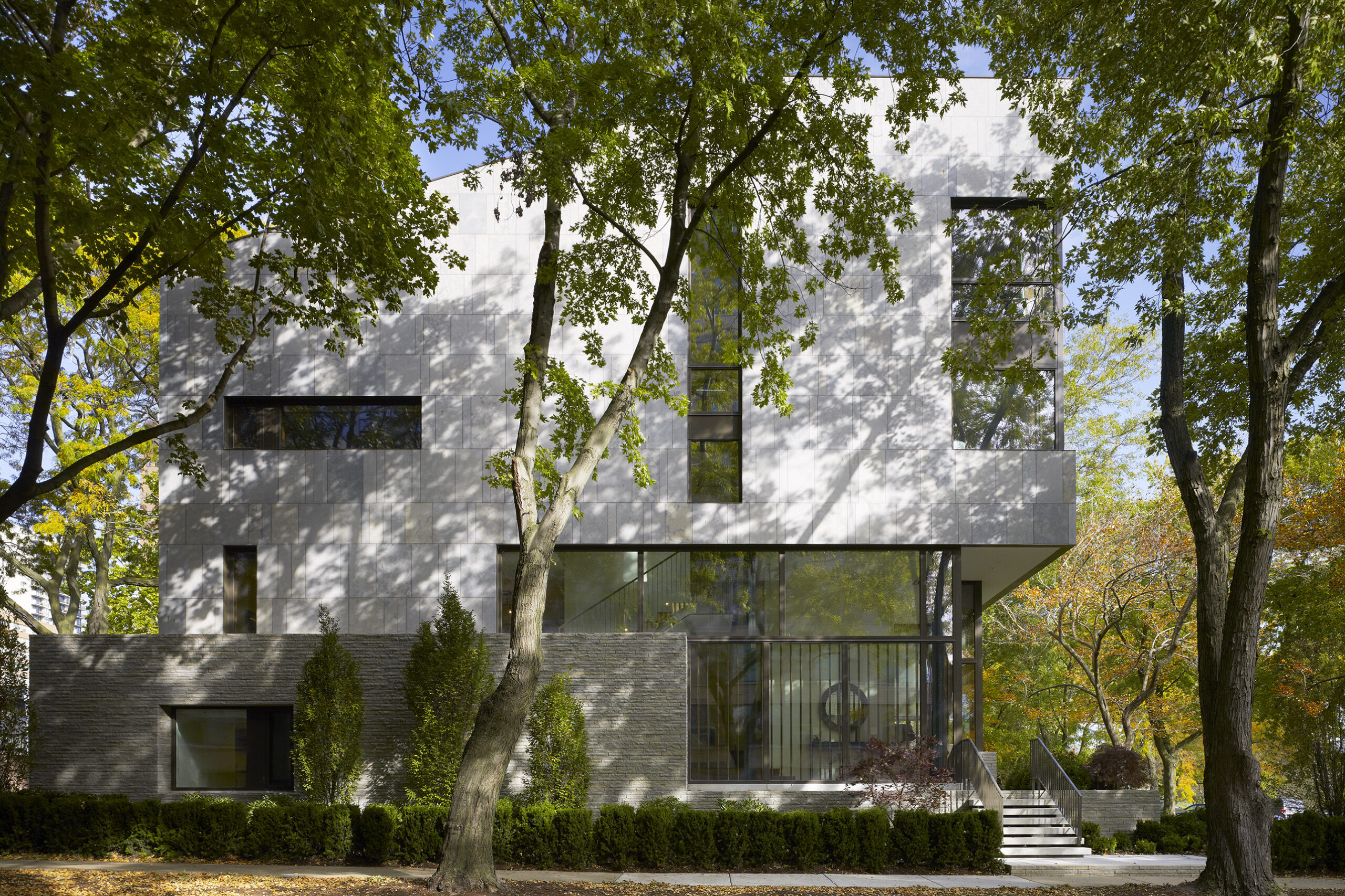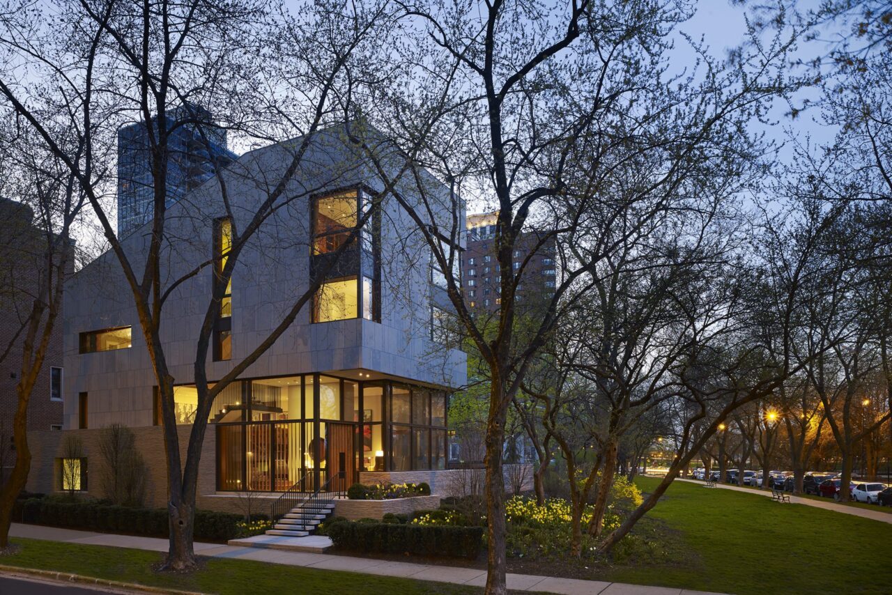 Overlooking a park with Lake Michigan to the east, Lake Shore Drive Residence sits on a prominent corner site, bounded to the south and west by residential buildings, and to the north by a wooded lot with mature trees.