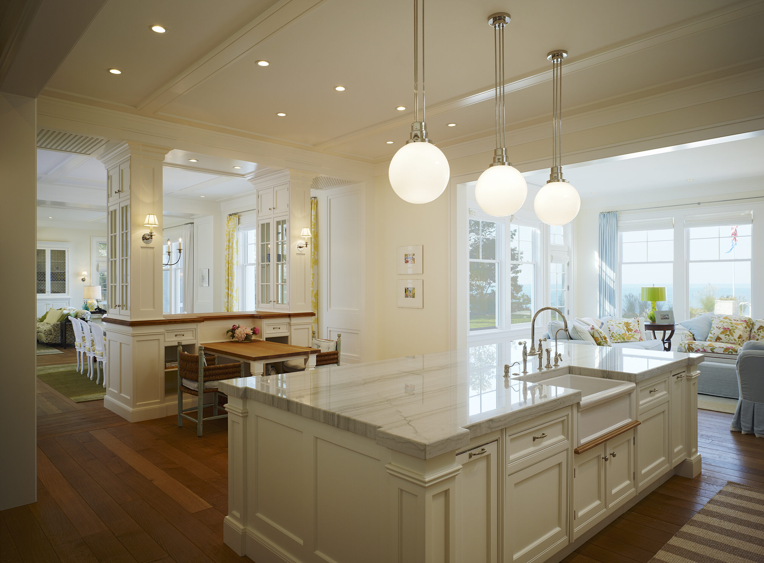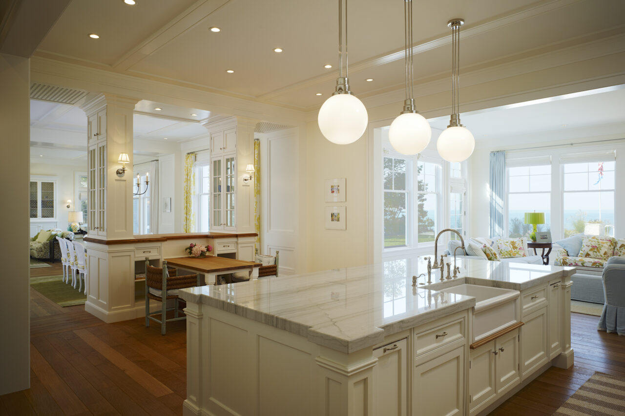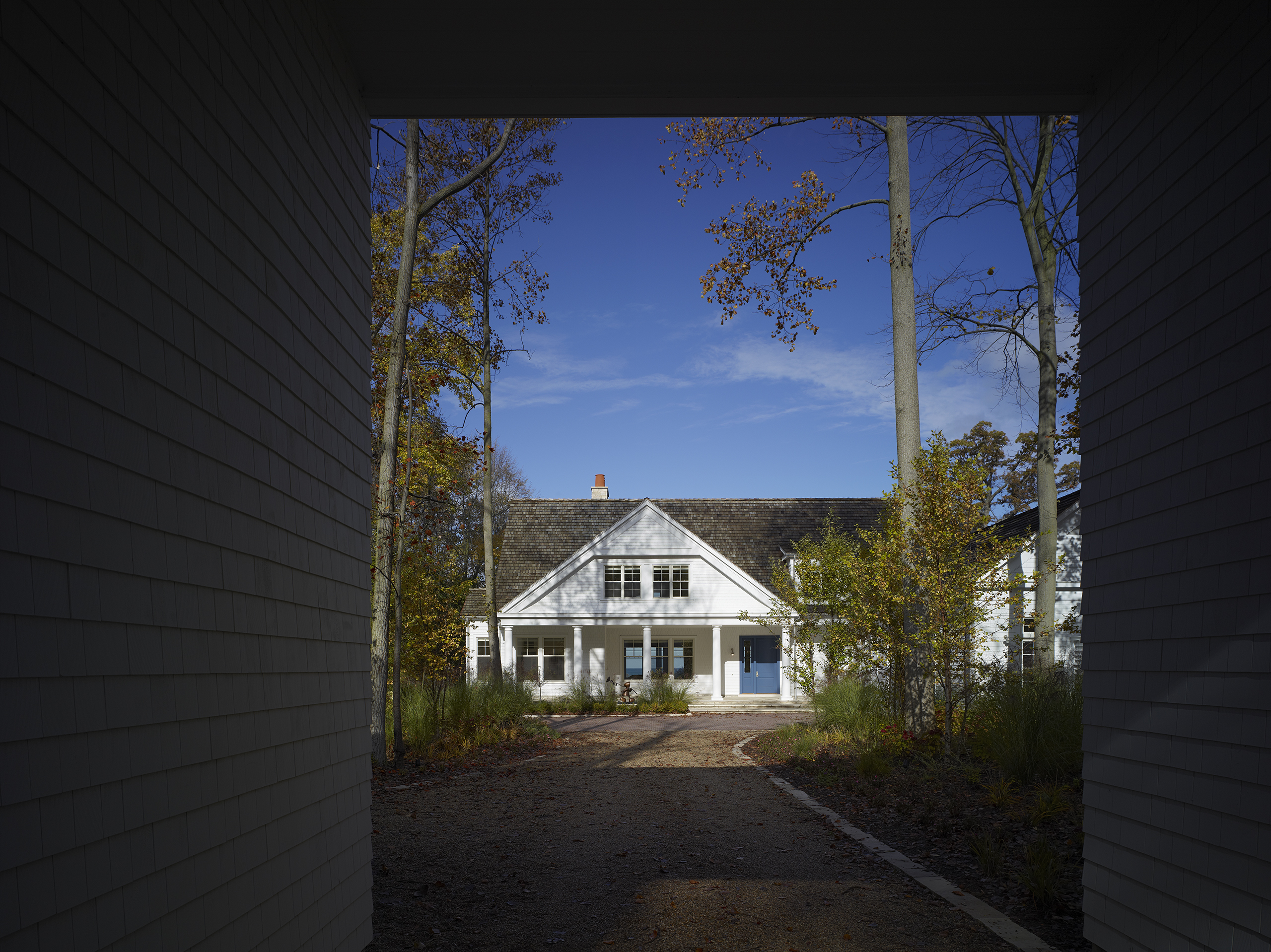 Designed for a Chicago family of six, this summer home on Lake Michigan blends a timeless aesthetic inspired by classic New England shore houses with an open public floor plan that accommodates a fluid, contemporary lifestyle.