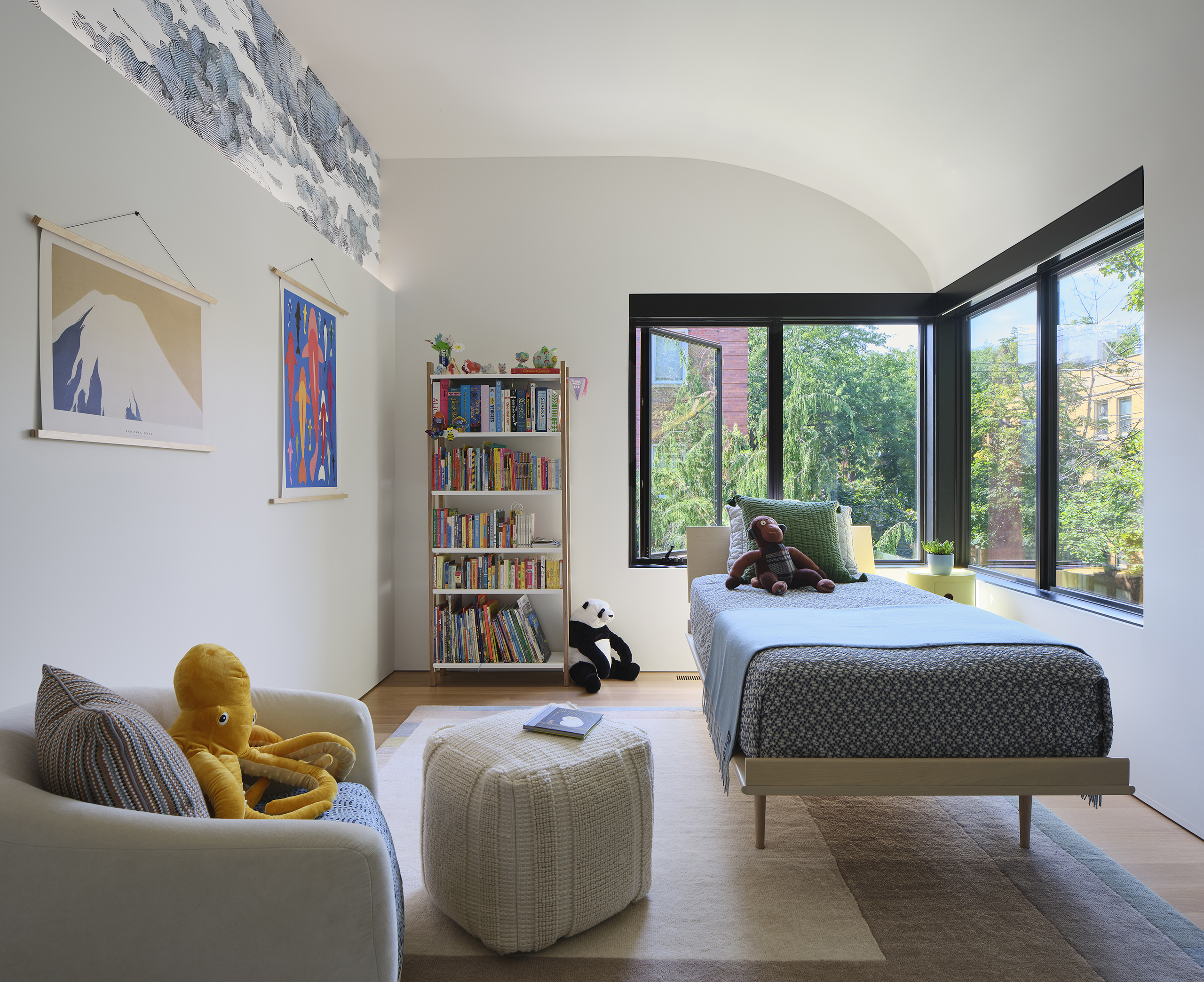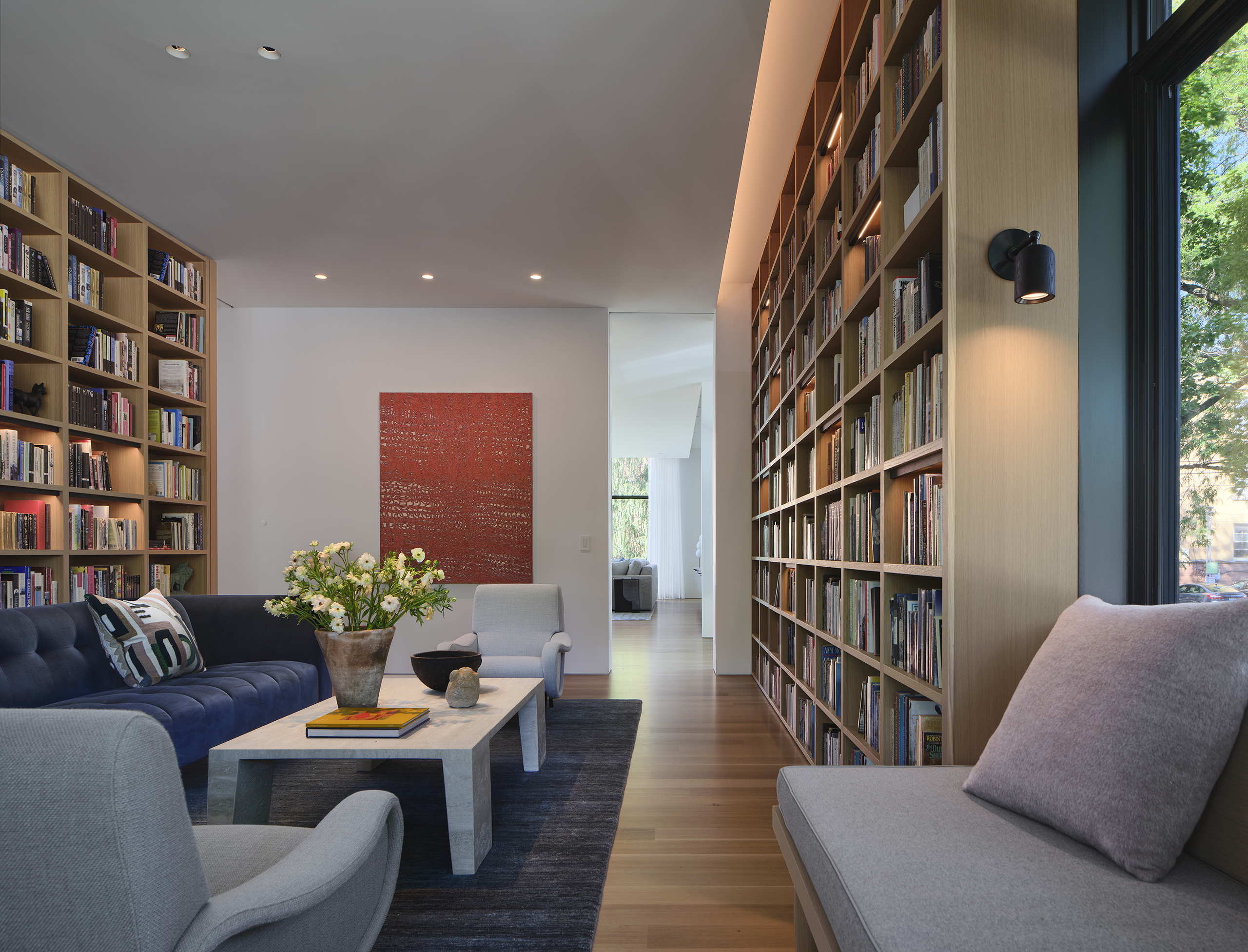 Balancing tradition and innovation, the interiors offer subtle architectural surprises that enrich daily life and well-being for a young family of four with a love of daylight, books, and nature.
