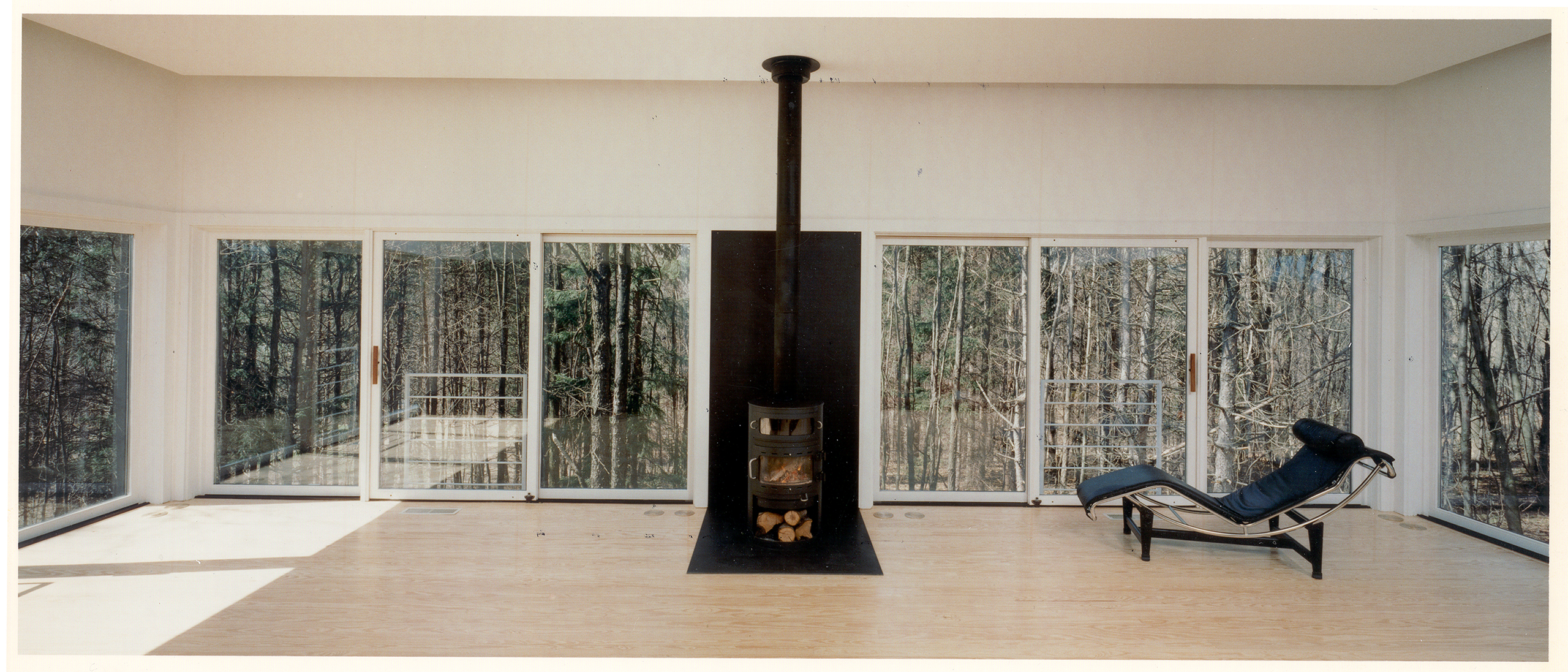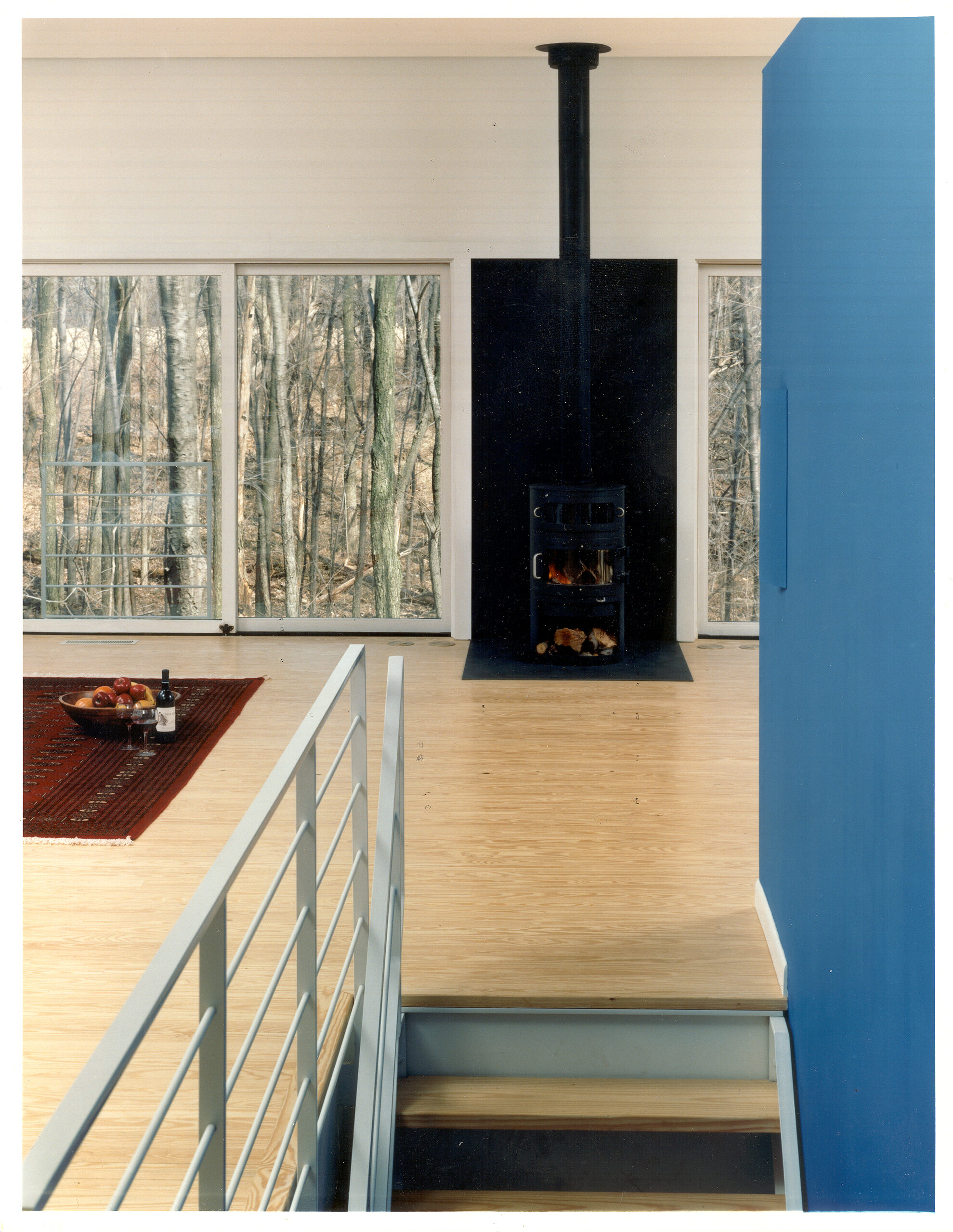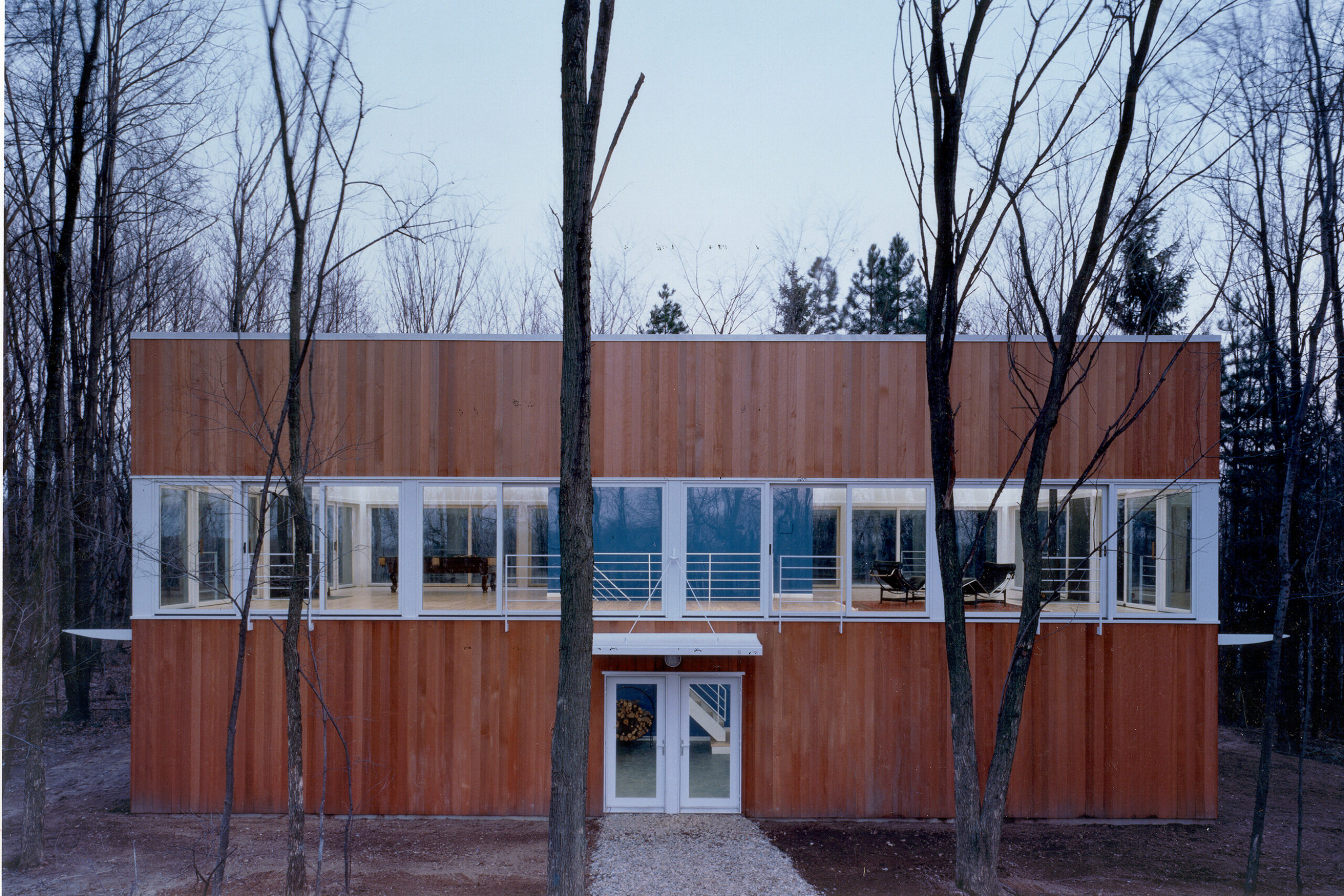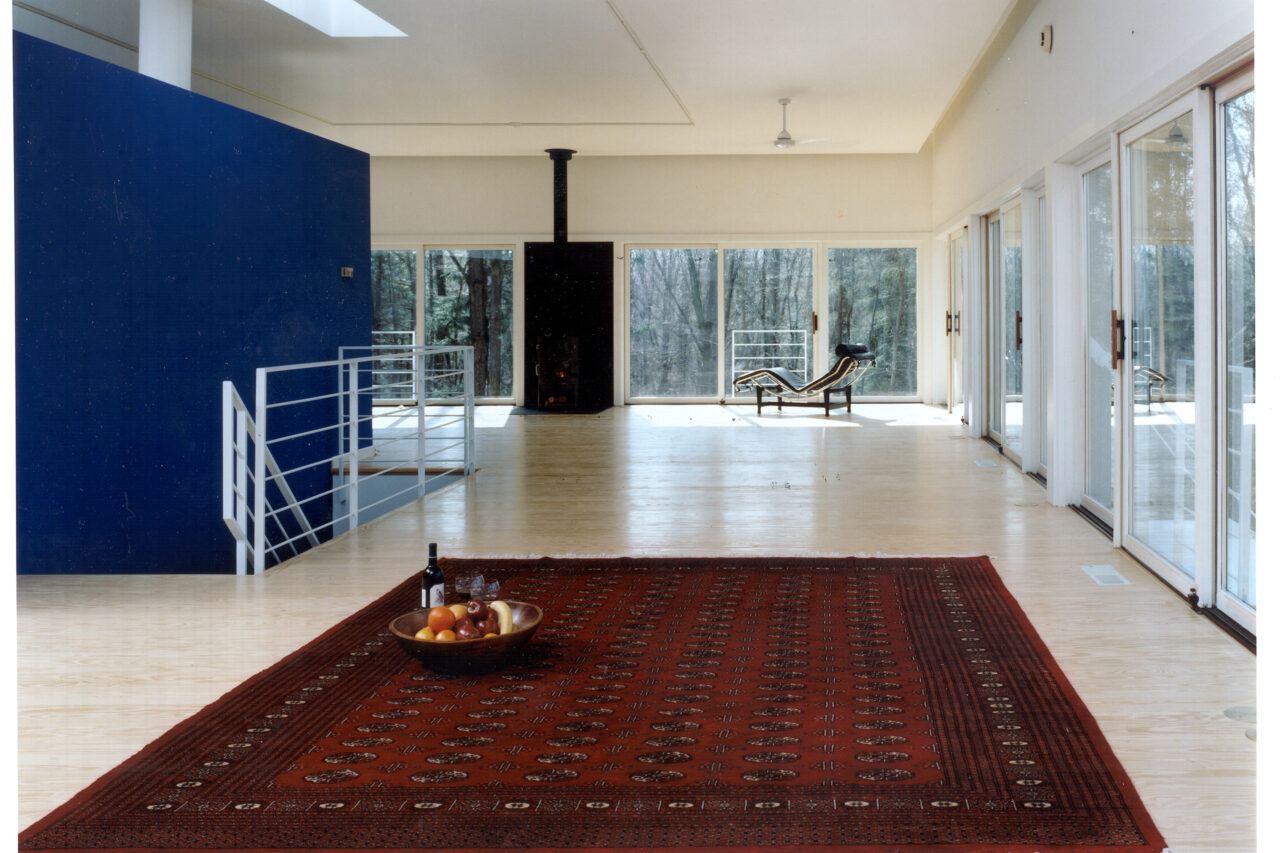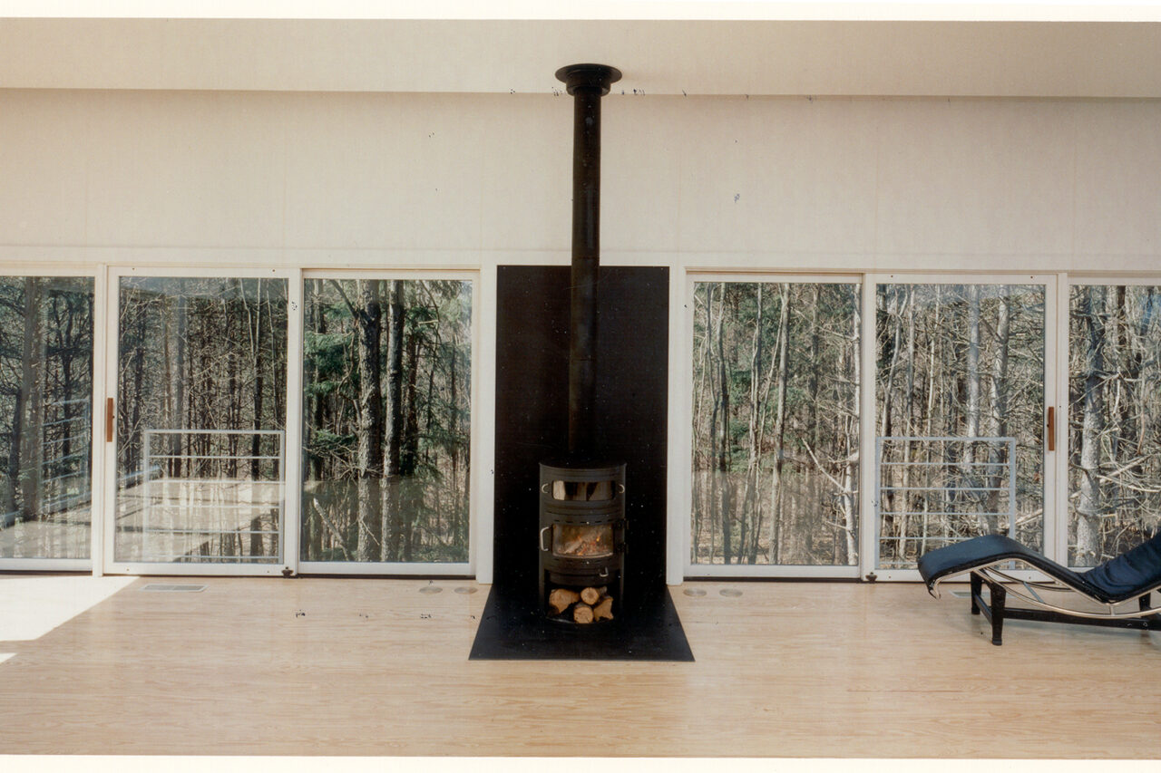 Sited on one of the building sites at Camp Madron, this straightforward design solution capitalizes on a unique site with panoramic views to varied landscapes. The living level of this vacation home is raised upon a podium of bedrooms, in the spirit of a “piano nobile”. The interior is marked by a central stair and brightly colored service core.