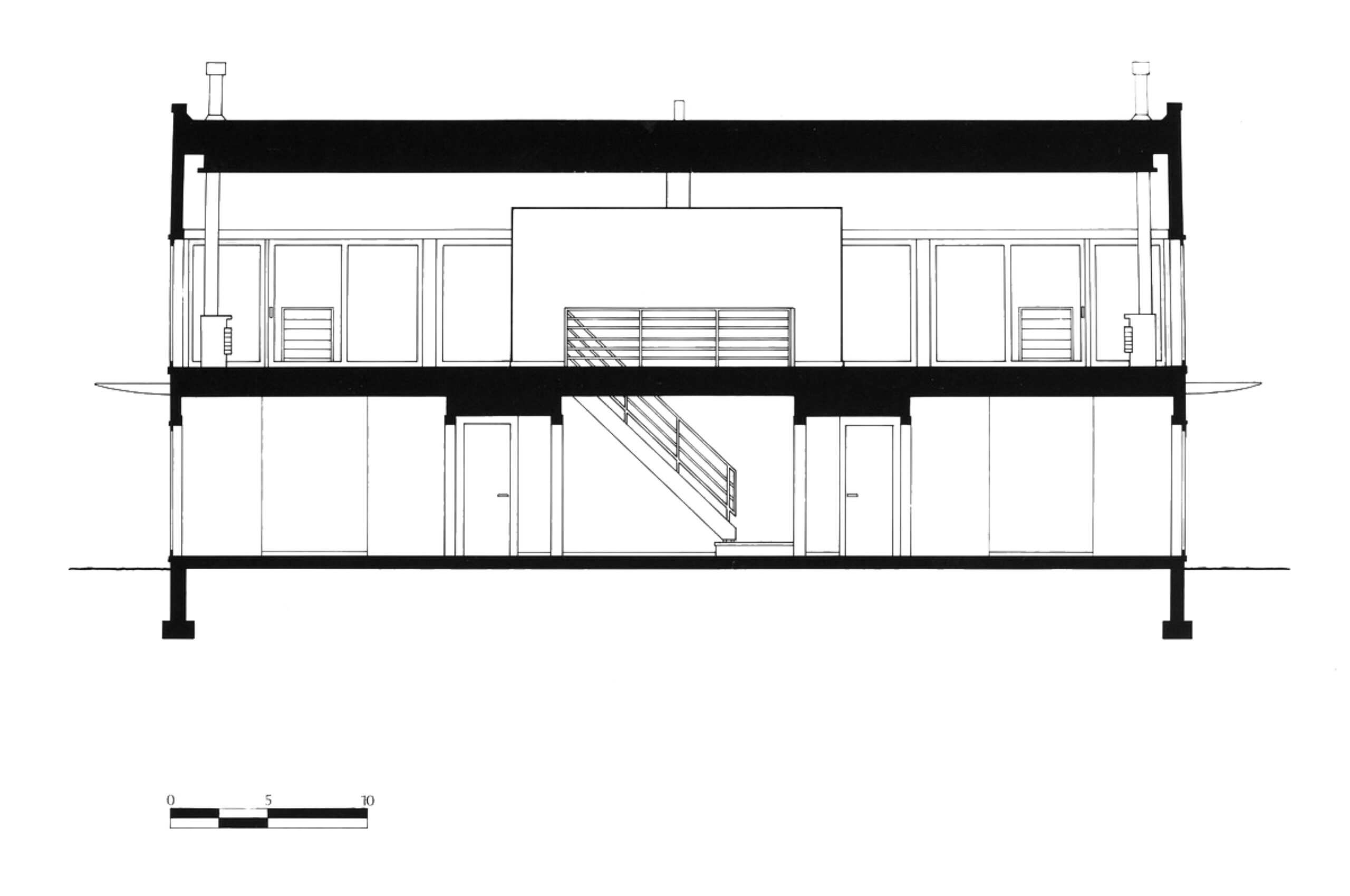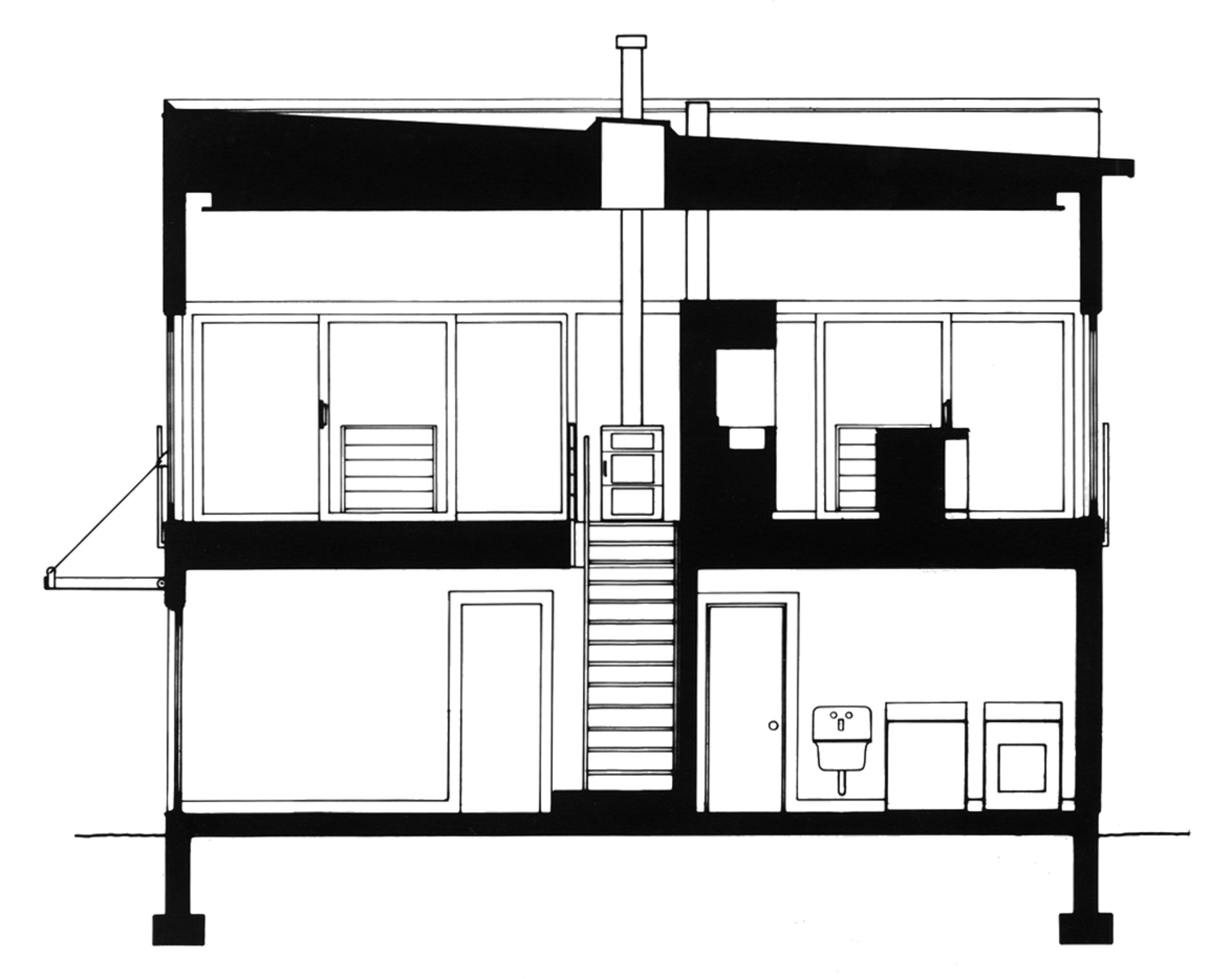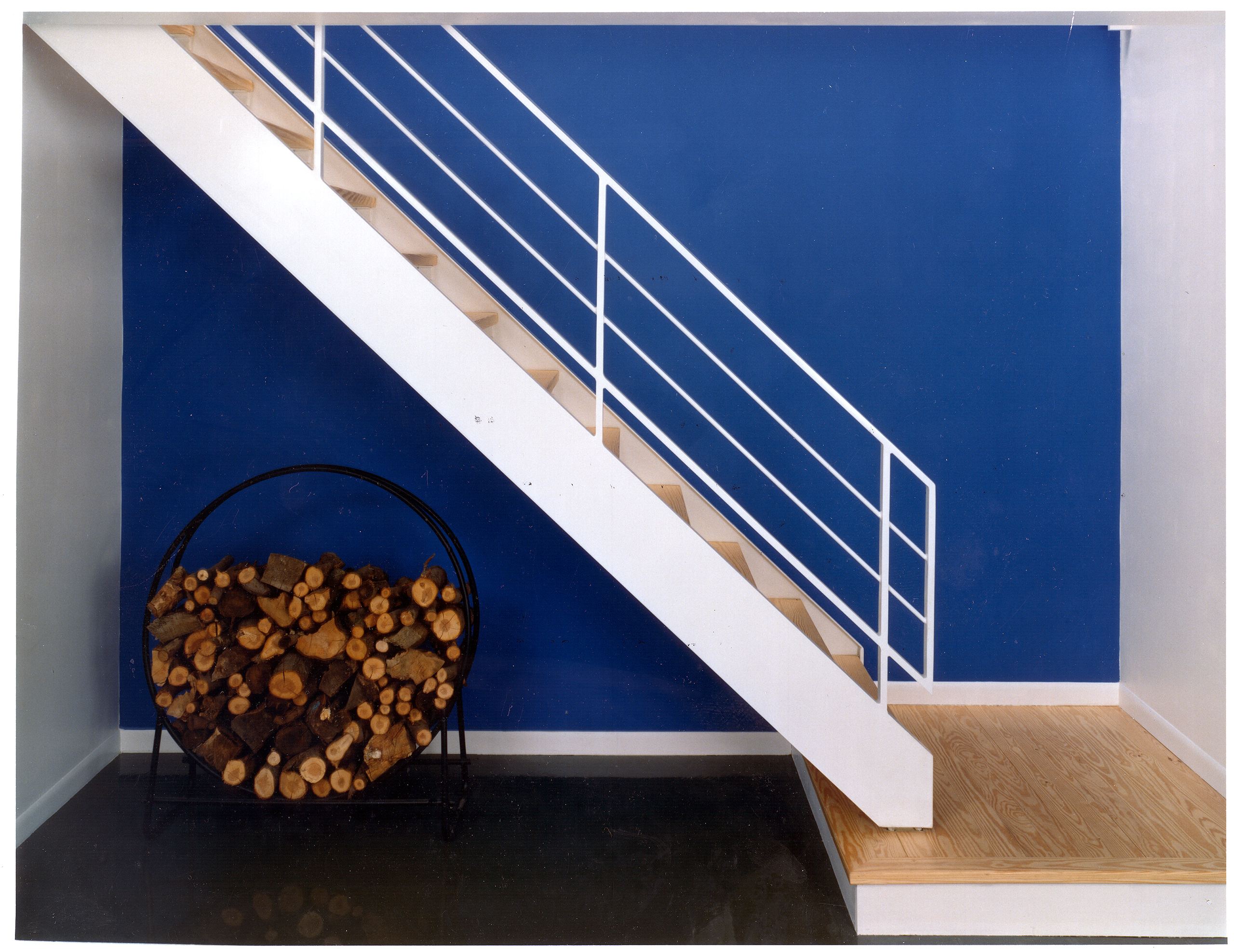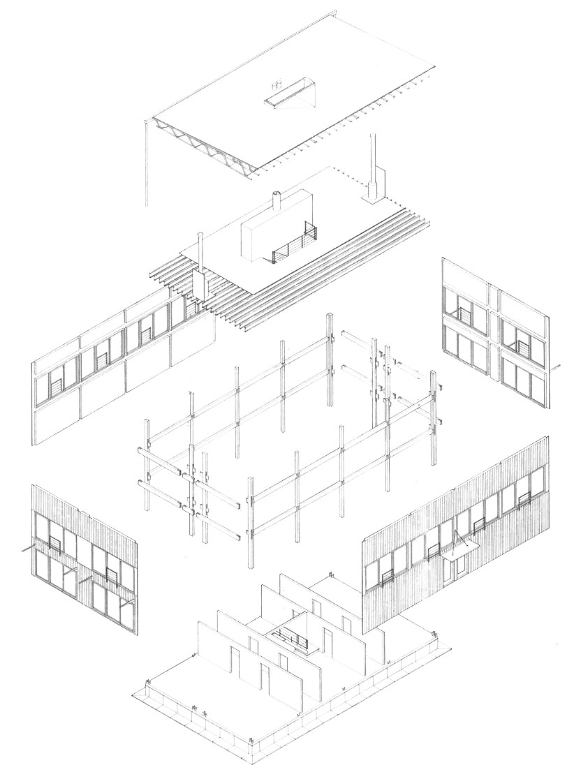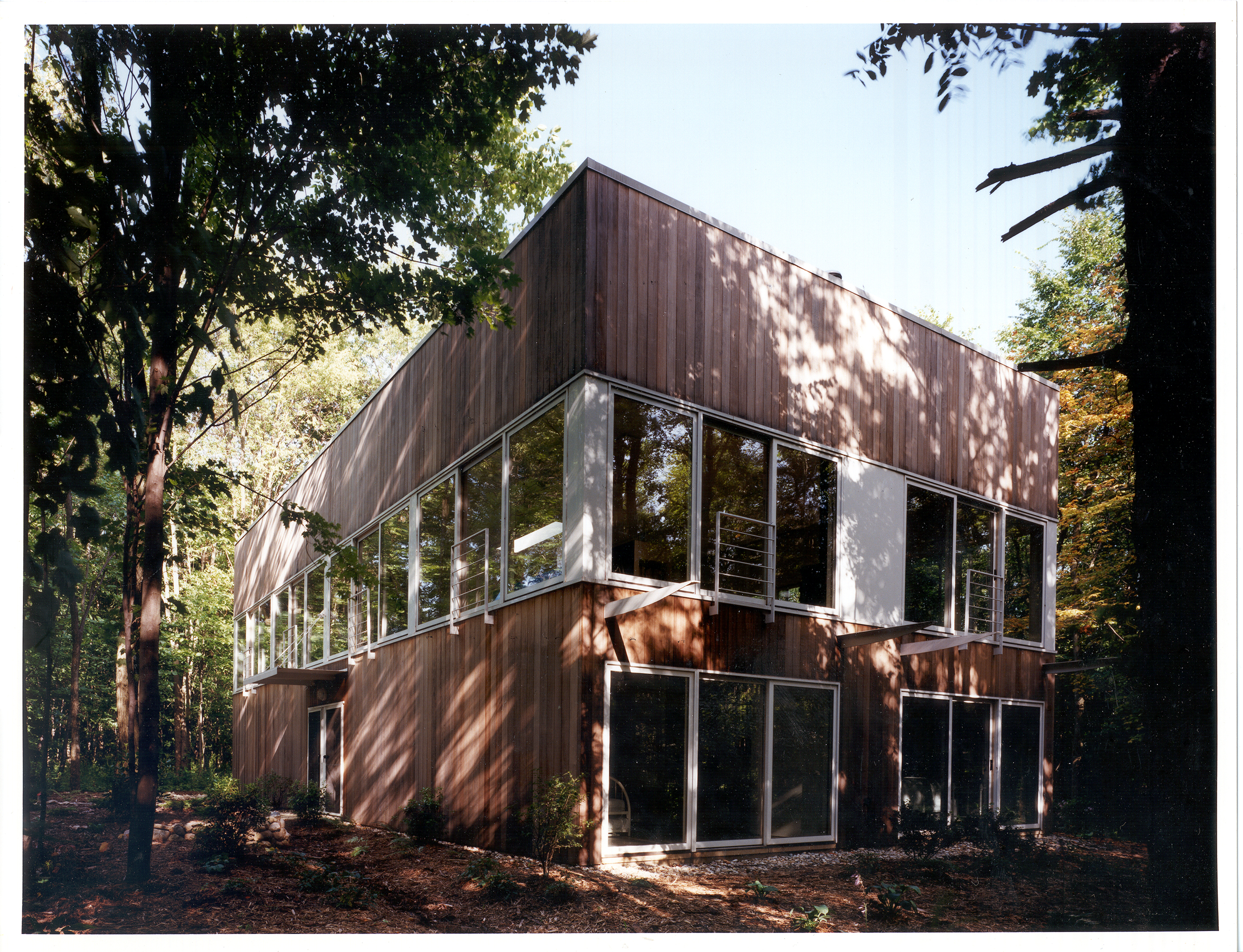 Sited on one of the building sites at Camp Madron, this straightforward design solution capitalizes on a unique site with panoramic views to varied landscapes. The living level of this vacation home is raised upon a podium of bedrooms, in the spirit of a “piano nobile”. The interior is marked by a central stair and brightly colored service core.
