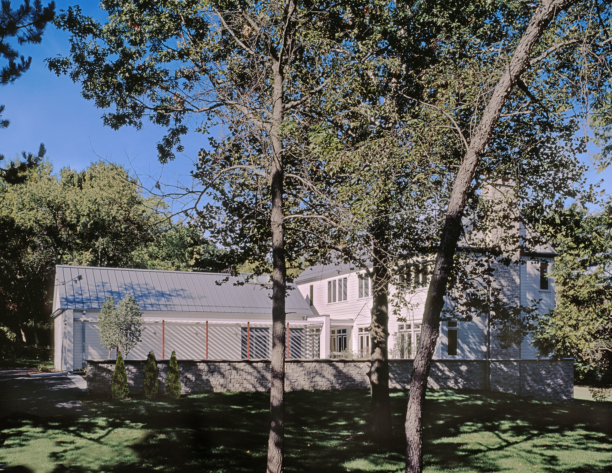 Located on a rolling site in the Highlands neighborhood of Madison Wisconsin, this 4 bedroom single family residence is meant to recall the simple understated farmhouse architecture of the area, updated with contemporary spatial relationships.