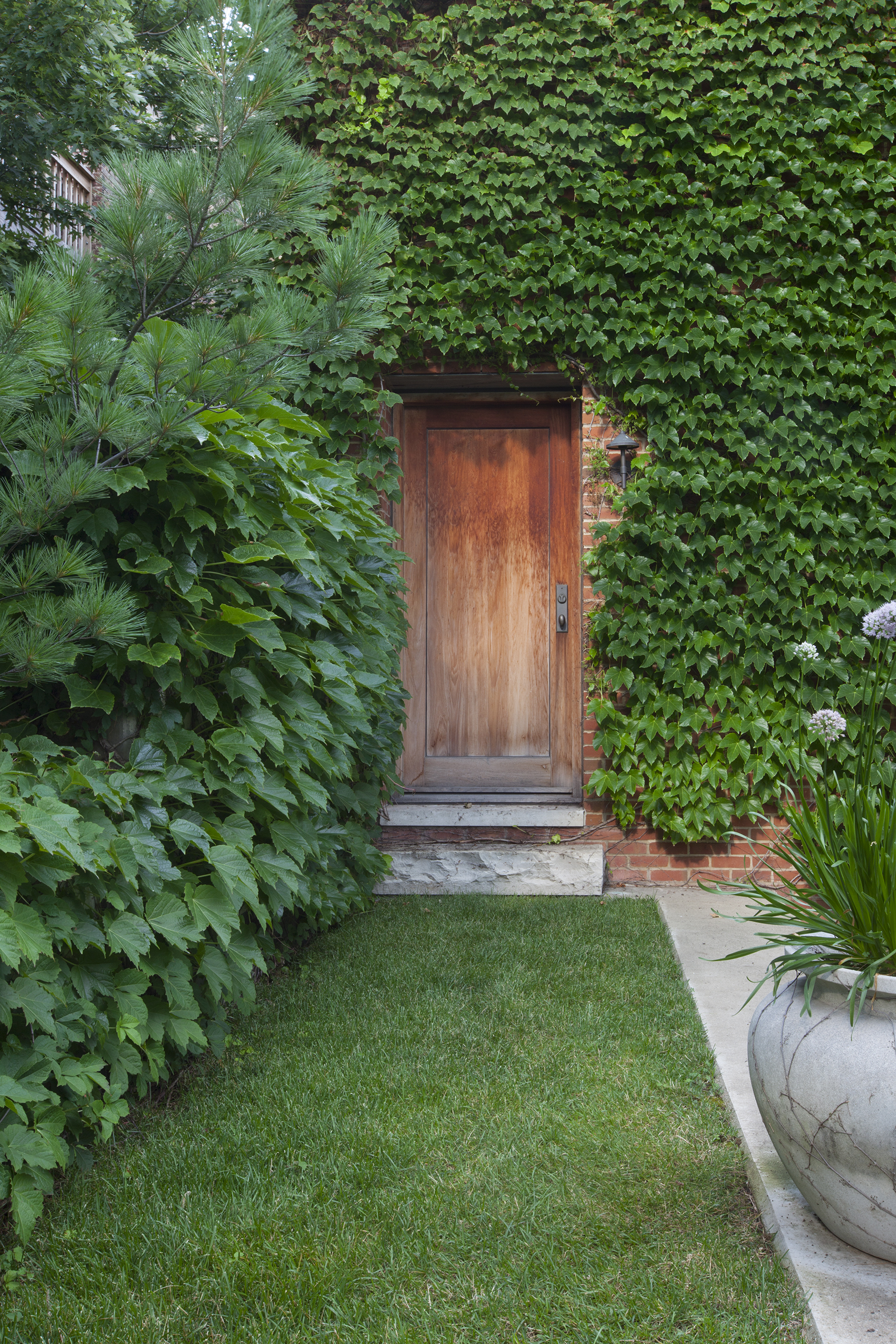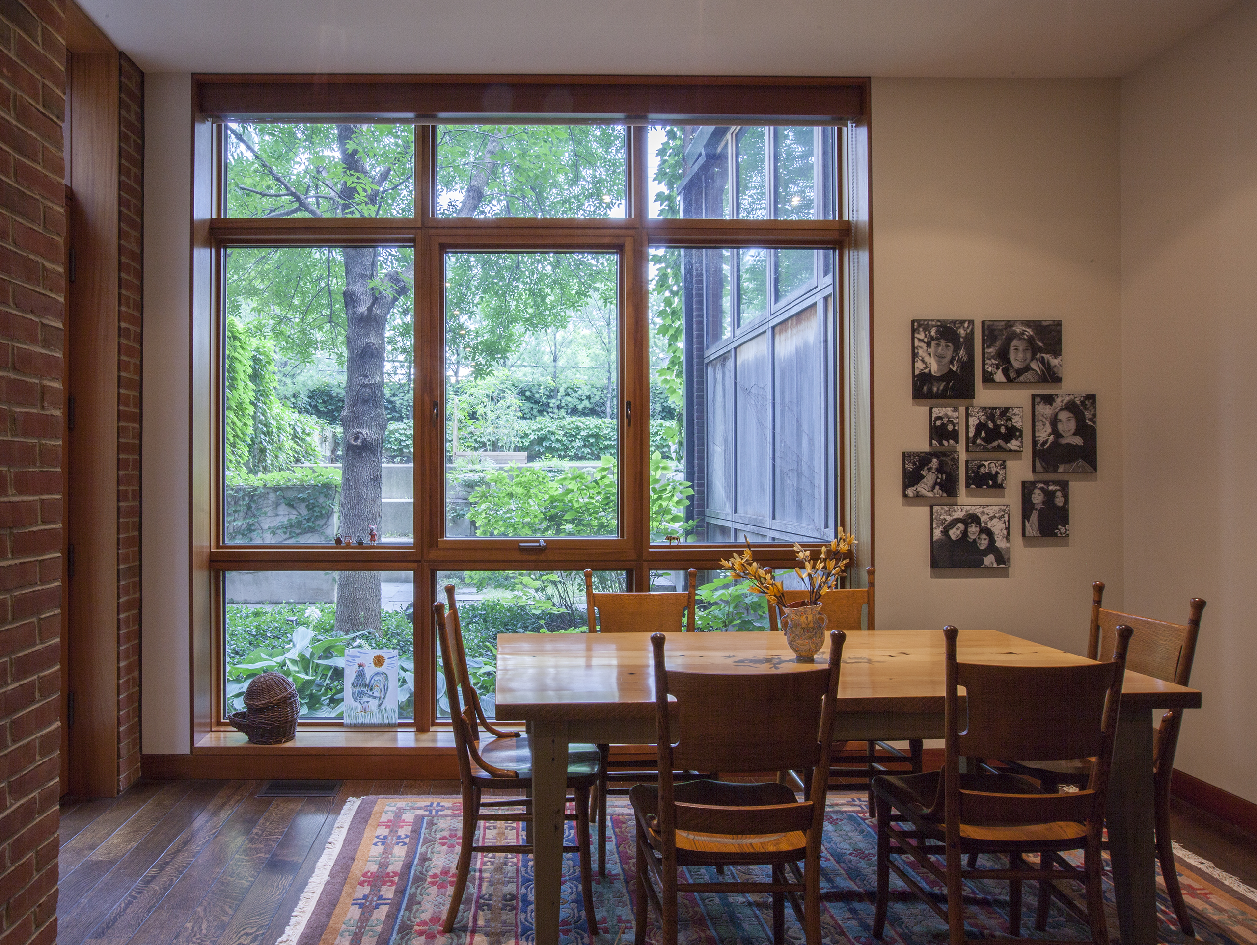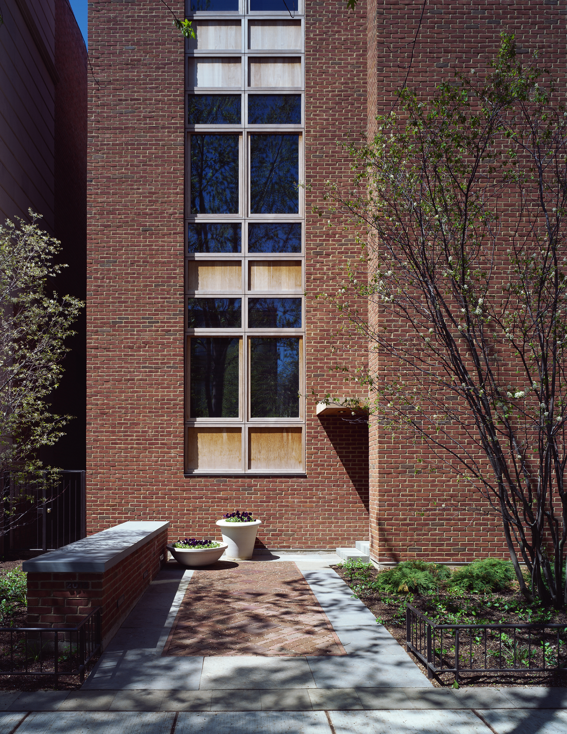 Two opposing U-shaped masonry walls enclose a new three-story residence in Chicago’s Lincoln Park neighborhood. In contrast to neighboring buildings, the rear and front entries are quietly introduced into the day lit slots between the nesting walls, leaving only sun-bleached teak windows to mark the facades.