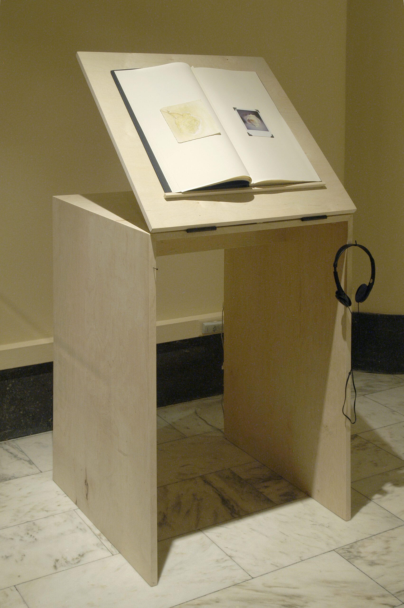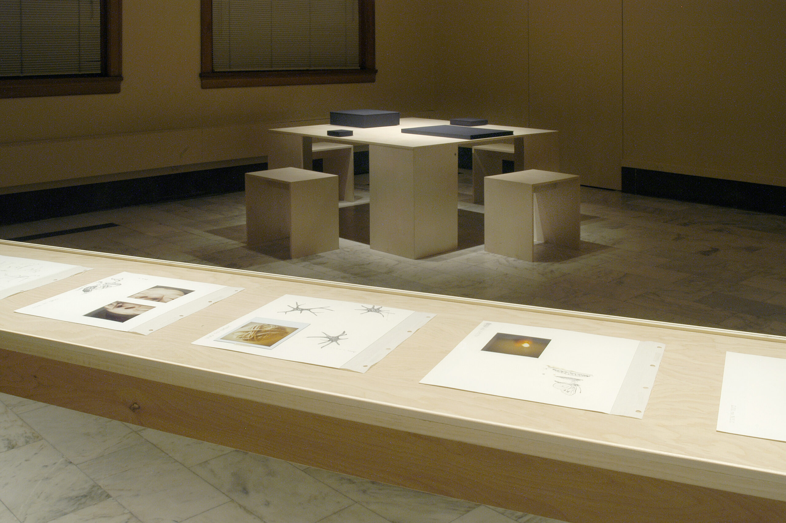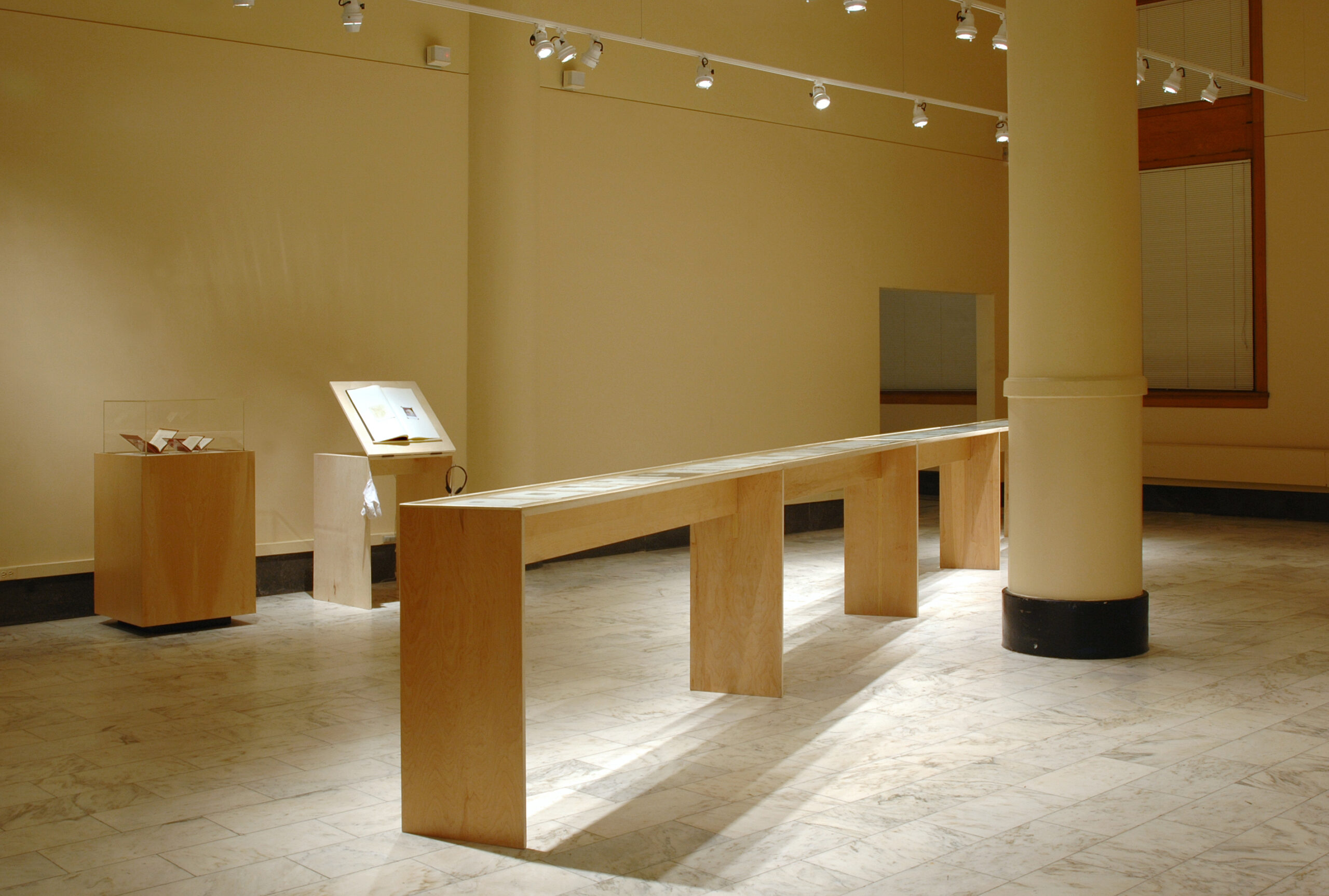 “Closed/Open” was an exhibition by Antonia Contro paring pieces from the Newberry Library collections along with pieces by the artist. Wheeler Kearns along with the artist designed the sequence of spaces, the half opened/folded partition, and all the Baltic birch plywood cases/furniture elements.