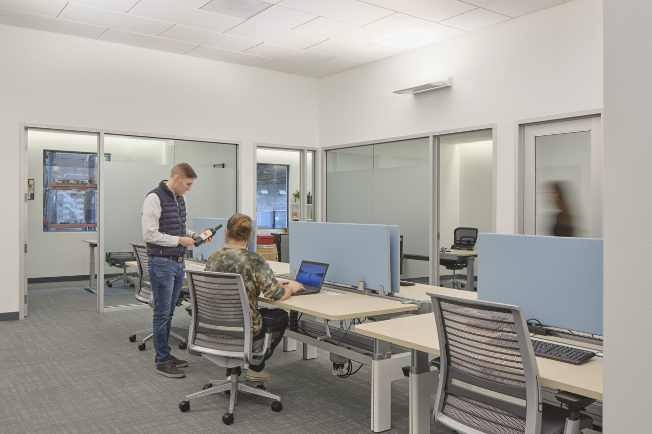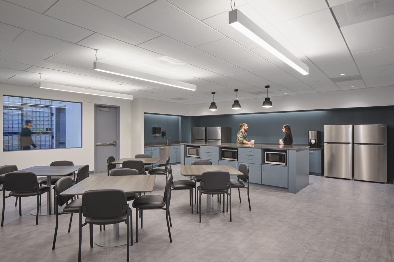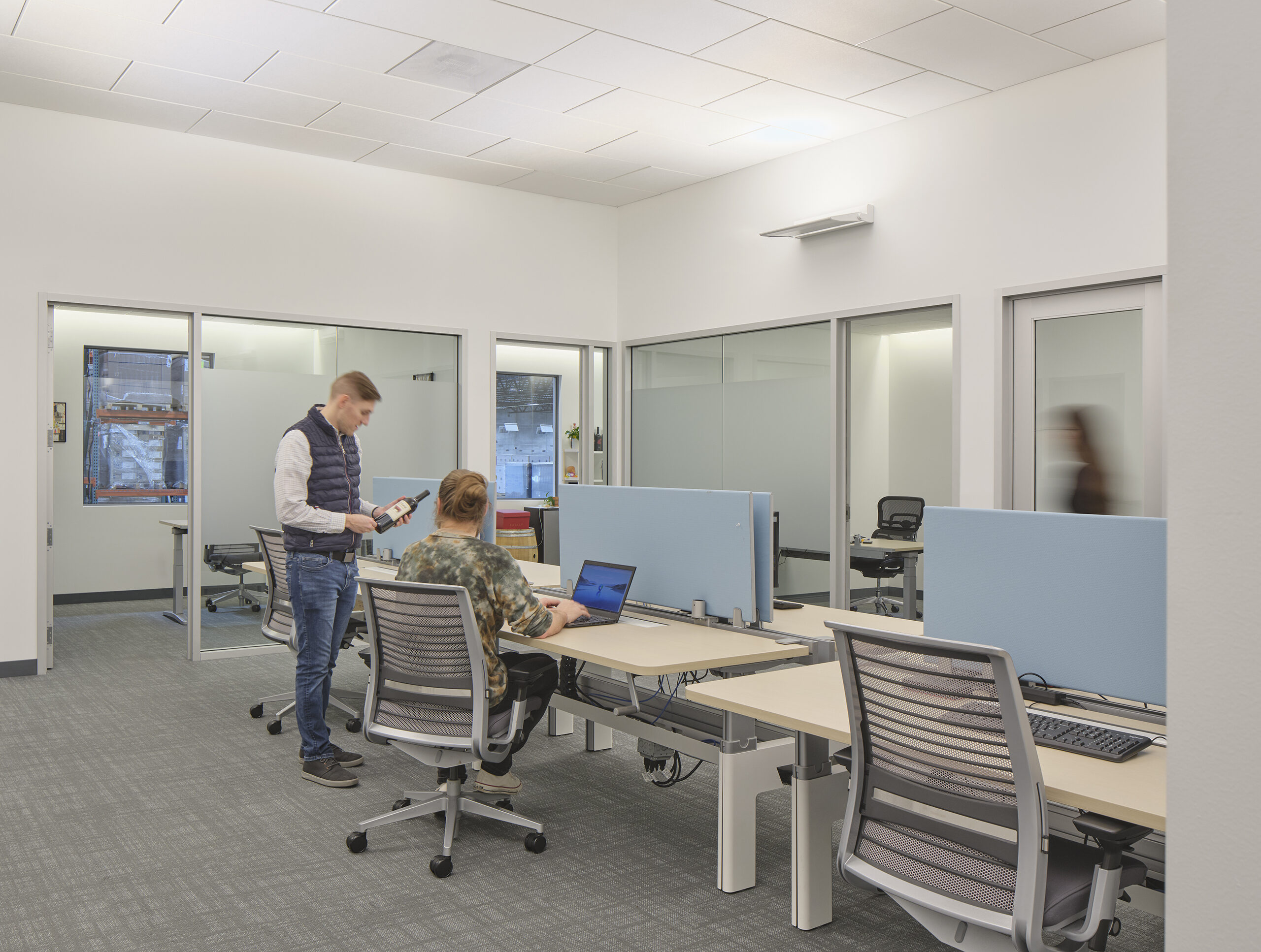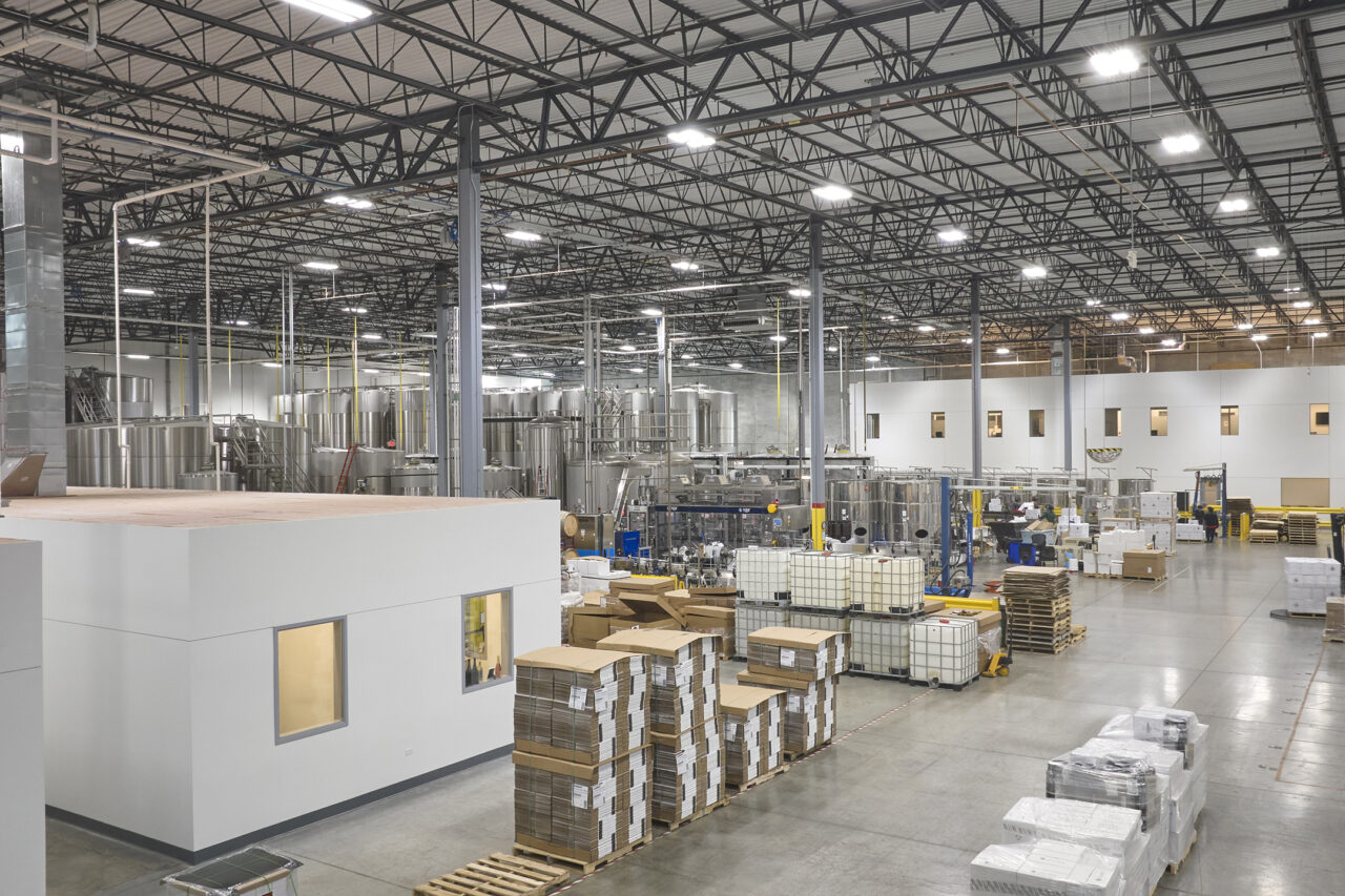 Initially reliant on six overcrowded temporary mobile trailers for essential functions: breakrooms, bathrooms, offices, and laboratories, the fast-growing company needed a permanent solution within the factory’s footprint. The project integrates new, multifunctional spaces that enhance flexibility, accessibility, and workflow within the facility, akin to placing a “ship in a bottle.”