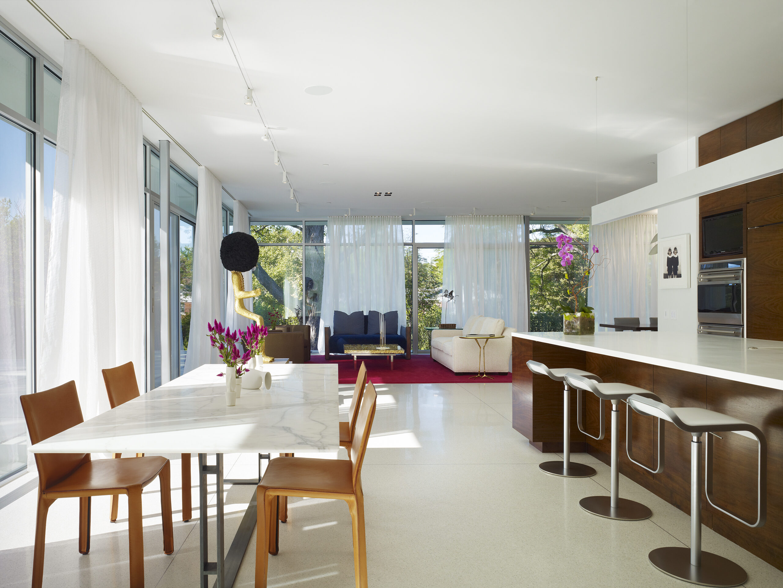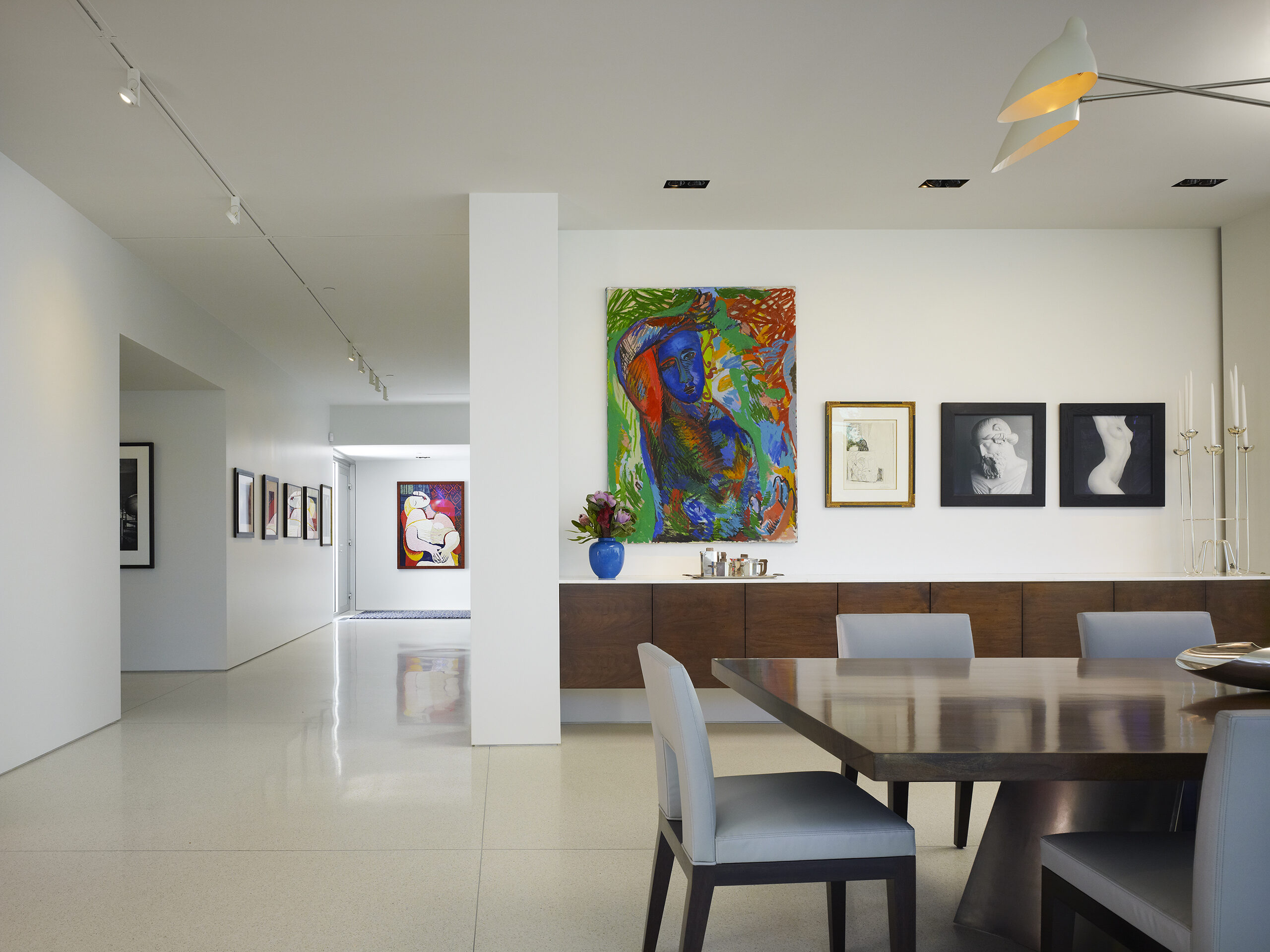 Designed for an art collector and grandmother of many, the residence is a container for family gatherings and living amidst artwork.