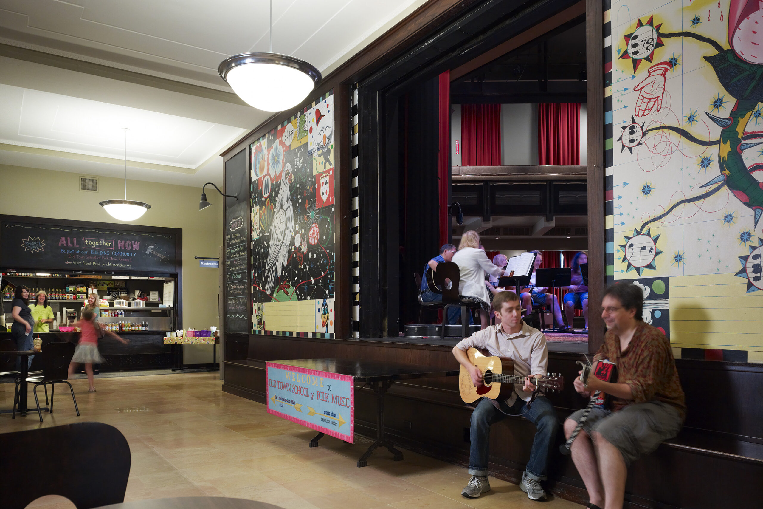 Old Town School adaptively reused a former 1929 Chicago library designed by Pierre Blouke into a 43,000sf facility that includes a 425-seat performance hall, a retail shop, a box office, cafe, a gallery, and numerous classrooms.