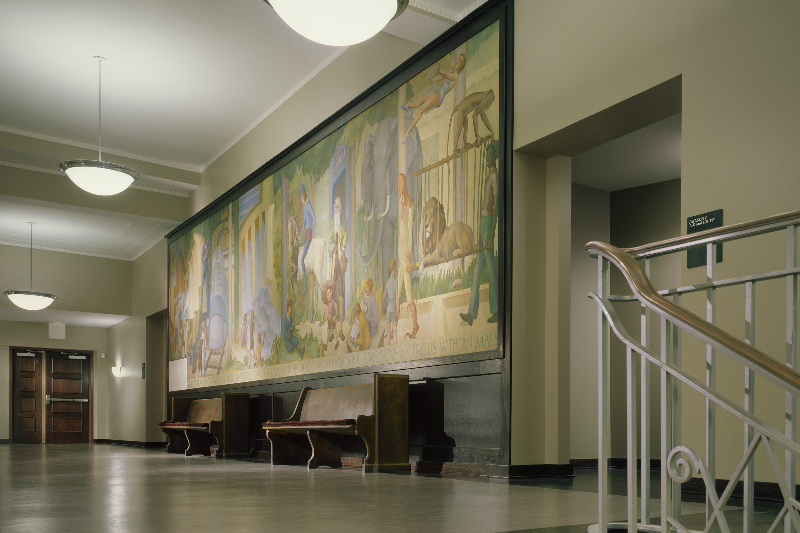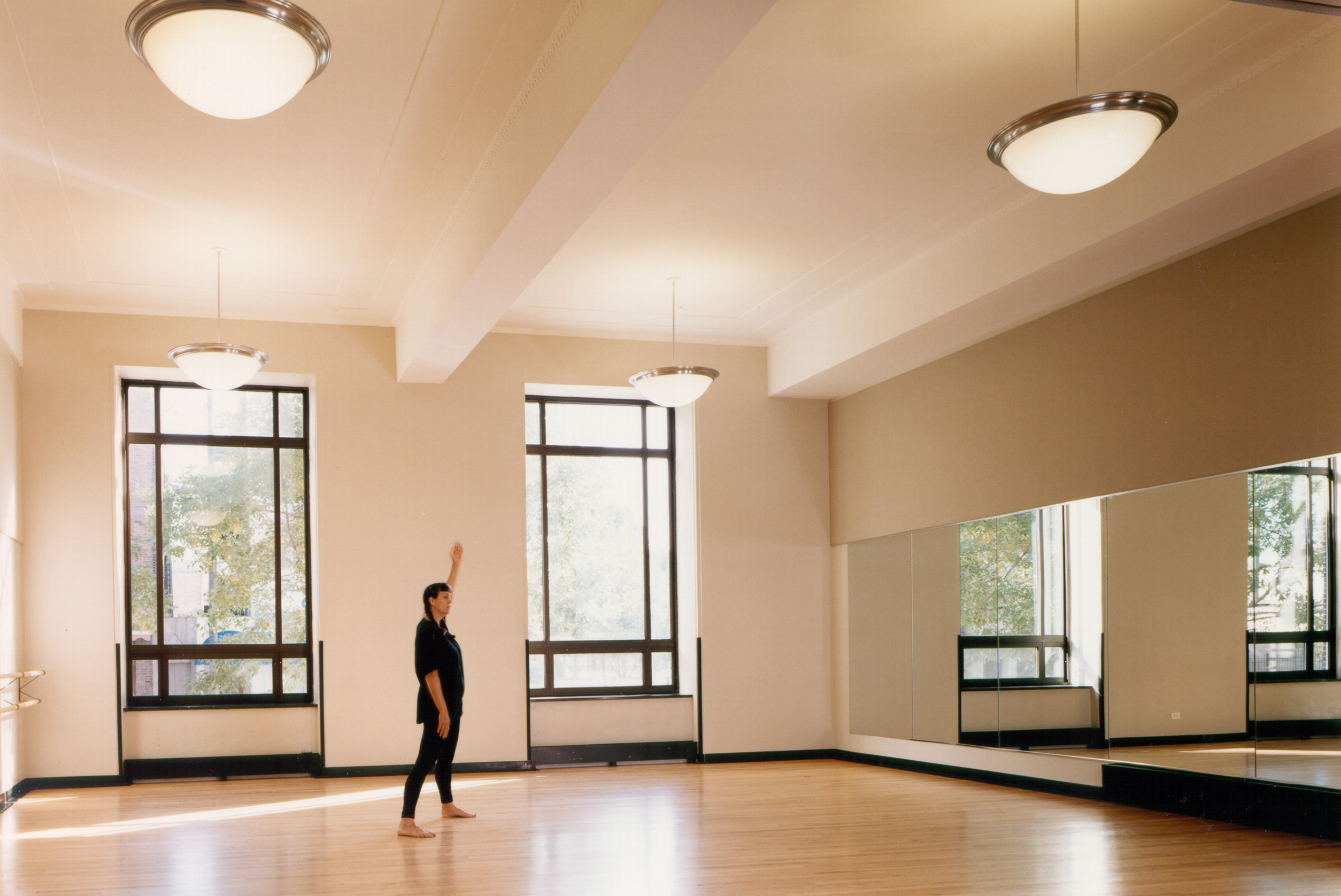 Twenty-six teaching spaces are located throughout the facility. The smallest spaces, located under the perimeter of the performance hall, are a group of 10 private teaching studios. Each studio is daylit by a restored areaway window and is isolated from neighboring studios with redundant walls and ceilings. Three heavily fortified classrooms are located on the lower level and are designed for amplified and percussive instruments. The rooms are each walled with combination masonry and gypsum board partitions and are provided with acoustically absorptive bass traps.