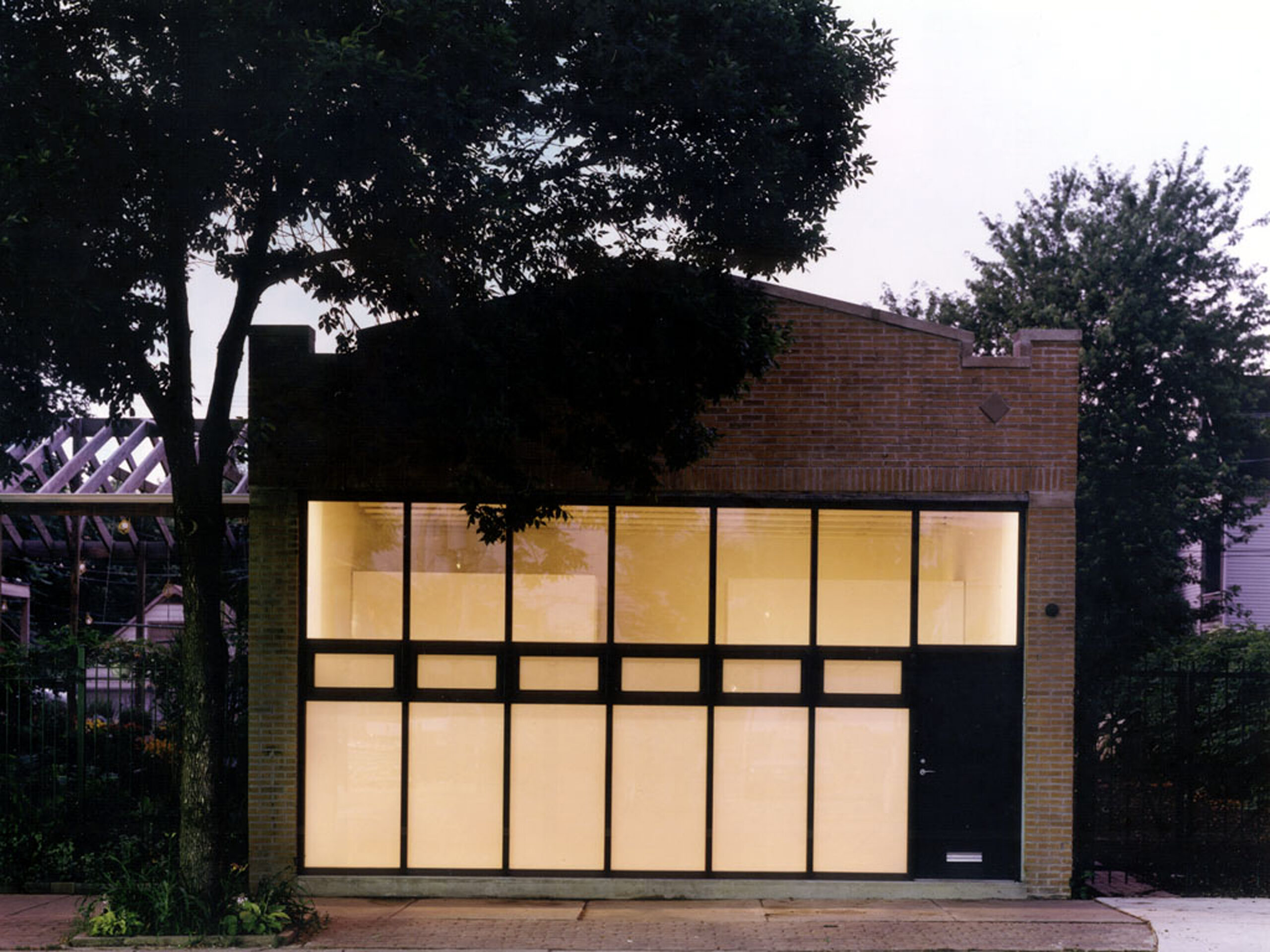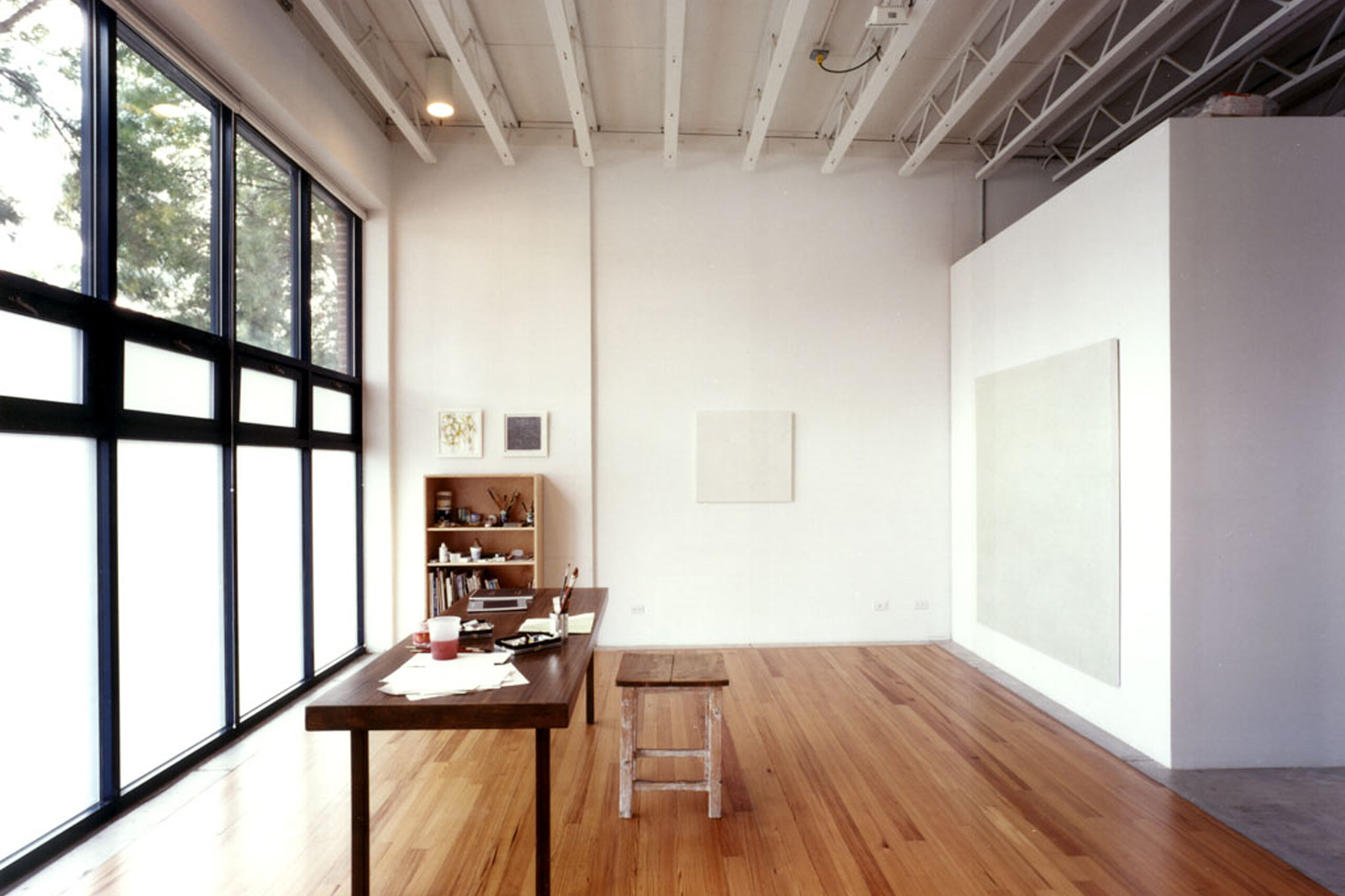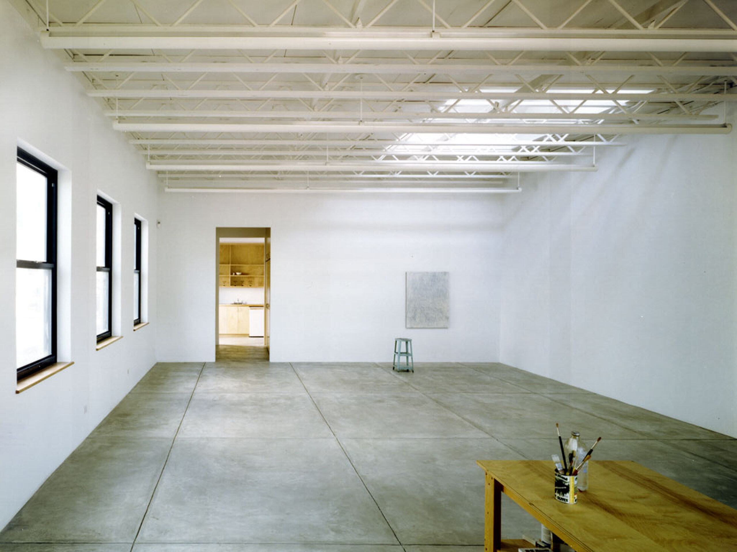 Located in Chicago’s Roscoe Village neighborhood, this studio was transformed from a former single story commercial building. The single story brick structure was gutted and outfitted with a new roof structure. The interior is restrained and simple and in many ways resonates with the artwork created within.