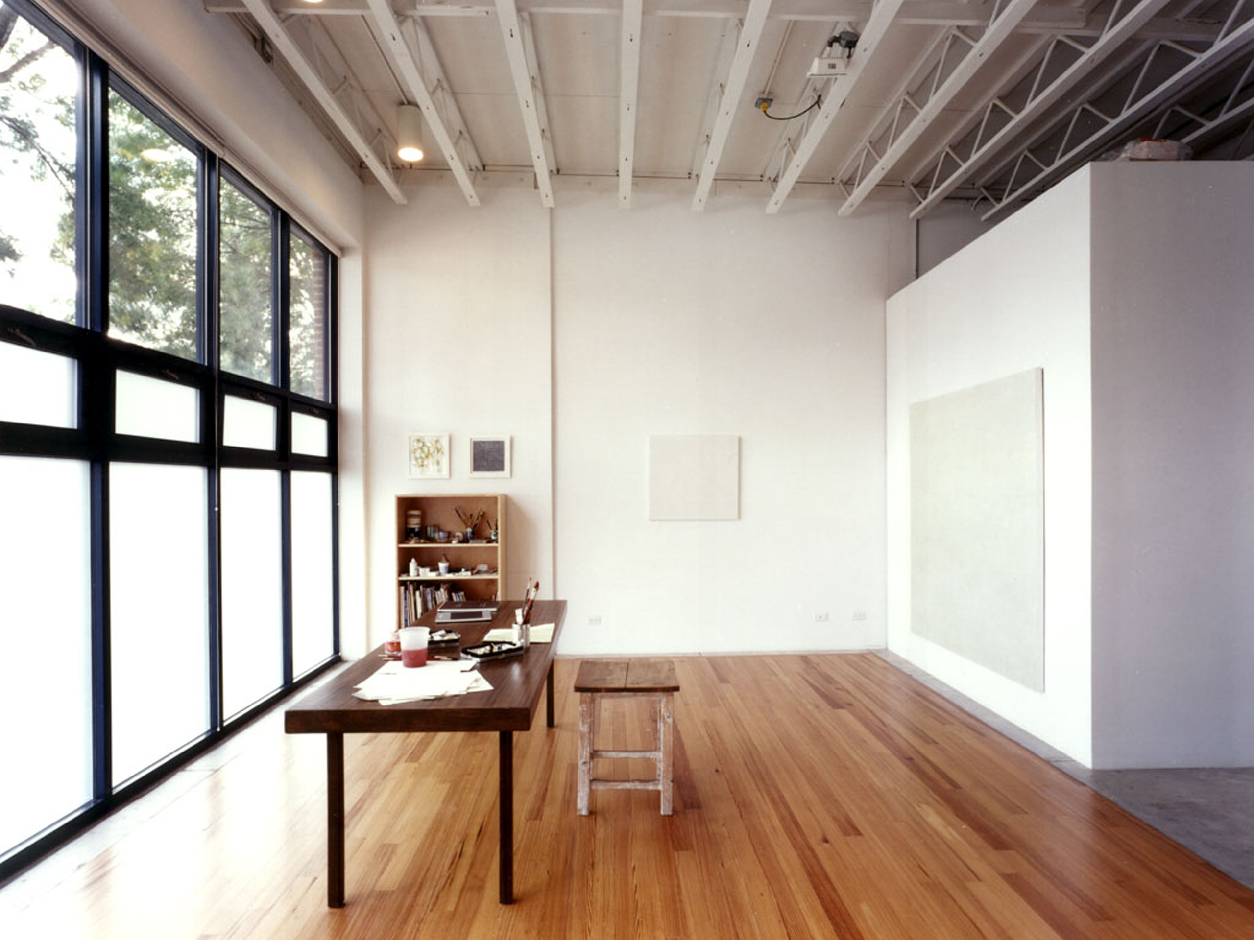 Located in Chicago’s Roscoe Village neighborhood, this studio was transformed from a former single story commercial building. The single story brick structure was gutted and outfitted with a new roof structure. The interior is restrained and simple and in many ways resonates with the artwork created within.