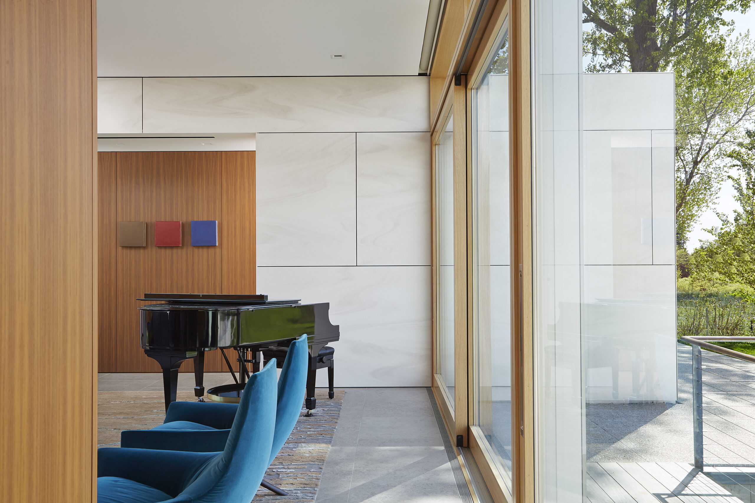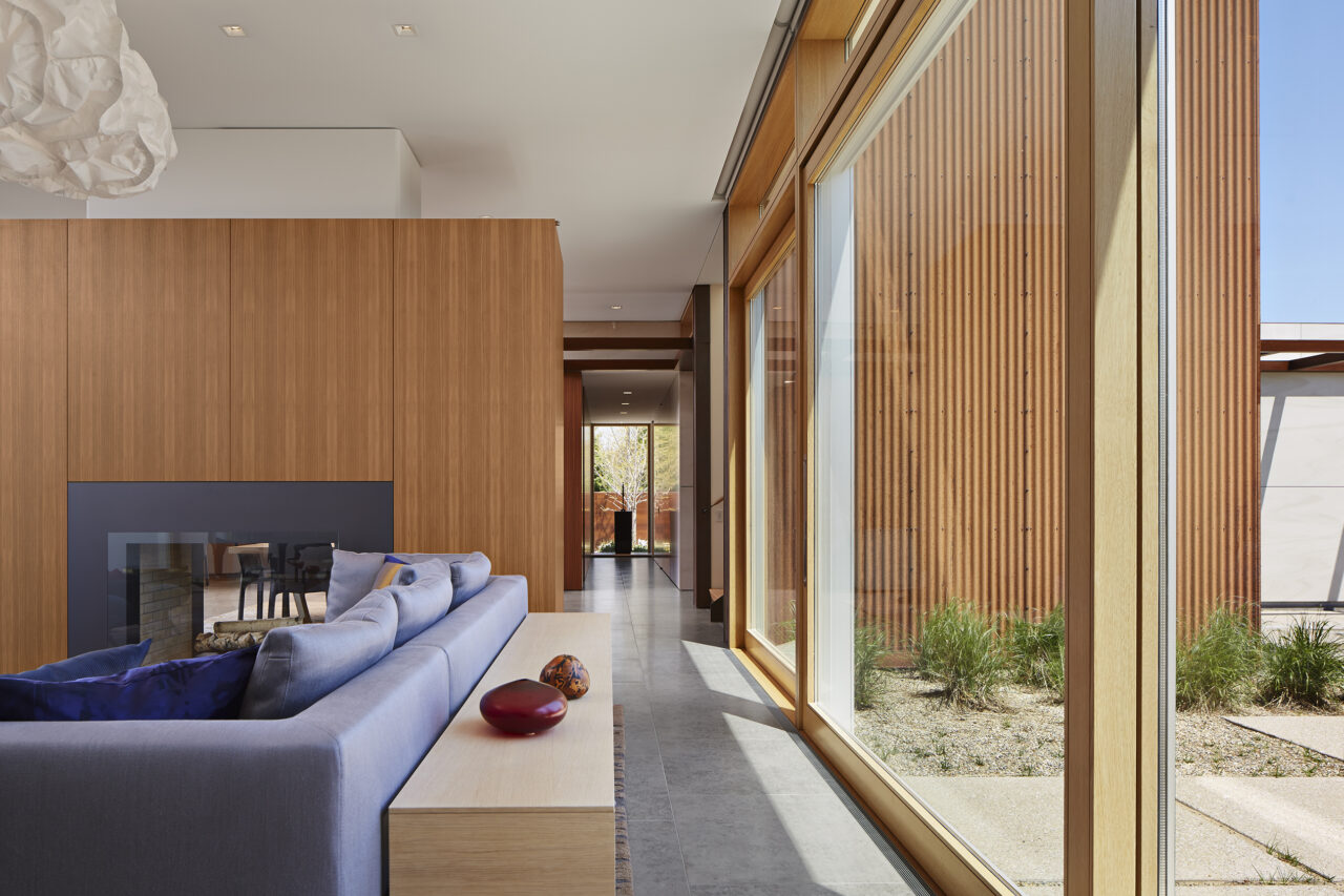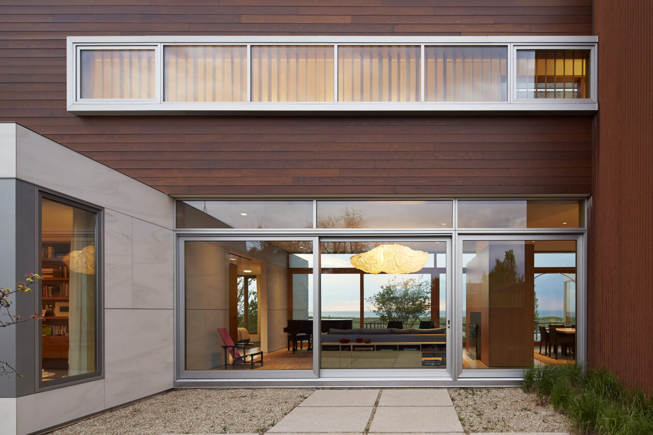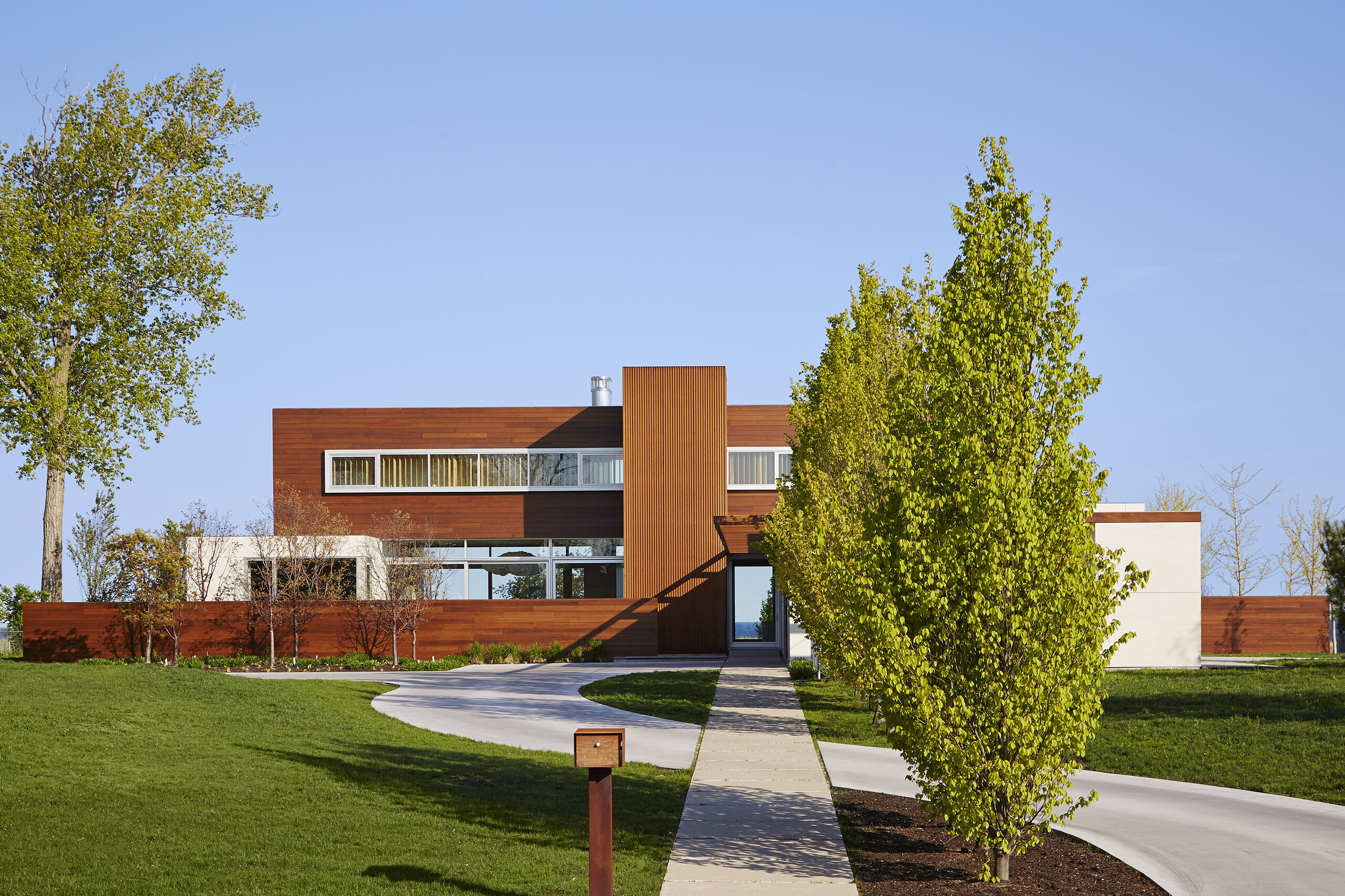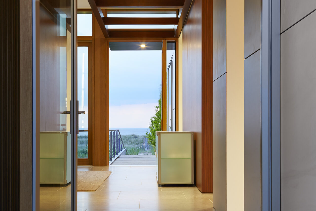 The design fosters a strong connection to the dune landscape, creating a visual continuity that allows residents and guests to experience the expansive lake views from the moment of arrival.