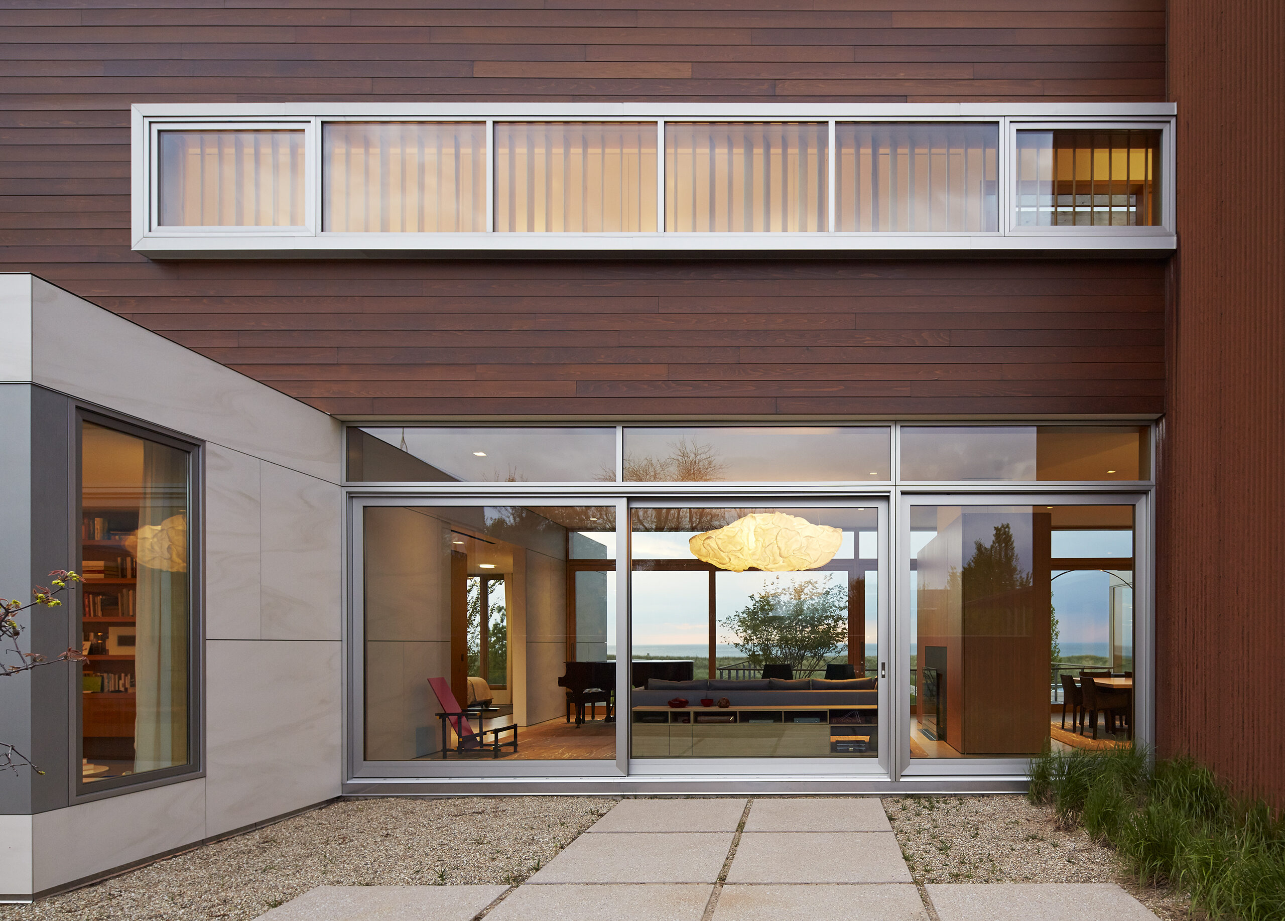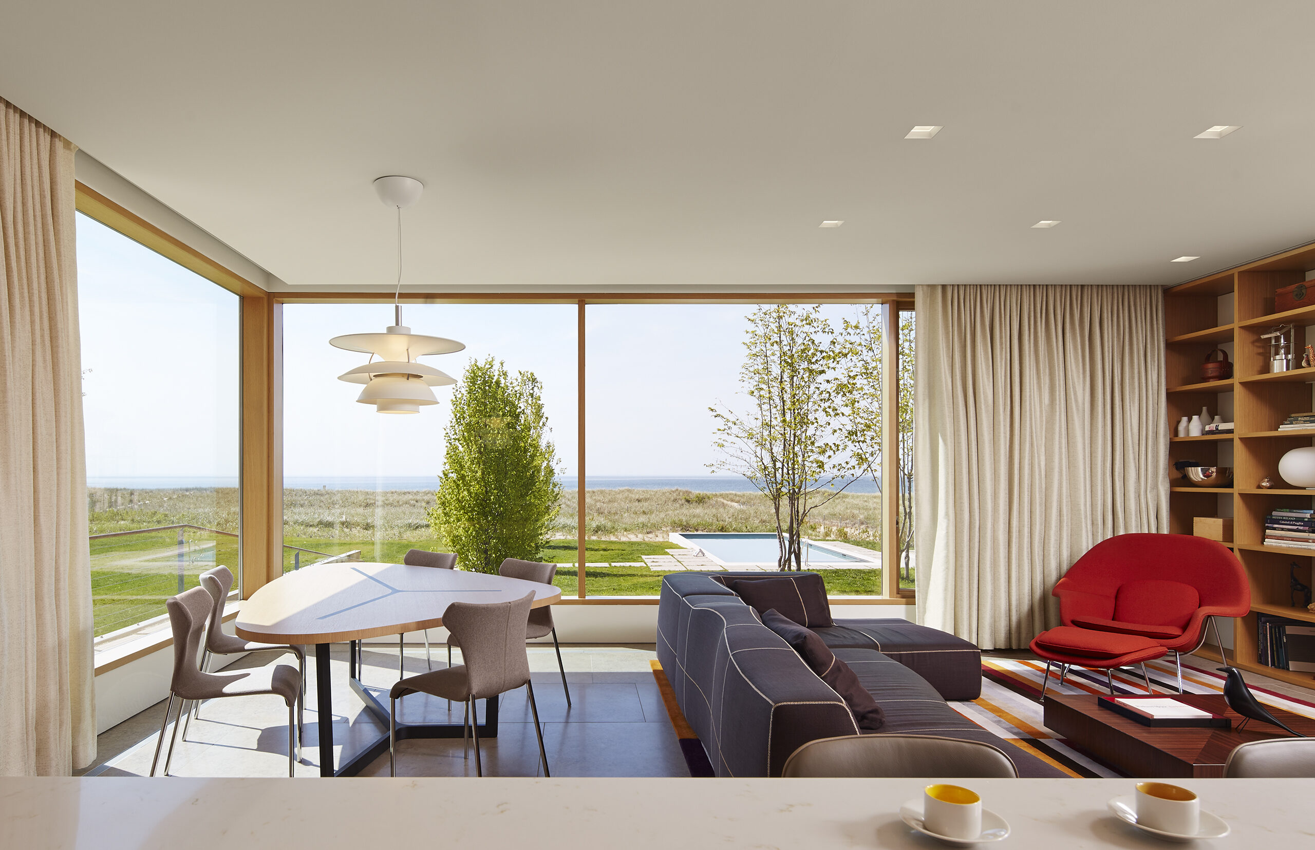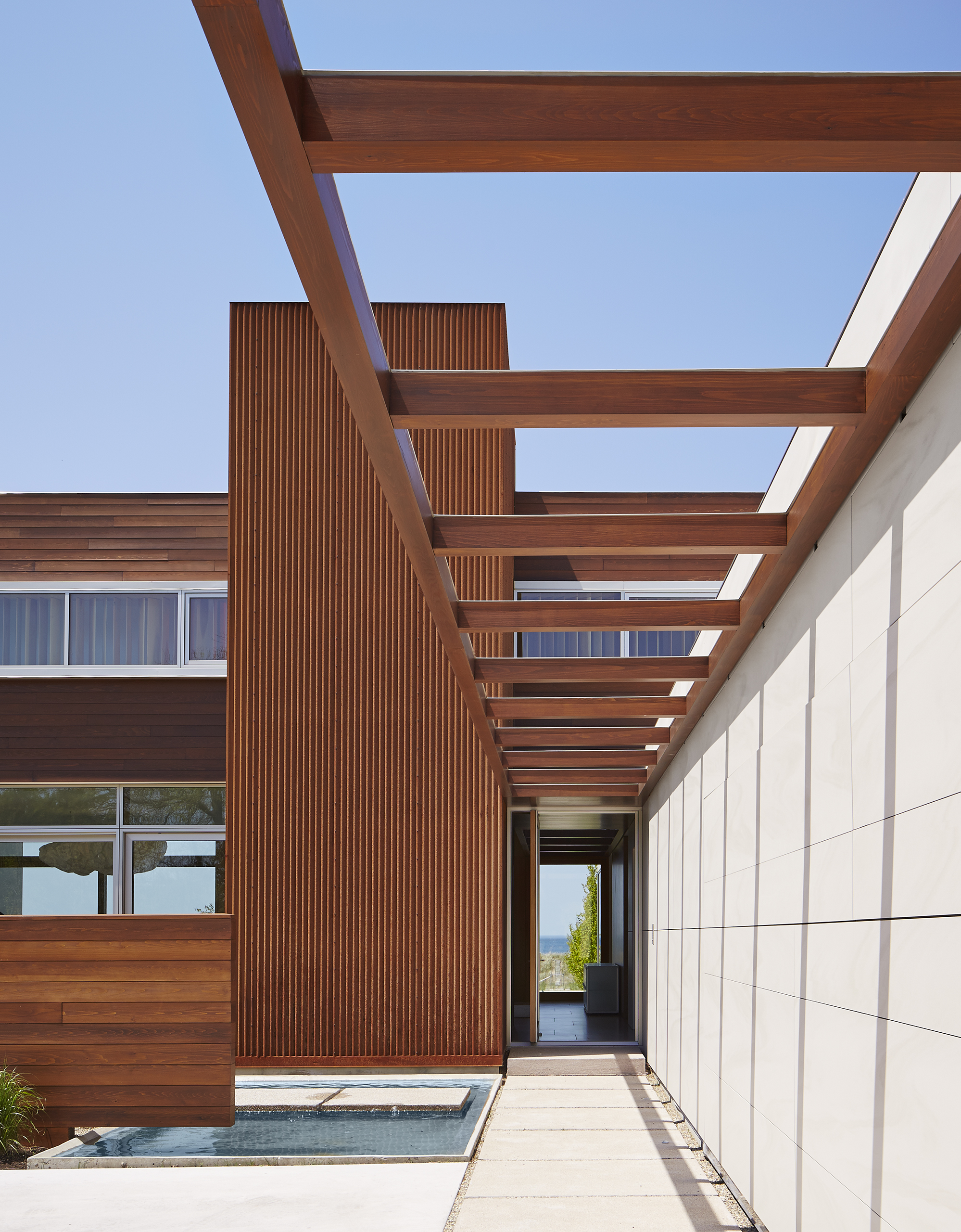 Sited upon a coastal dune landscape, this home seeks proportional balance: balance between elemental exposure and domestic intimacy of prospect and refuge; balance between the natural and the manmade (in landscape, form, material, to color, texture, furnishings.)