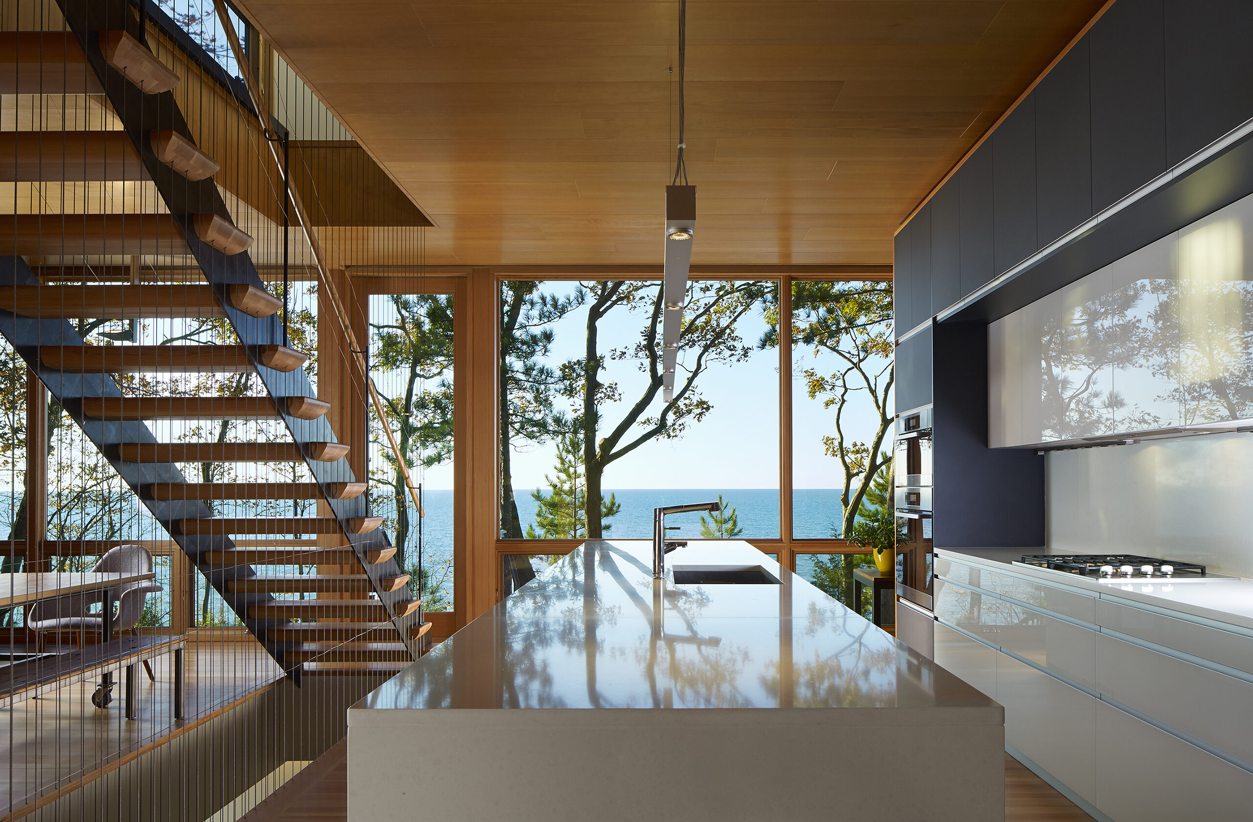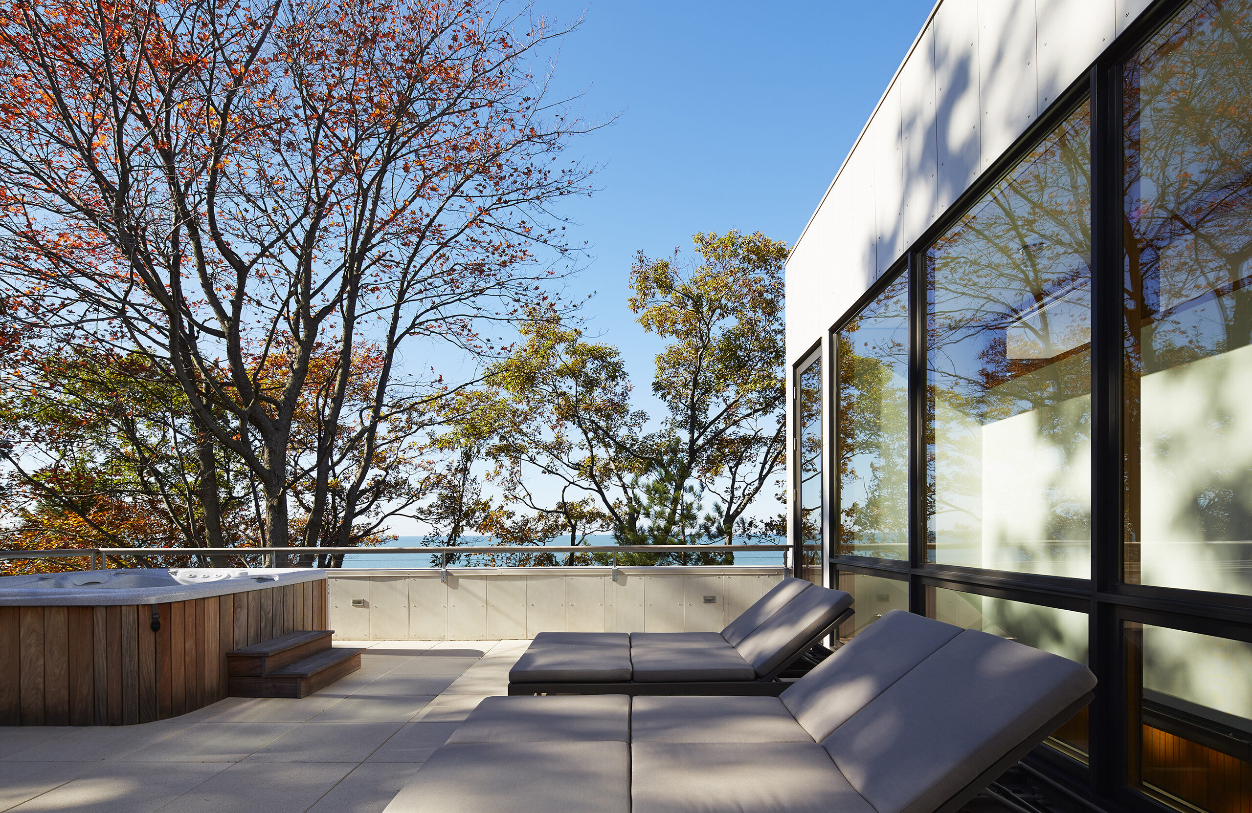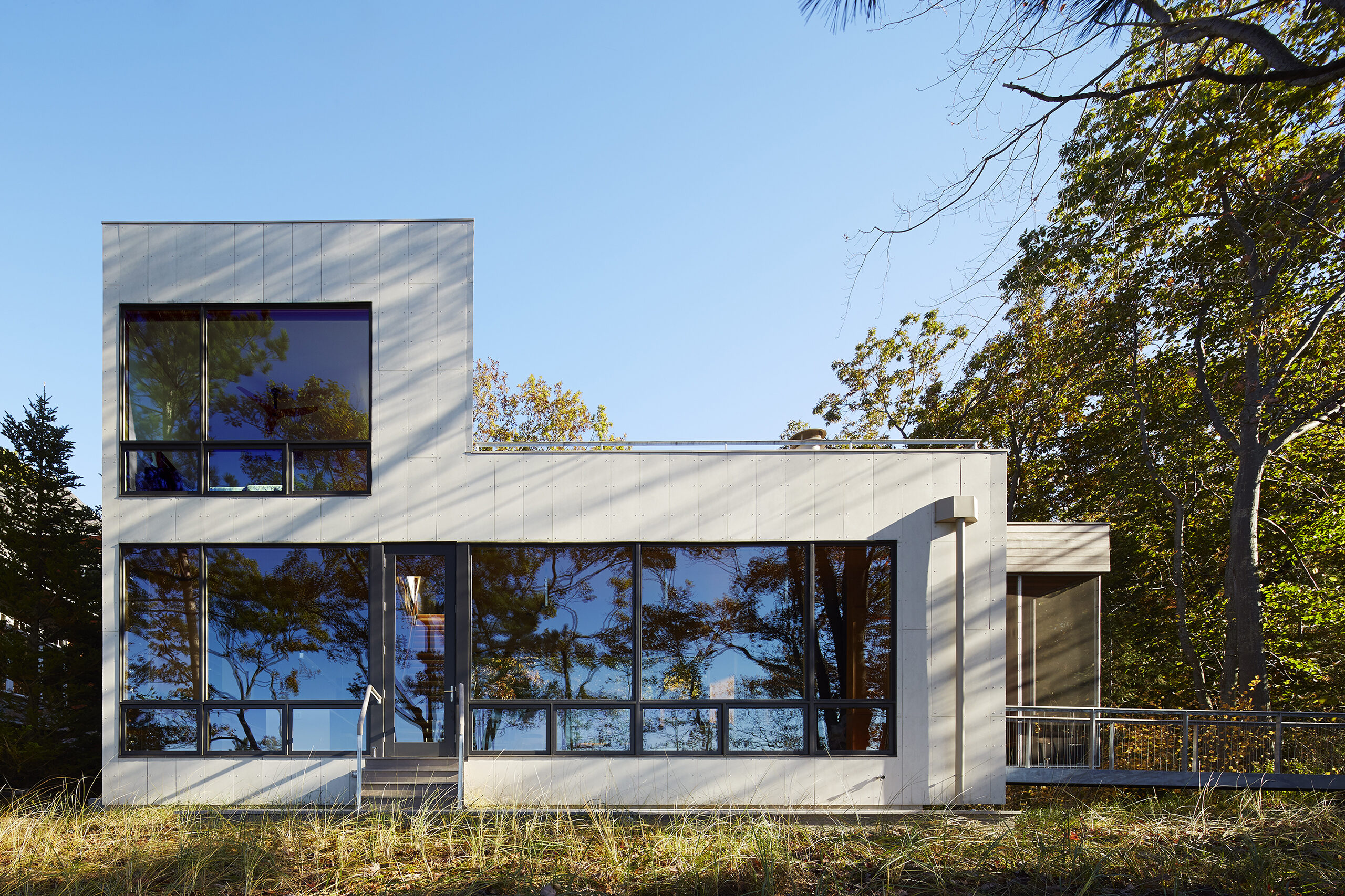 Overlooking Lake Michigan, the home is designed for a family seeking respite from city living and immersion along the quiet beach. The aesthetic of the project grew out of the client’s desire for a year-round, minimal, low maintenance, and intimate retreat.