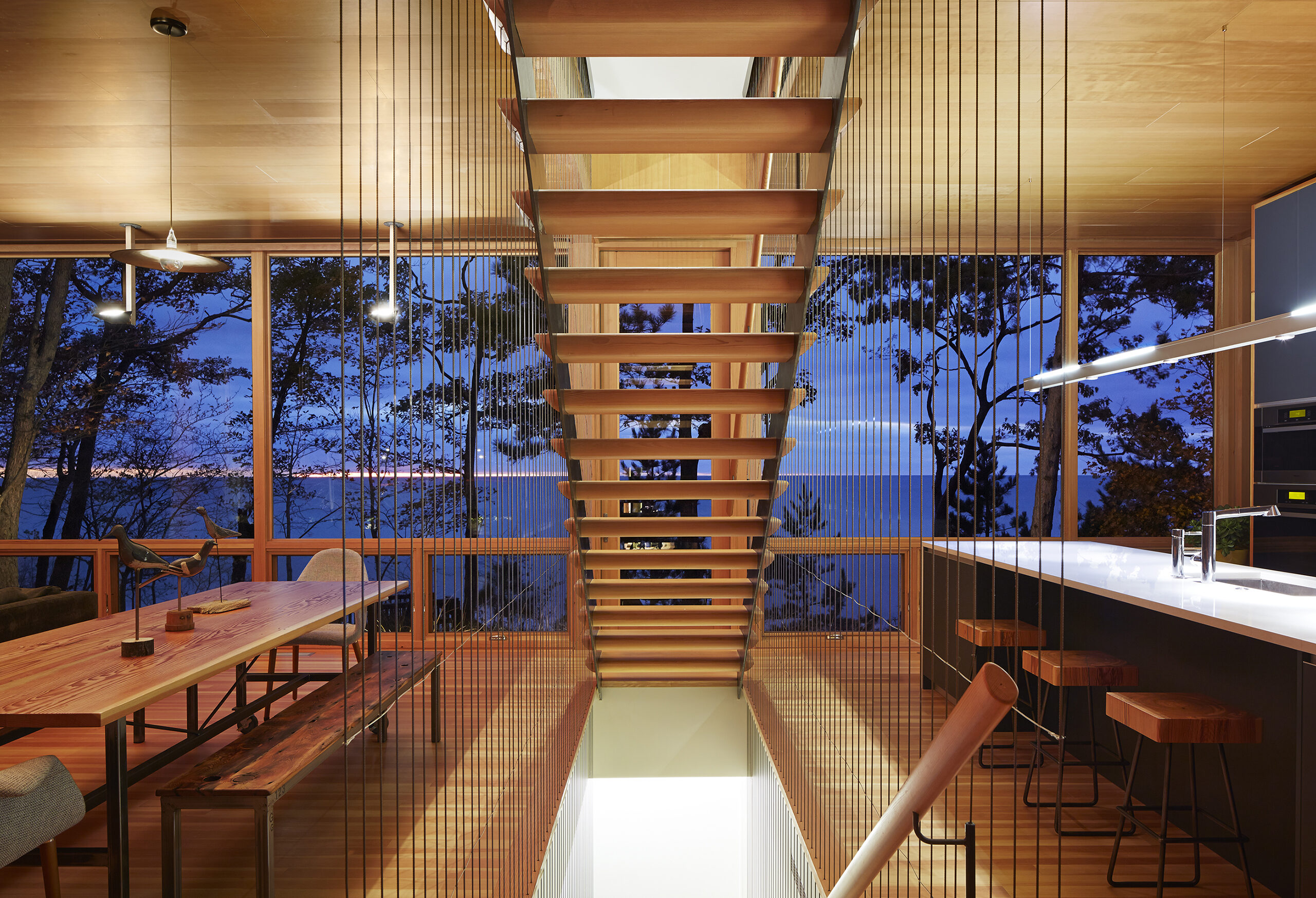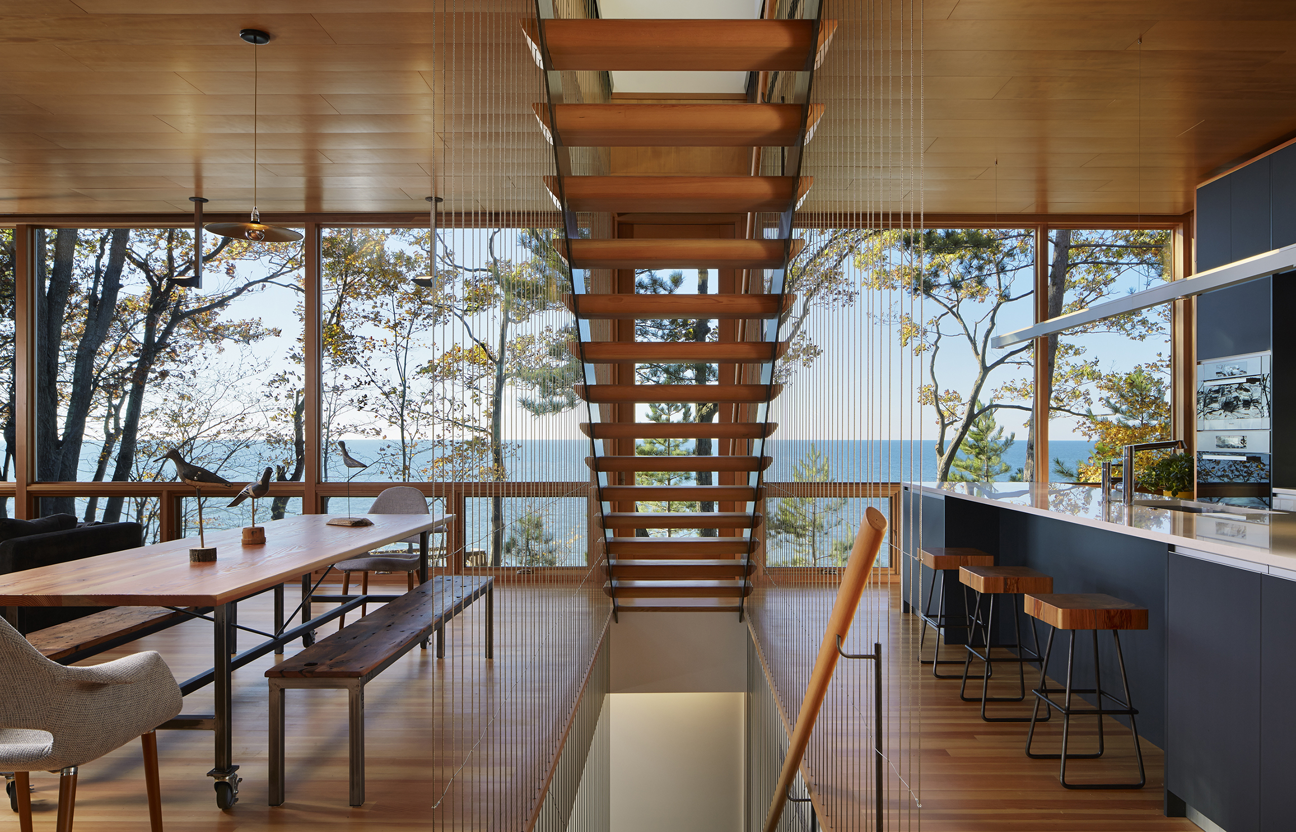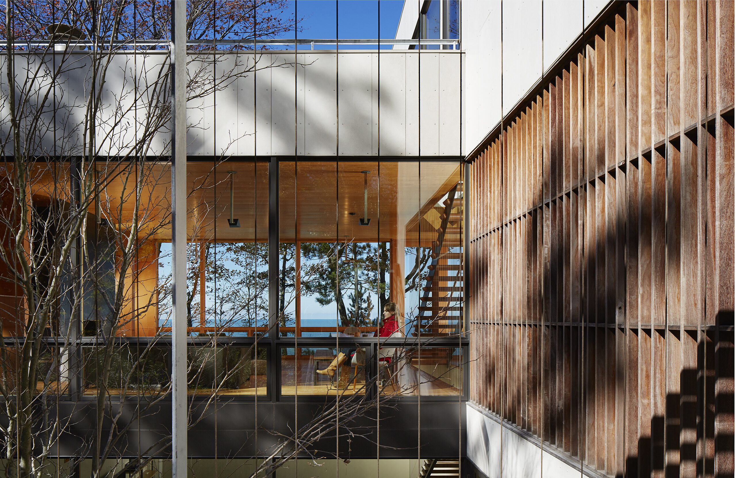 Overlooking Lake Michigan, the home is designed for a family seeking respite from city living and immersion along the quiet beach. The aesthetic of the project grew out of the client’s desire for a year-round, minimal, low maintenance, and intimate retreat.