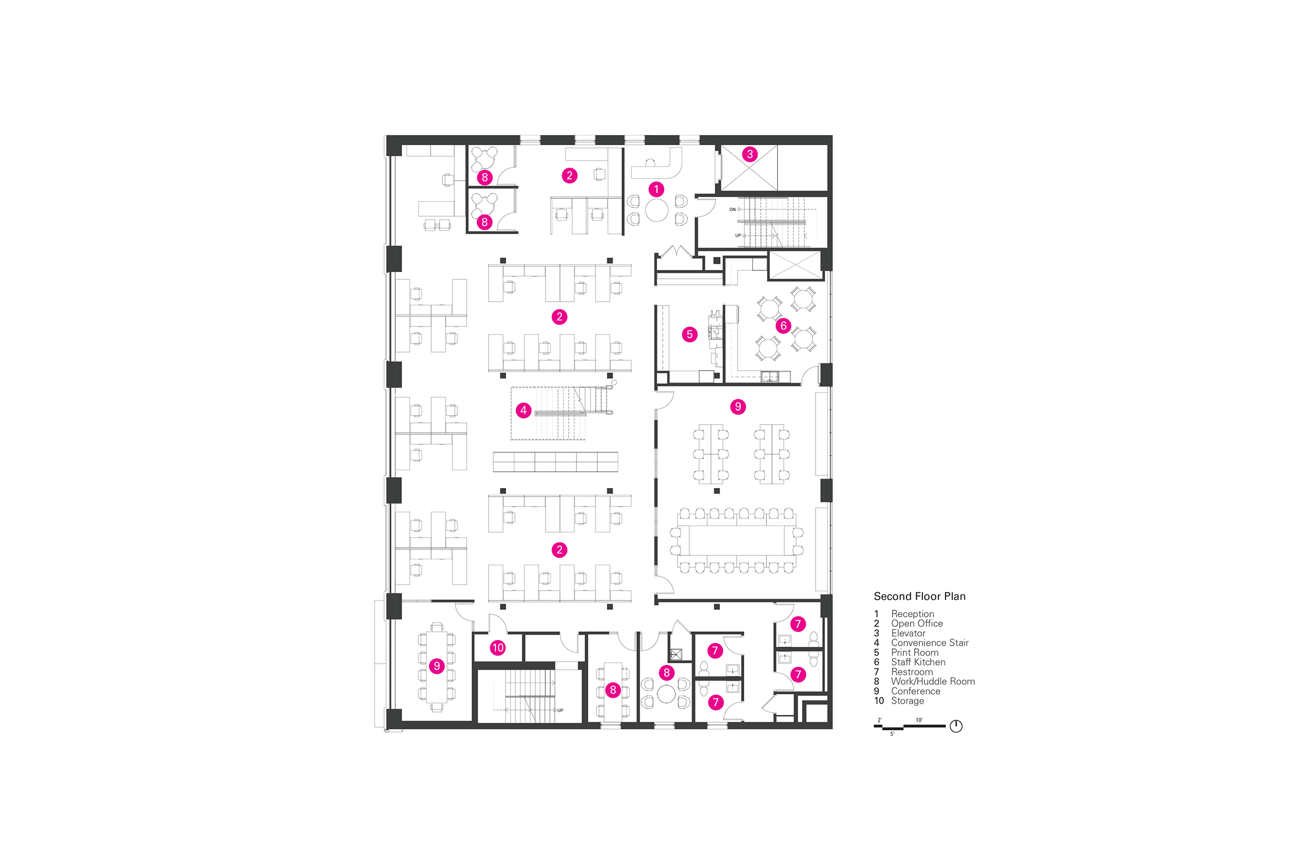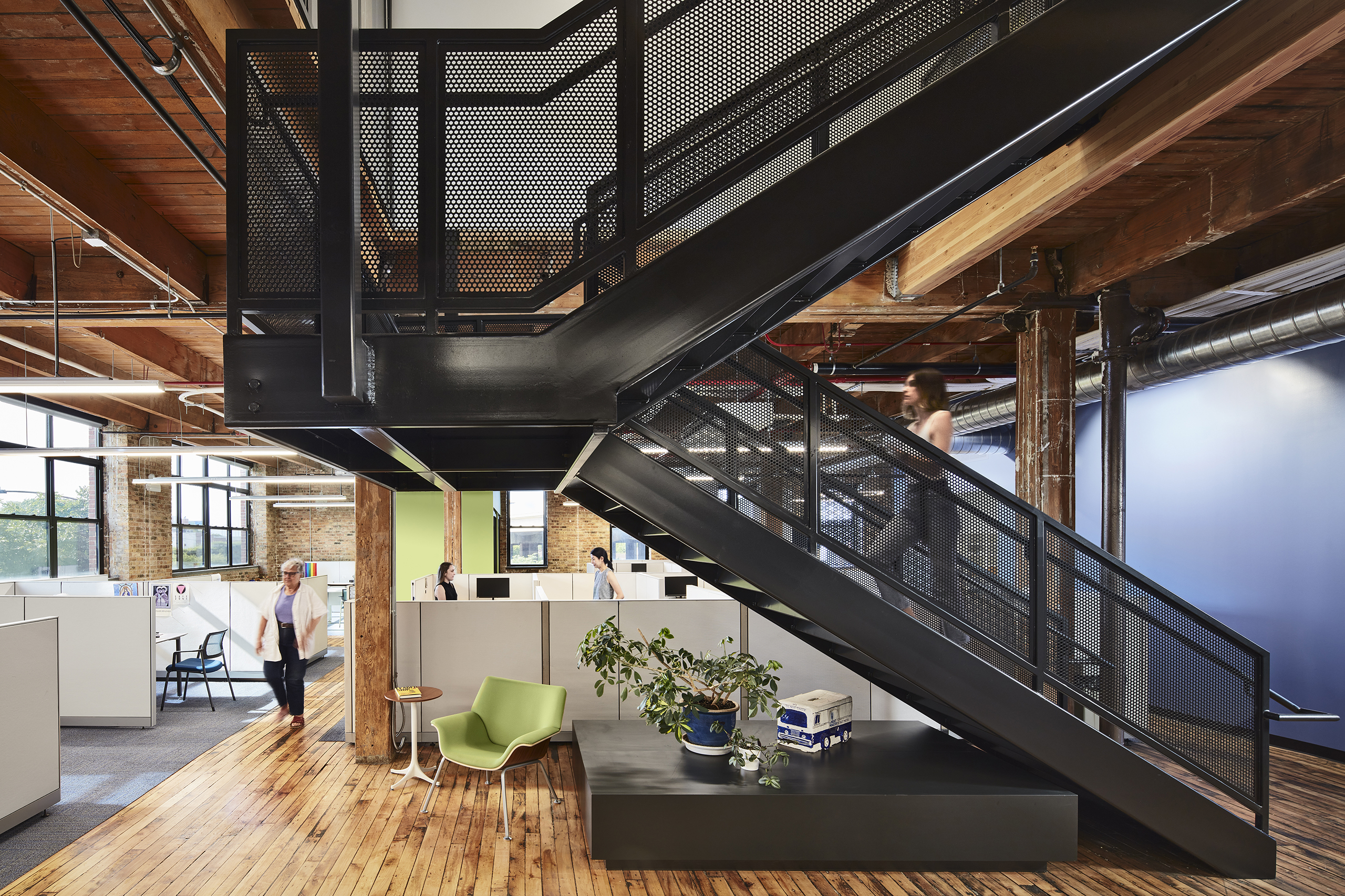 The second and third floors are home to the administrative offices, where employees and volunteers can now comfortably meet under one roof. Here, a new suspended metal stair serves as the primary architectural element, connecting the floors visually and physically, further promoting the organization’s core values of openness, collaboration and human connection.