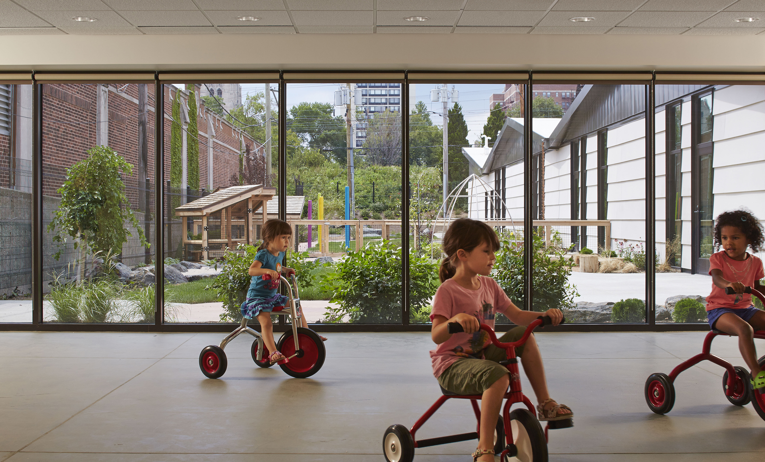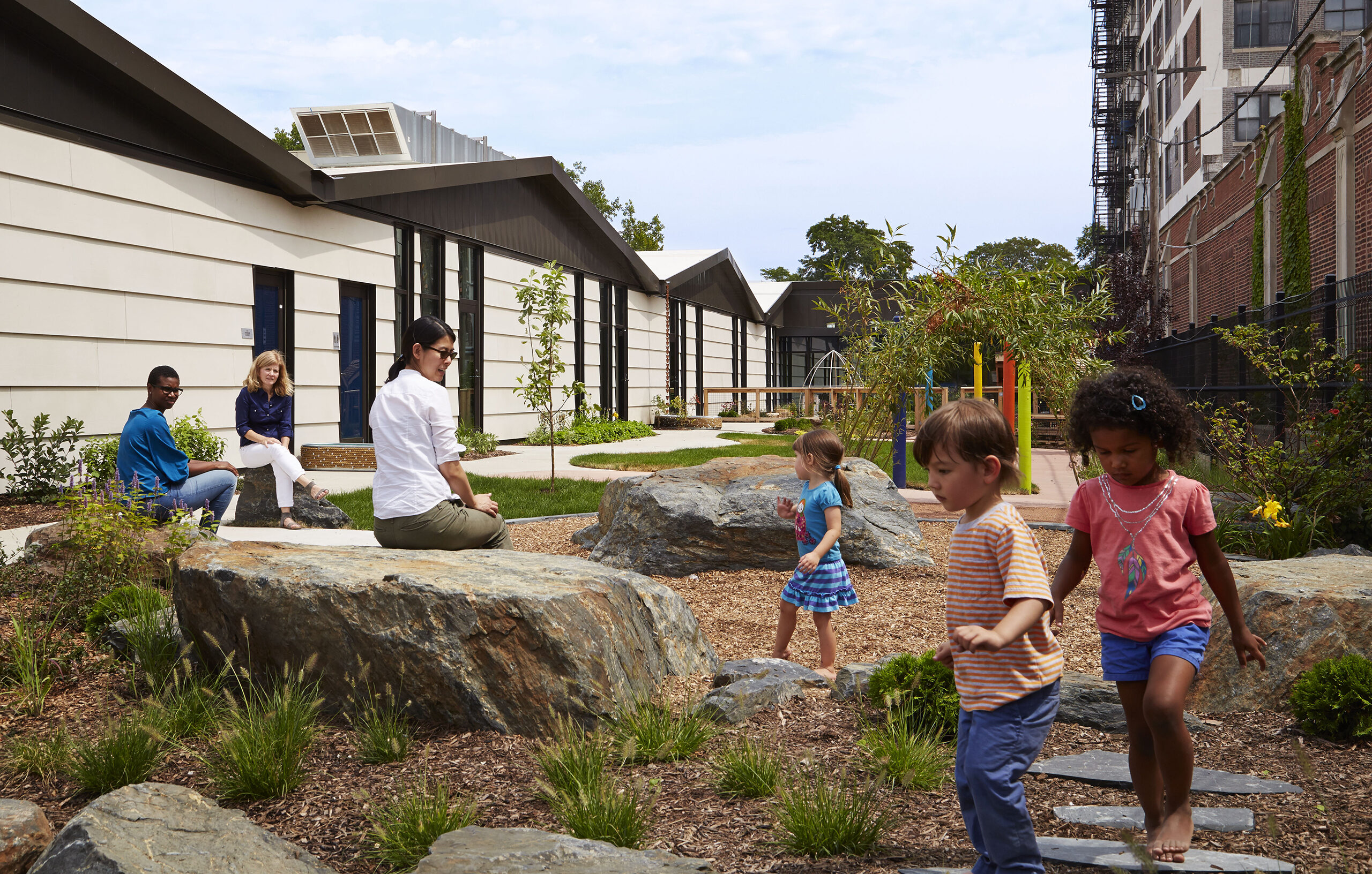 Inspired by an adjacent historic landscape, the University of Chicago Childcare Development Center – Stony Island integrates the natural environment with its architecture and child-centered curriculum.