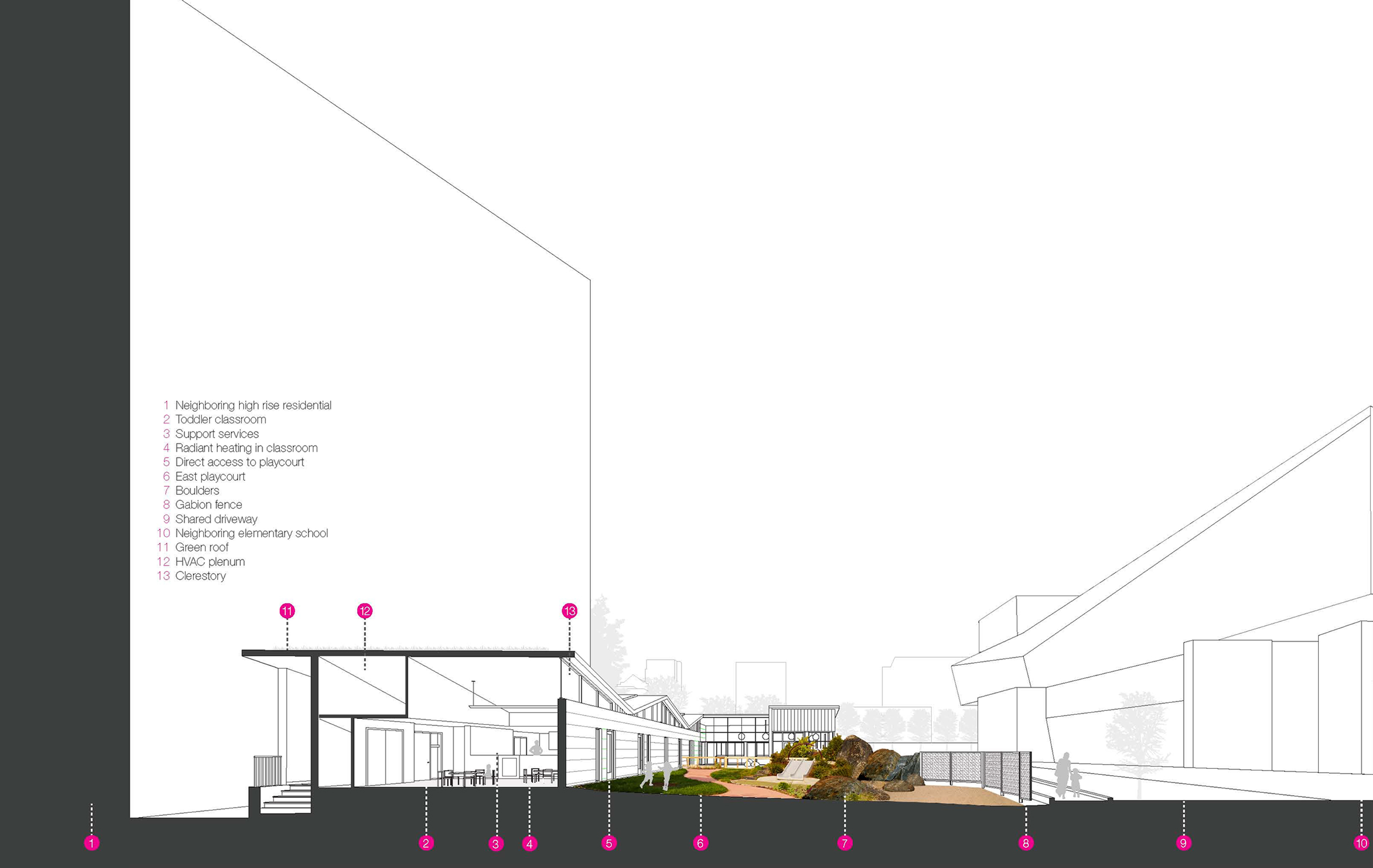 “Well done. Nicely scaled and sensitively detailed. I want my granddaughter to play here. The opportunities for exploration are fantastic. The sensitive site placement next to the high rise is brilliant. Very playful solution for a very important building type that is often trivialized.”