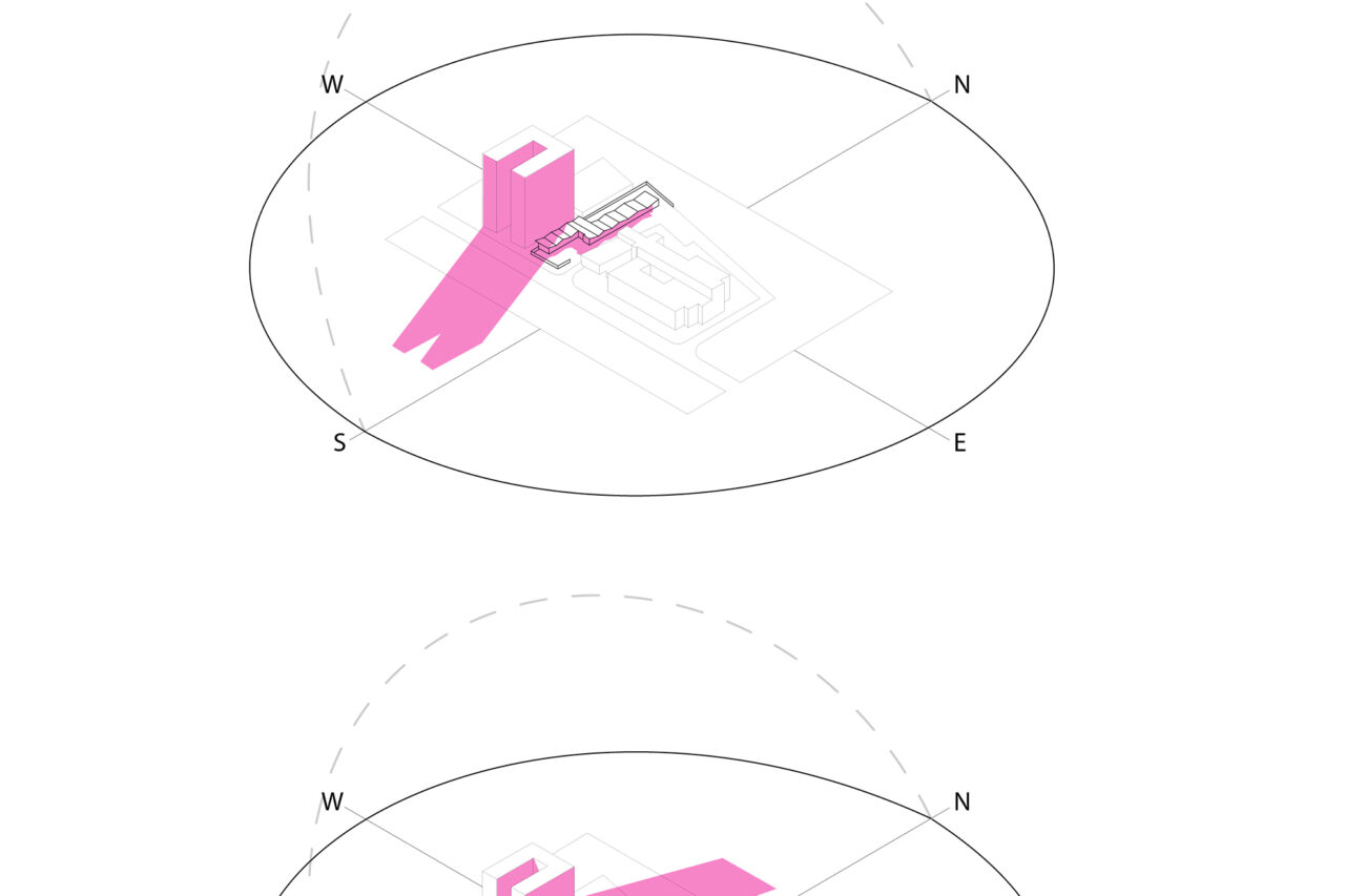 The building, with a z-shaped footprint, responds to the narrow infill site, optimizing limited sun exposure and leveraging visual connections between the interior and exterior.